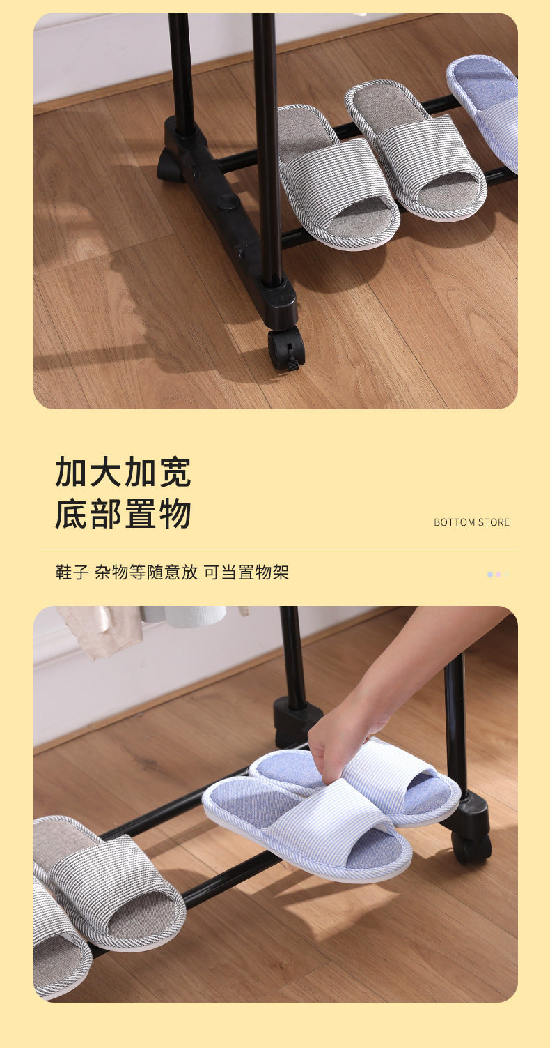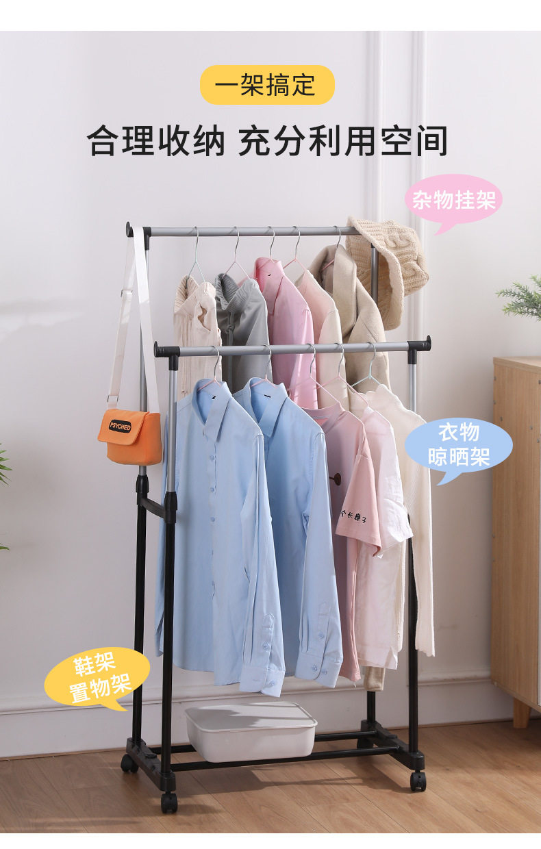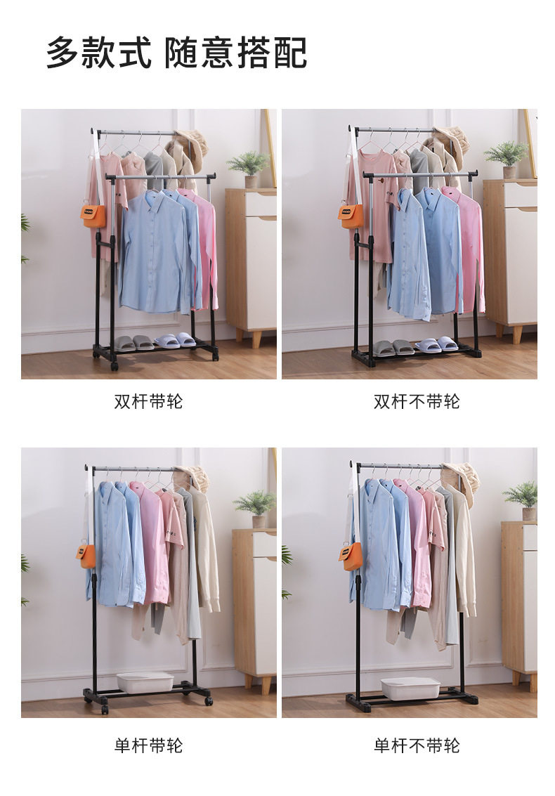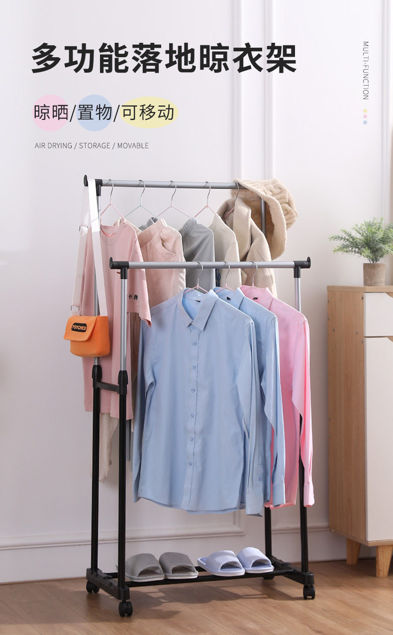Floor drying rack factory direct retractable lifting mobile clothes drying rod reinforced double rod with pulley hanging rack