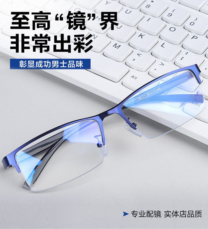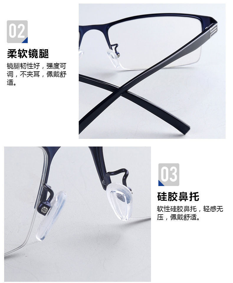 Black Half-Frame Square Metal Large-Frame Glasses Frame Can Be Equipped with Myopia Men's Lightweight Half-Frame Business Glasses