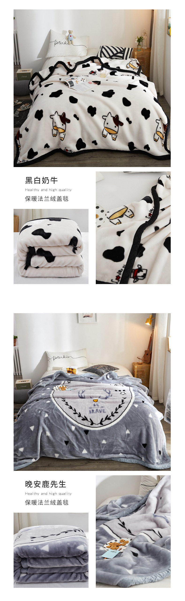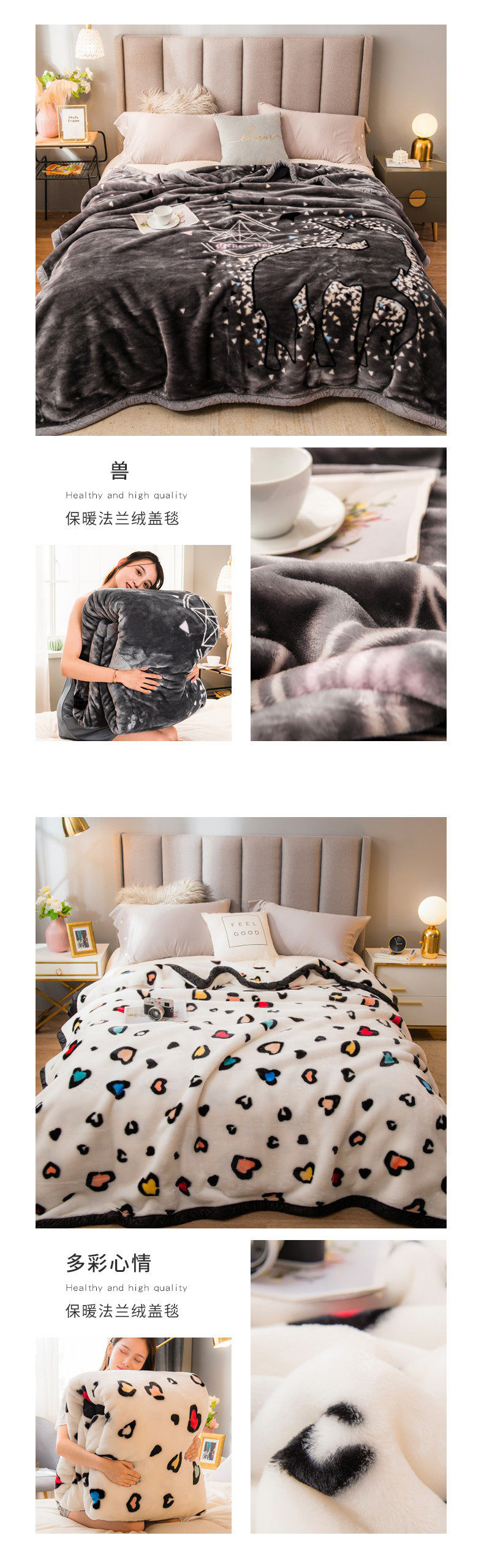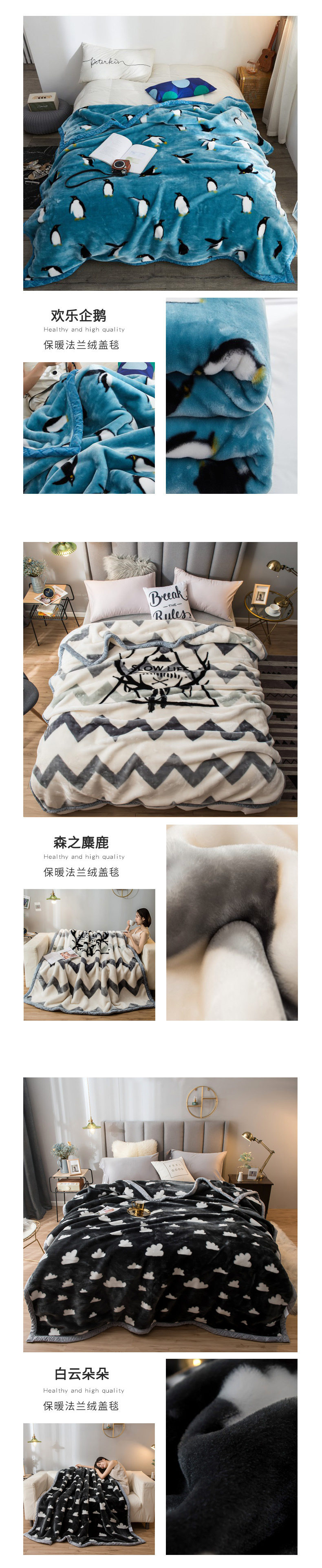 | Size specifications | 150*200cm 2kg (double layer thickened blanket),150*200cm 2.5kg (double layer thickened blanket),180*220cm 3kg (double layer thickened blanket),200*230cm 3.5kg (double-layer thickened blanket),100*120cm random color |