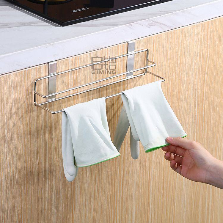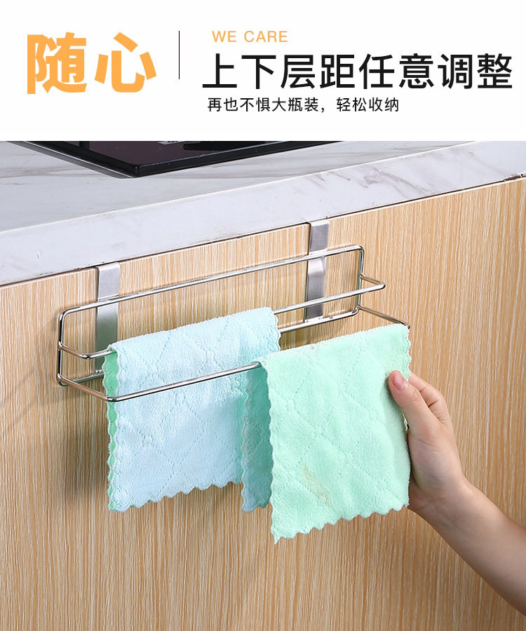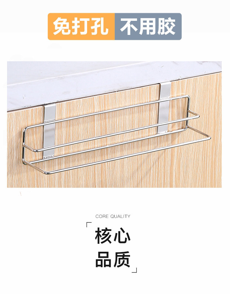 Non-perforated Stainless Steel Kitchen Towel Rack Wall-mounted Cabinet Door Storage Rack Bathroom Multifunctional Finishing Rack