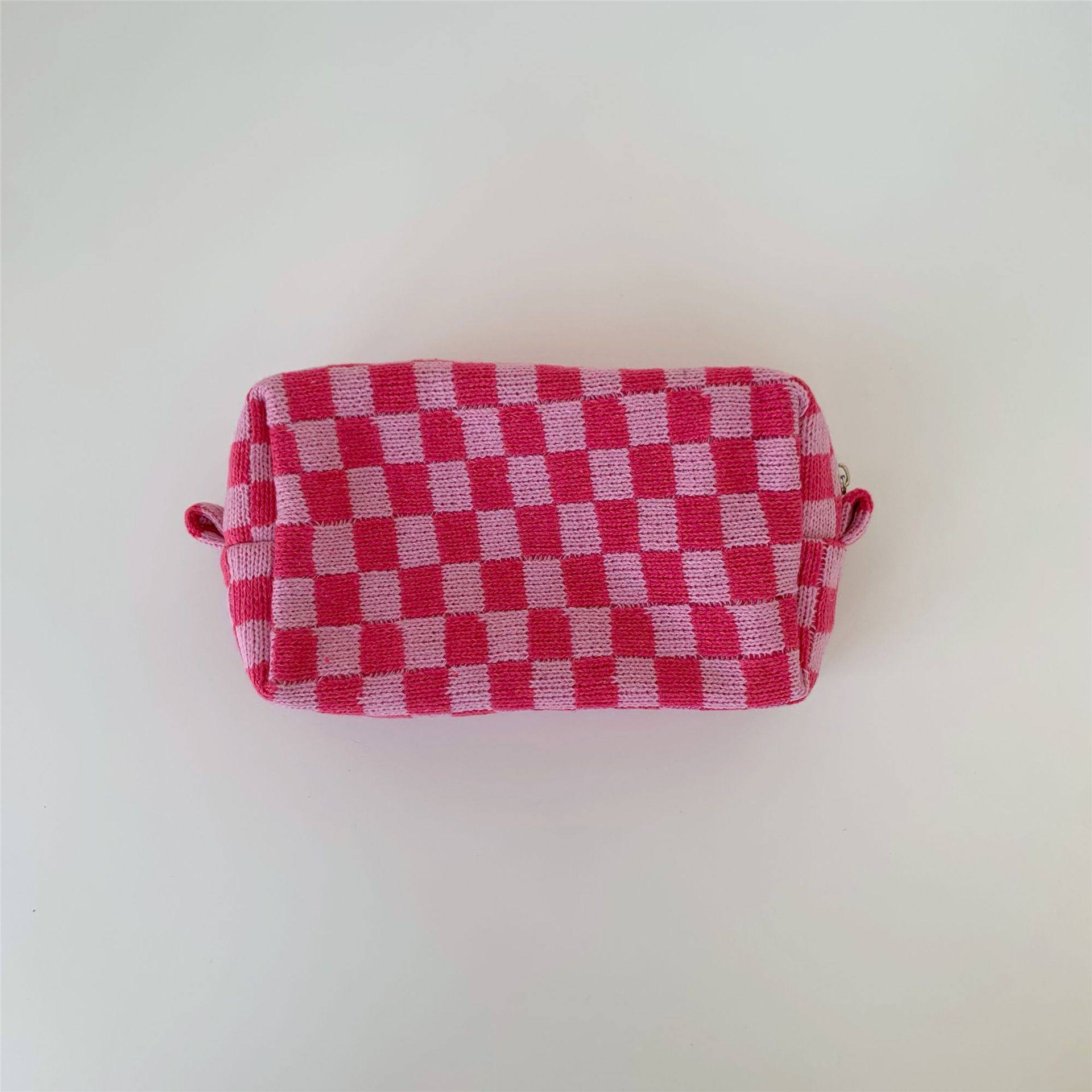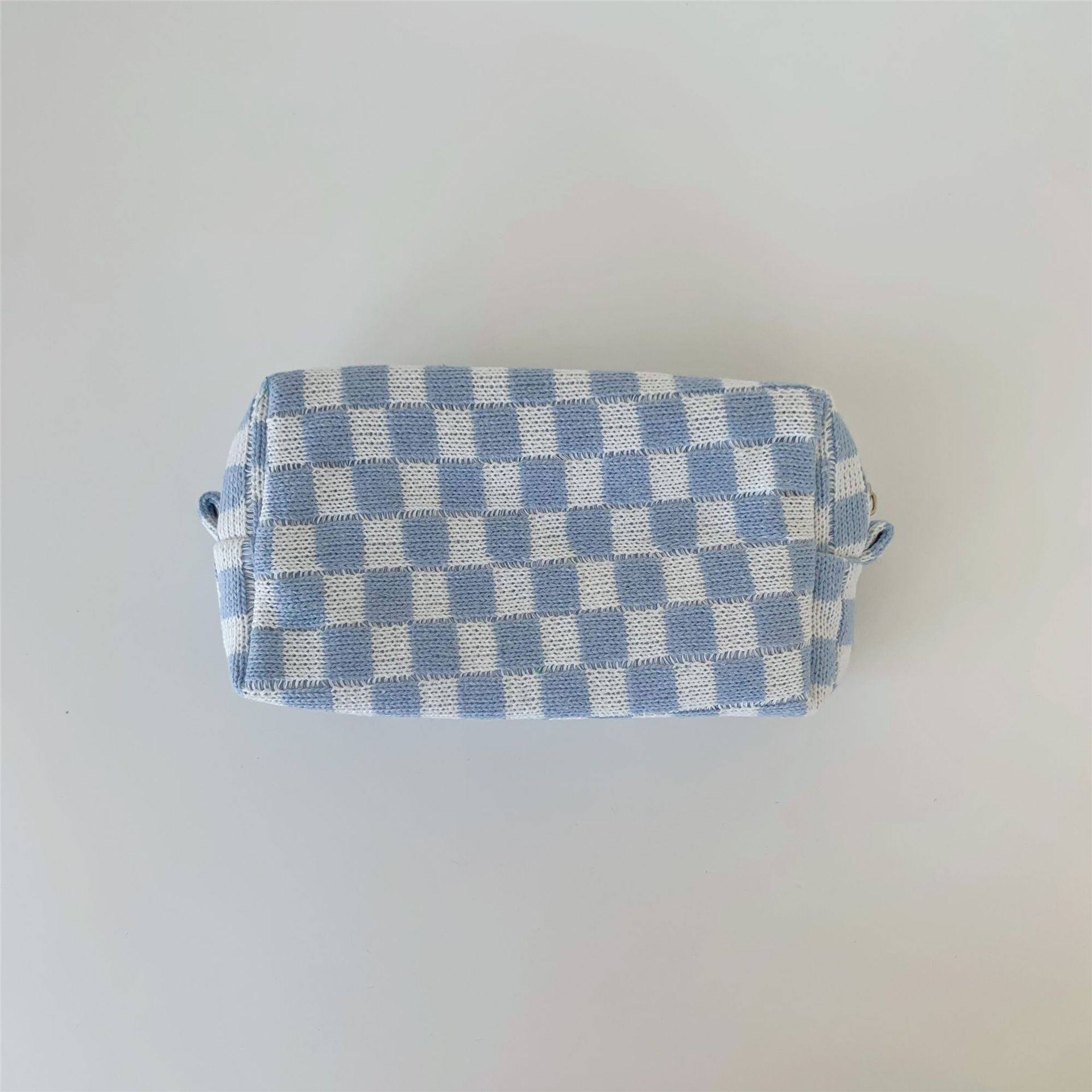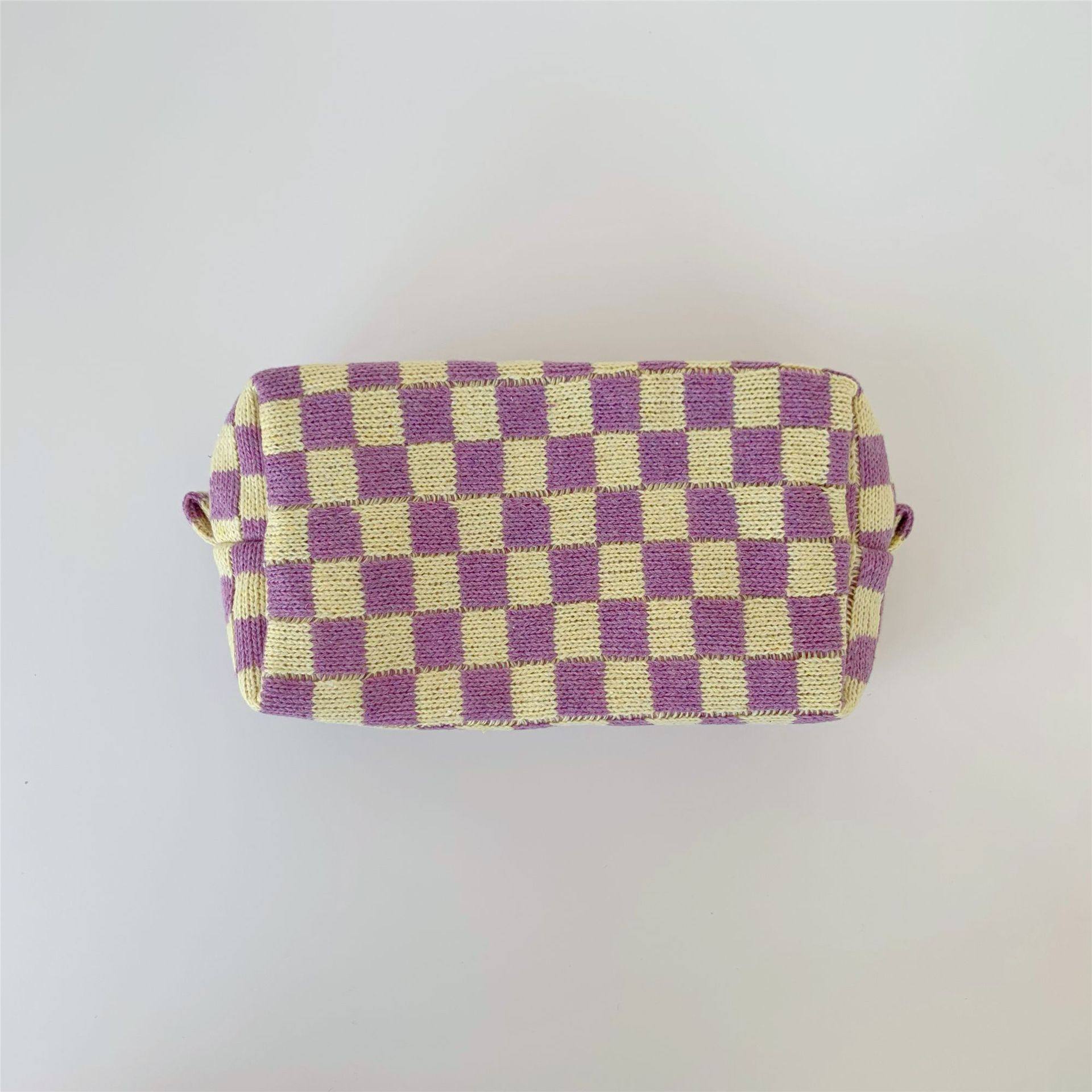 Wool Checkerboard Cosmetic Bag Large Capacity Knitted Storage Bag Autumn and Winter Plaid Knitted Storage Washbag Portable