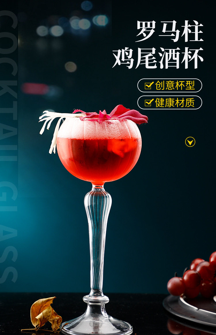 Creative cocktail glass European-style goblet pattern cocktail glass Roman column cocktail creative wine glass champagne glass