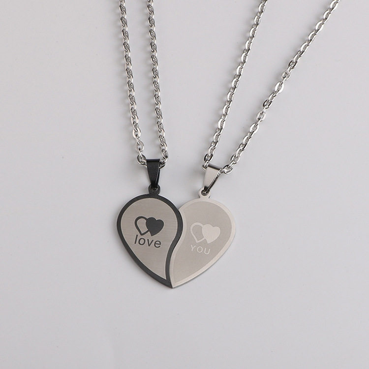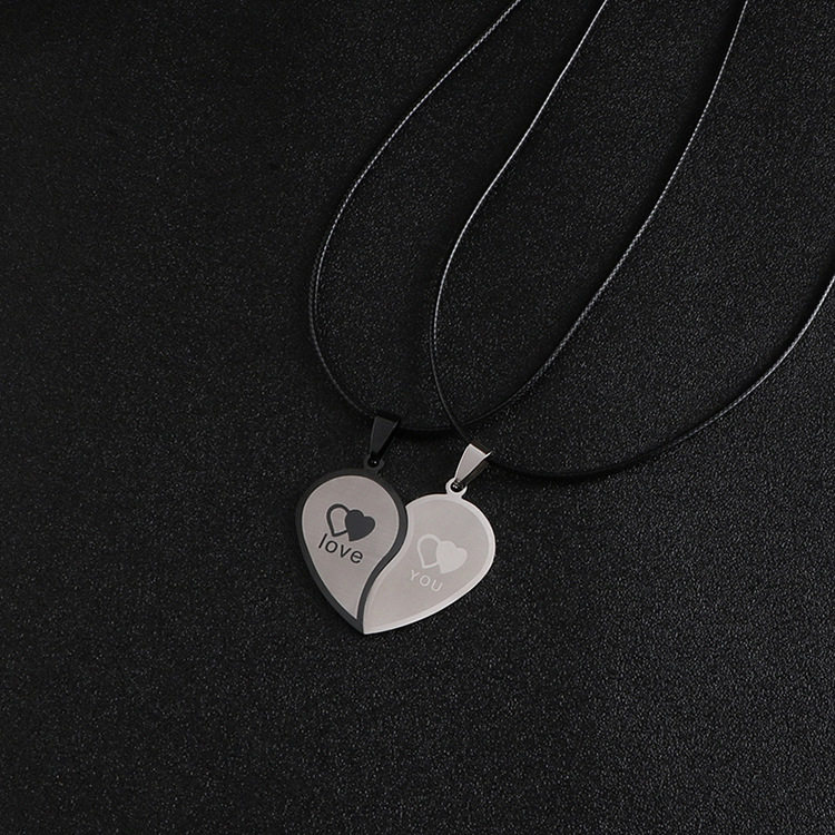 Peach heart love couple stitching necklace a pair of stainless steel pendant Korean style men's student pendant clavicle chain accessories