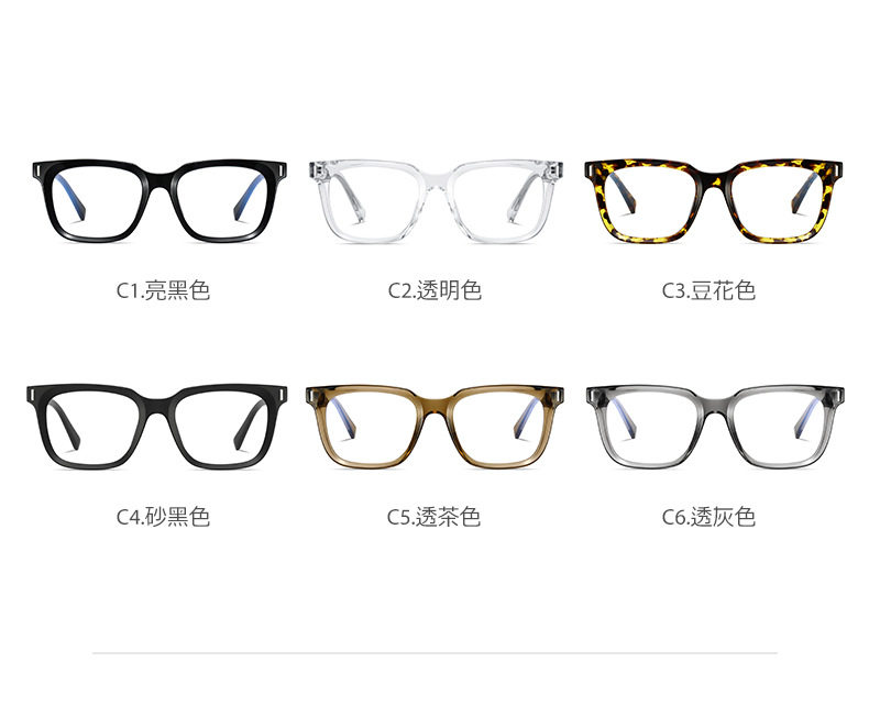 | Frame Color | C1 bright black frame,C2 transparent frame,C3 bean flower box,C4 sand black frame,C5 through tea frame,C6 transparent gray frame |