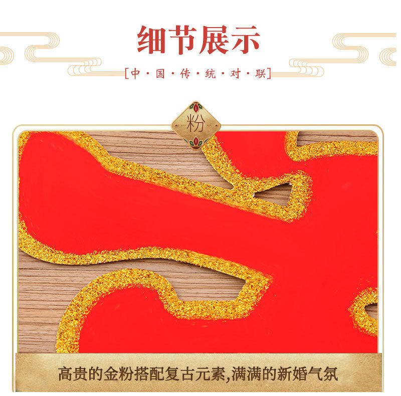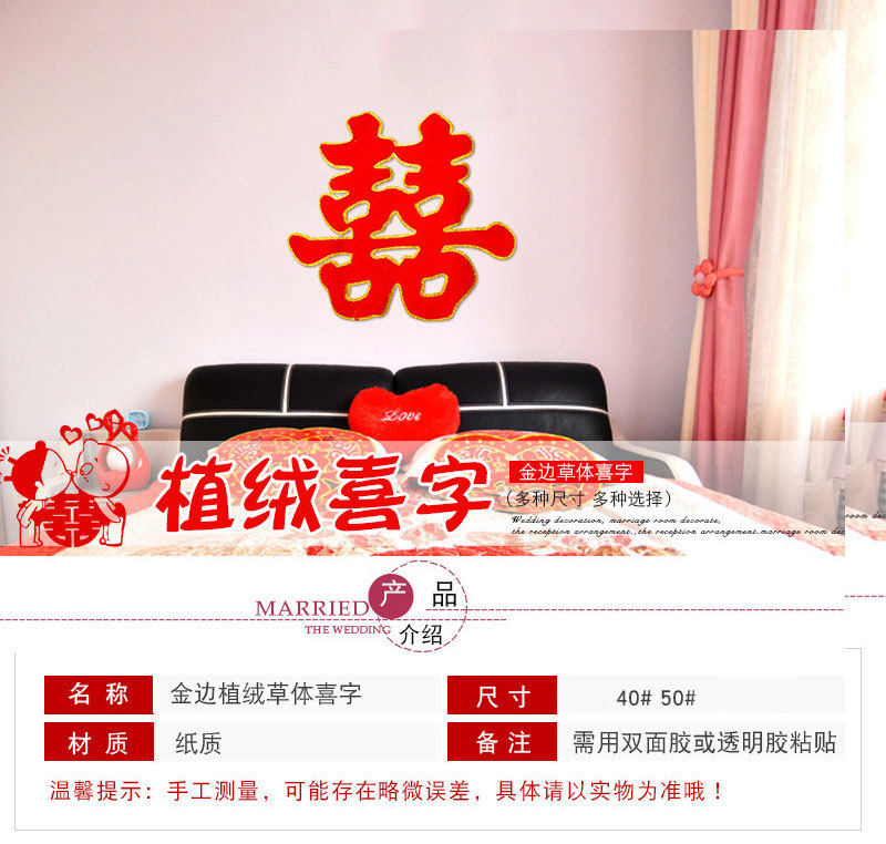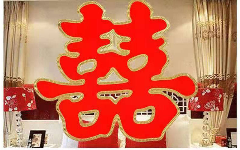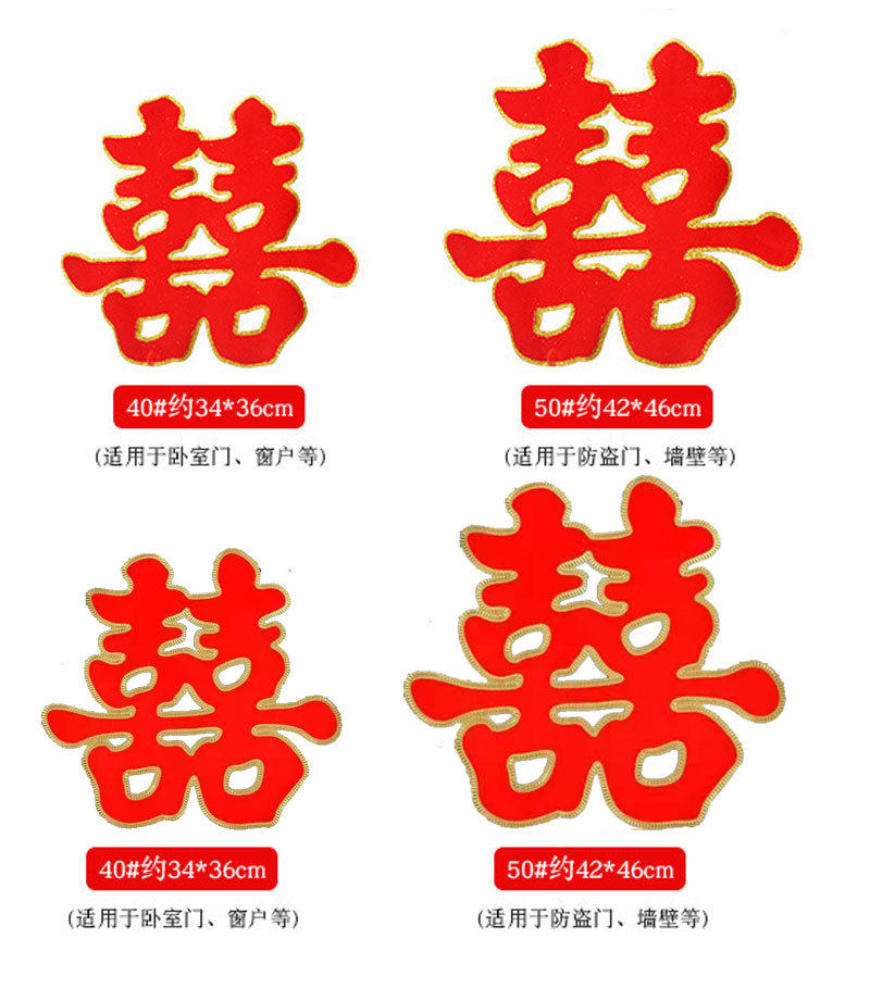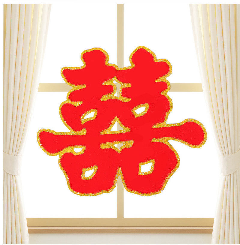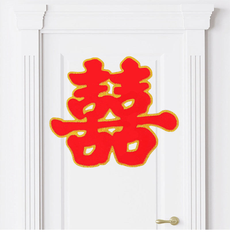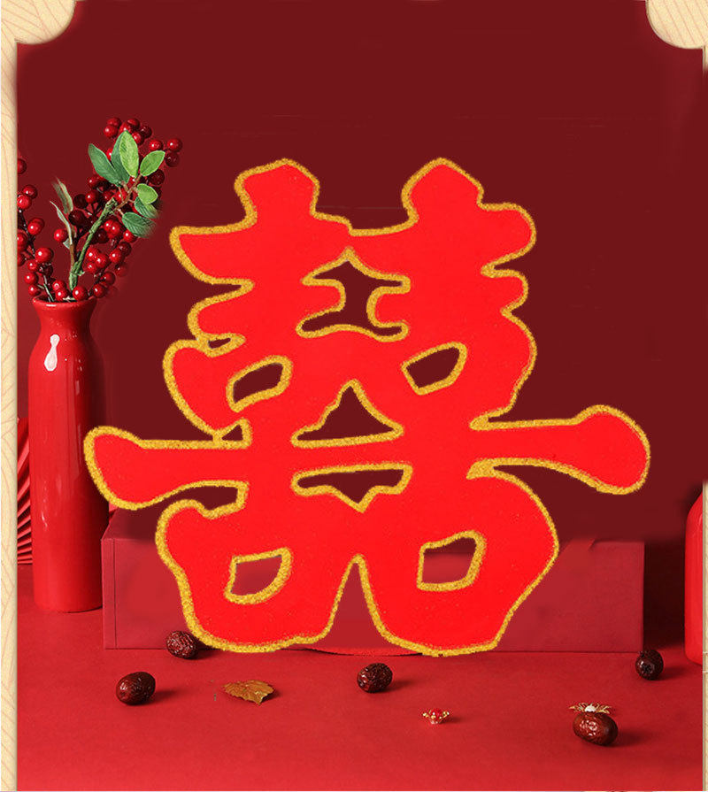 Wedding Supplies Happy Word Wedding Large Flocking Gold Powder Double Happiness Wedding Room Hard Paper Grass Happy Son Sticker Room Door Creative Happy Word