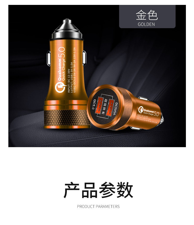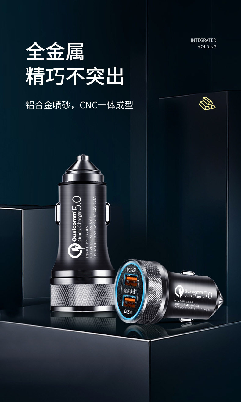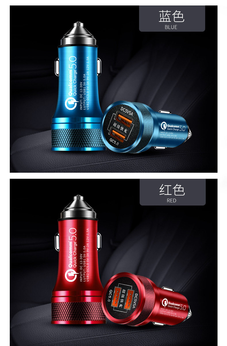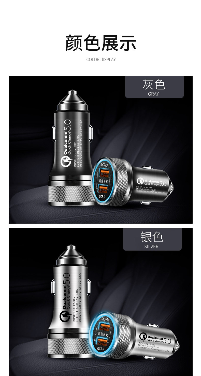New Fast-Charging Car Mobile Phone Charger 9V-2A Dual-Port USB Aluminum Alloy Smart Qc Car Charger Head Can Be Customized