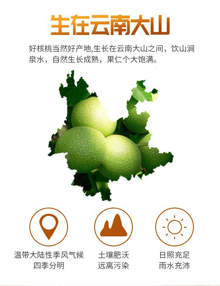 | Packaging specifications | Yunnan thin-skinned walnut scattered weighing one Jin |