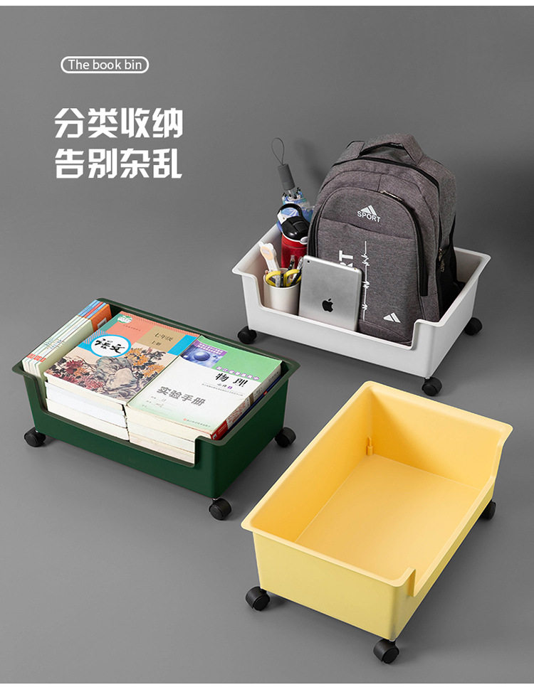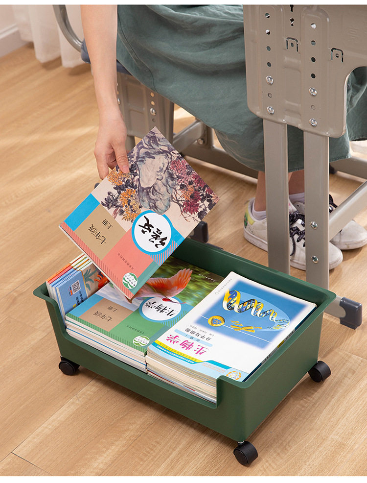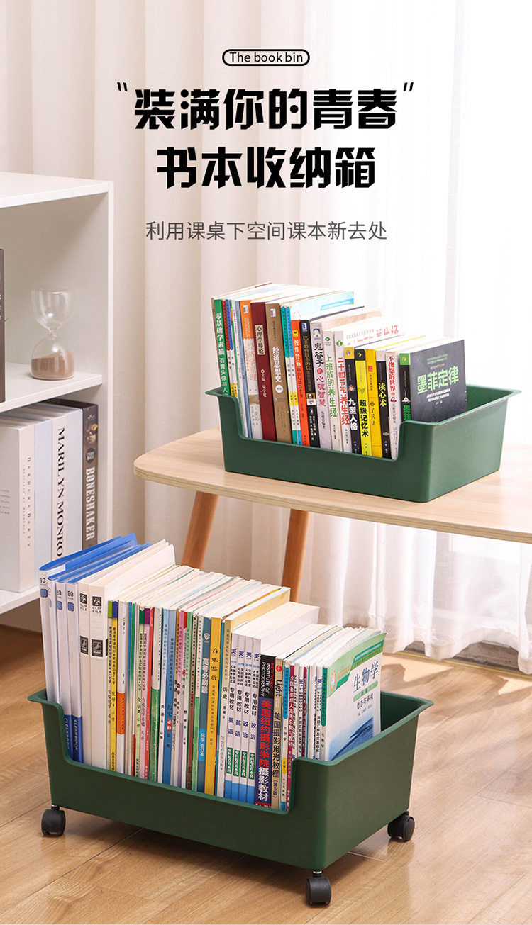 Student Classroom Book Box with Pulley Movable Book Storage Box High School Book Arrangement Dormitory Artifact with Wheels
