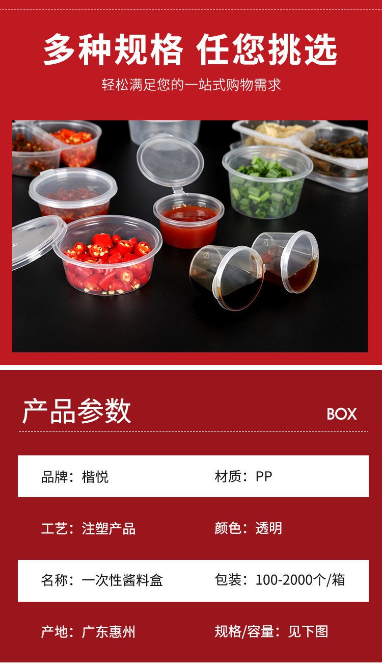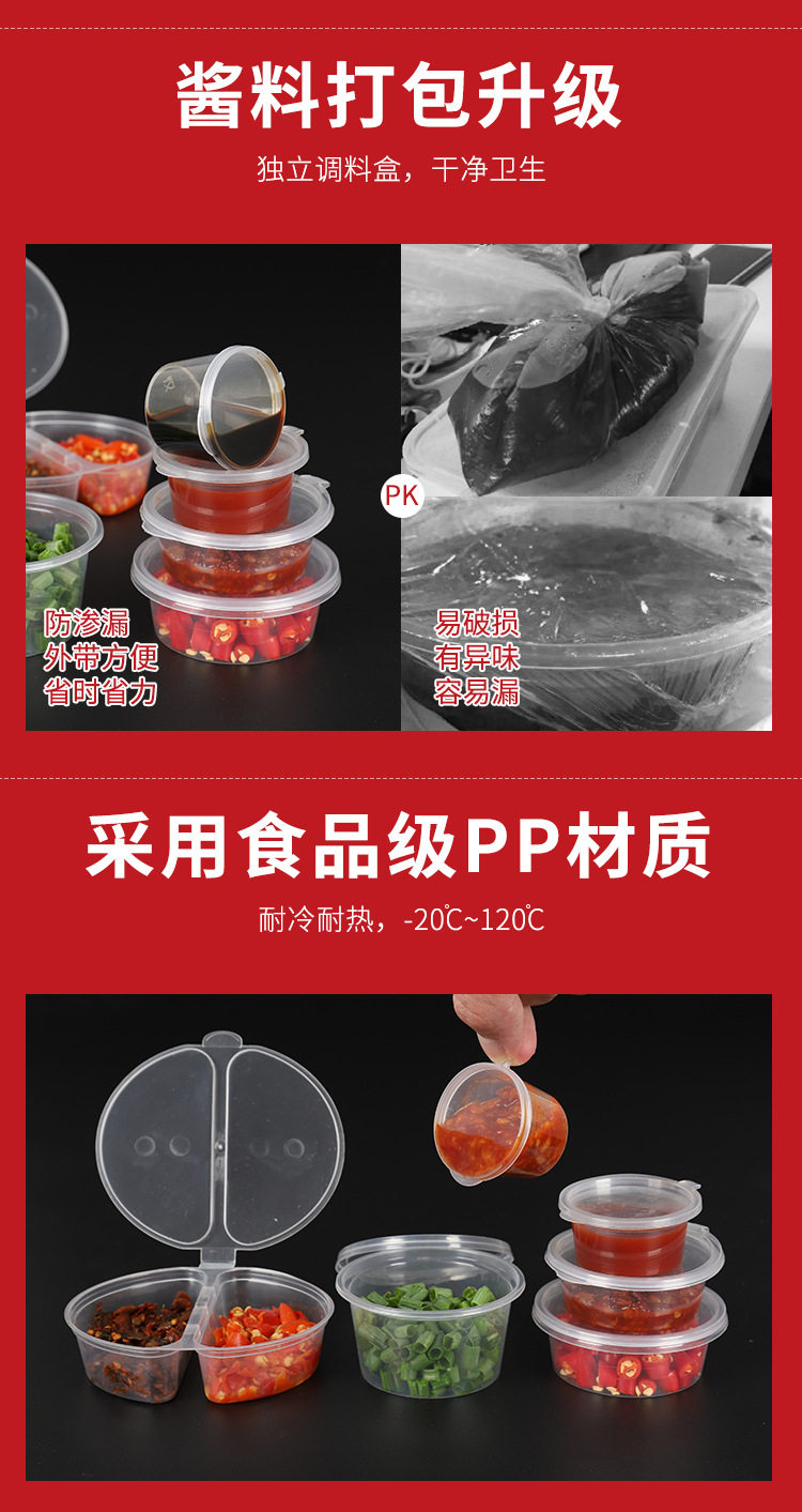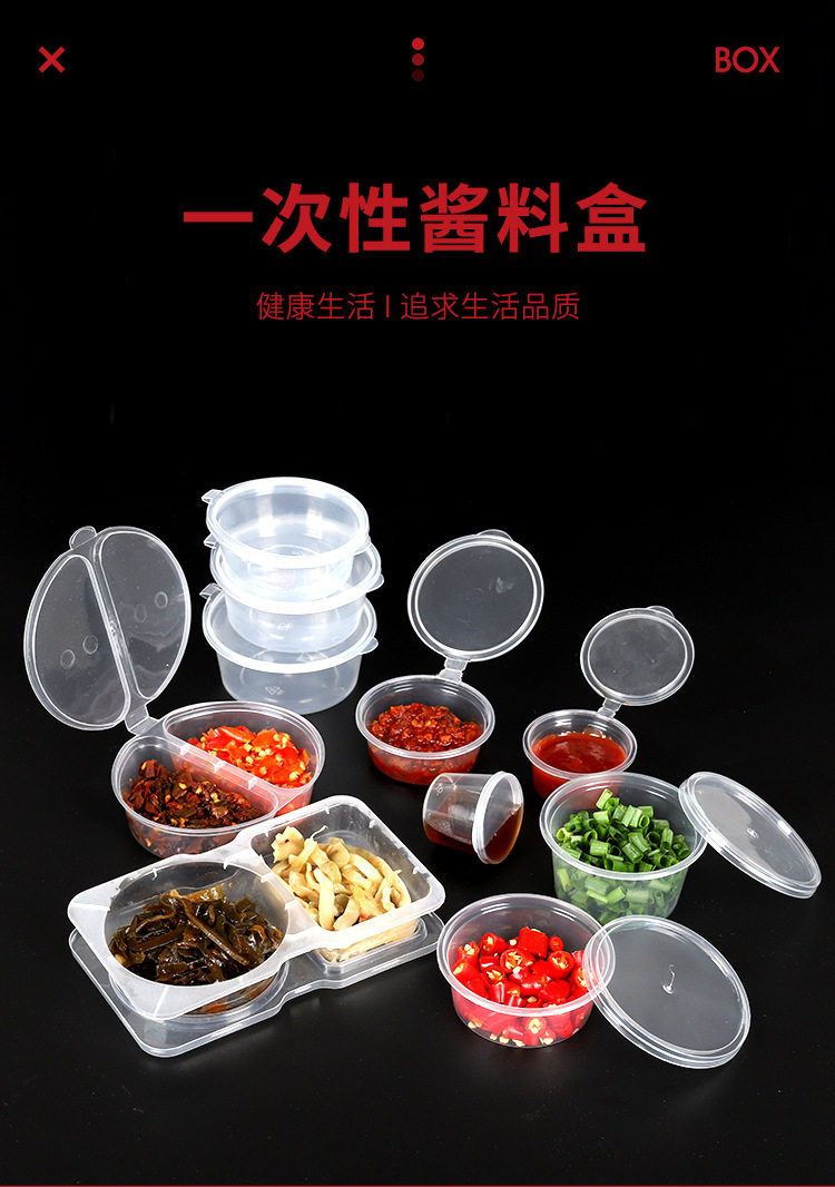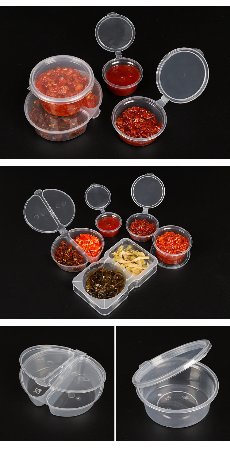 Disposable Lunch Box, Sauce Cup, Double-Compartment Sauce Box, Seasoning Box, Take-Out Box, Integrated with Lid, Food Grade