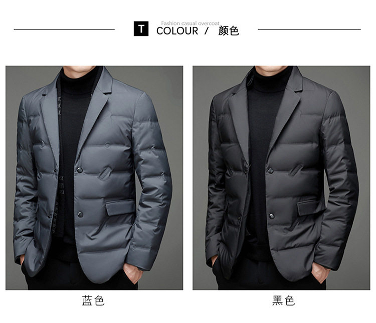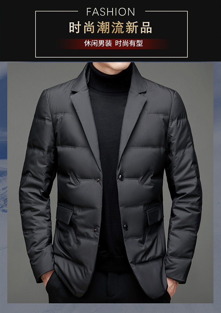 Take-off Scarf Collar Suit Collar Down Jacket Men's Warm Winter Slim-fit Casual Simple Solid Color Middle-aged and Young Korean Style