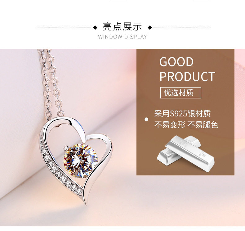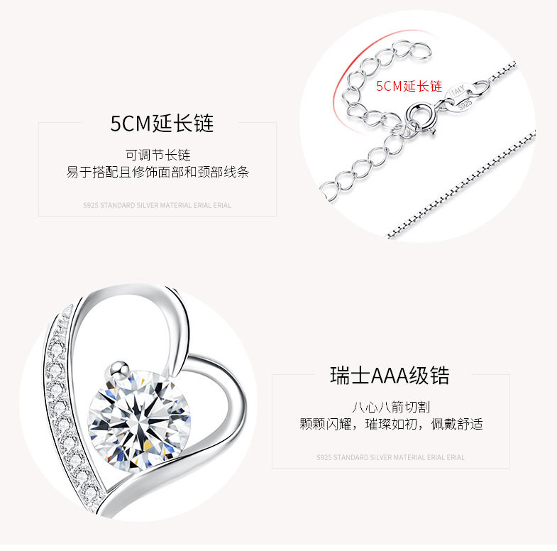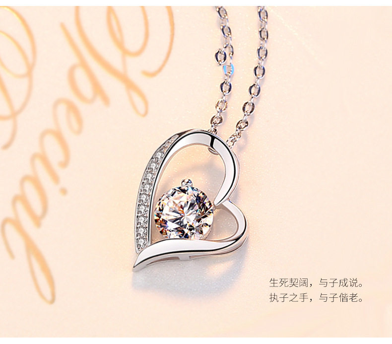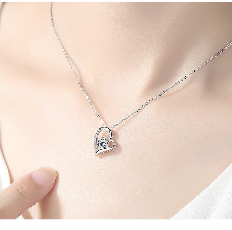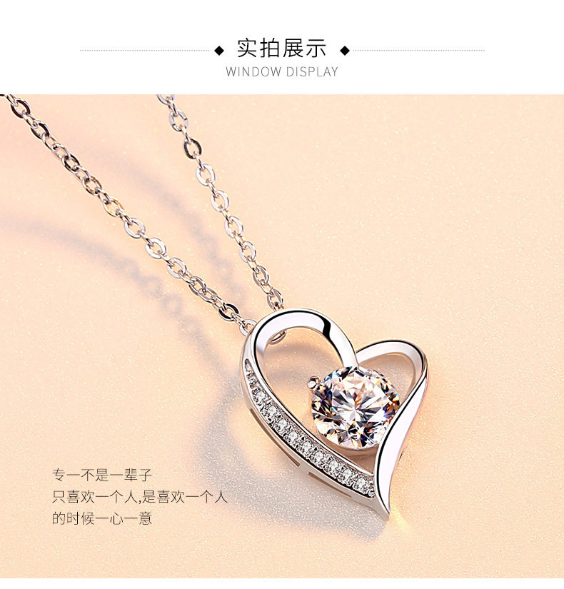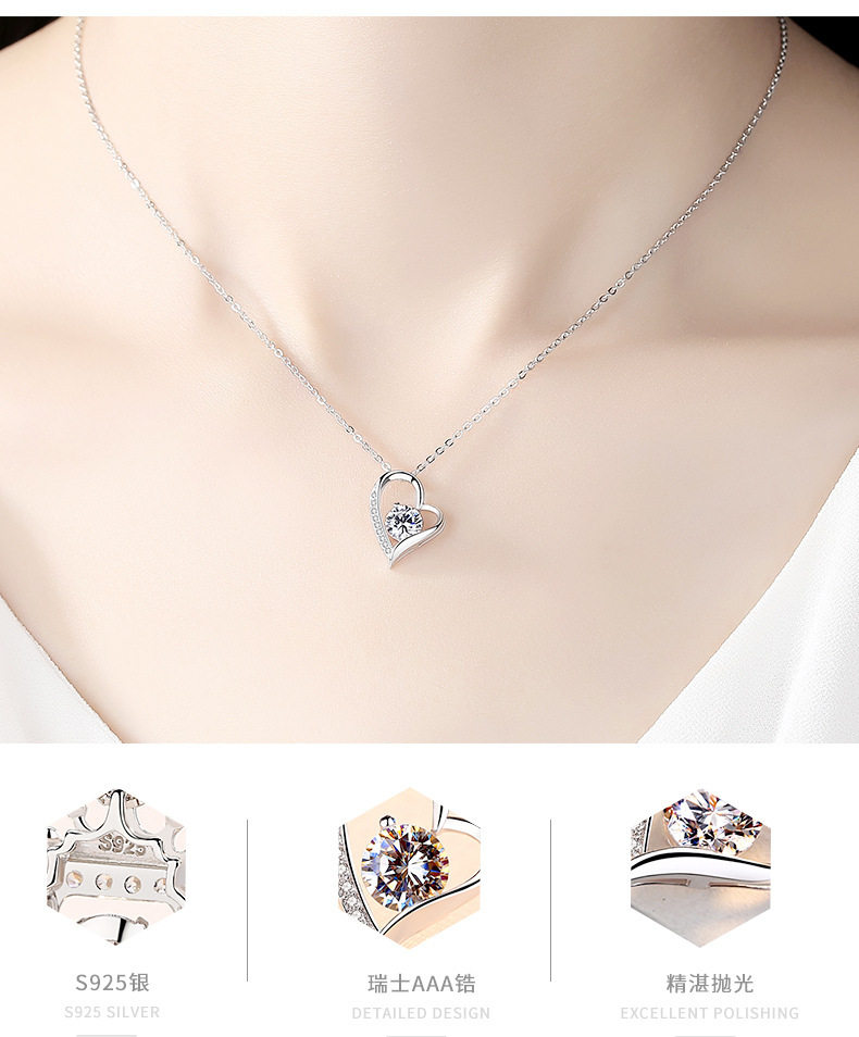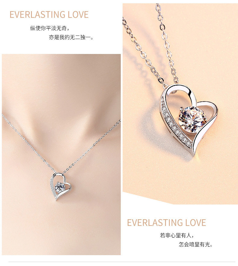 S925 Neck Chain Love Heart Shape Necklace Female Zircon Pendant Light Luxury Niche Design Girlfriend Birthday Gift Clavicle Chain