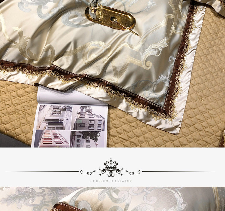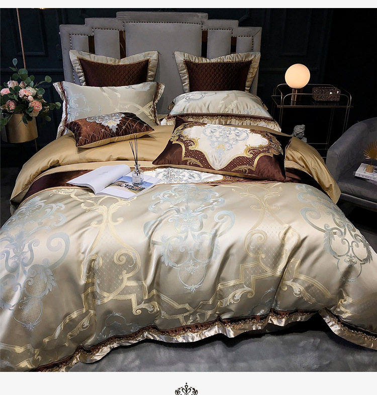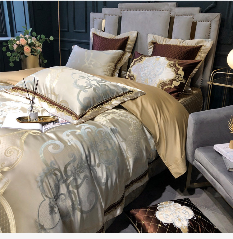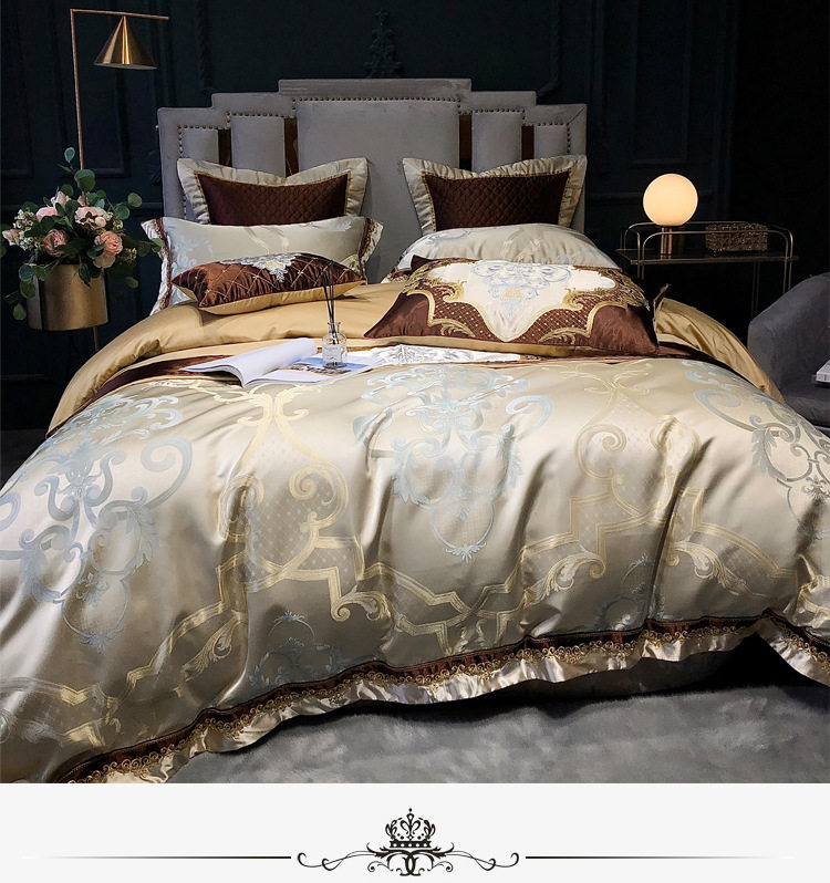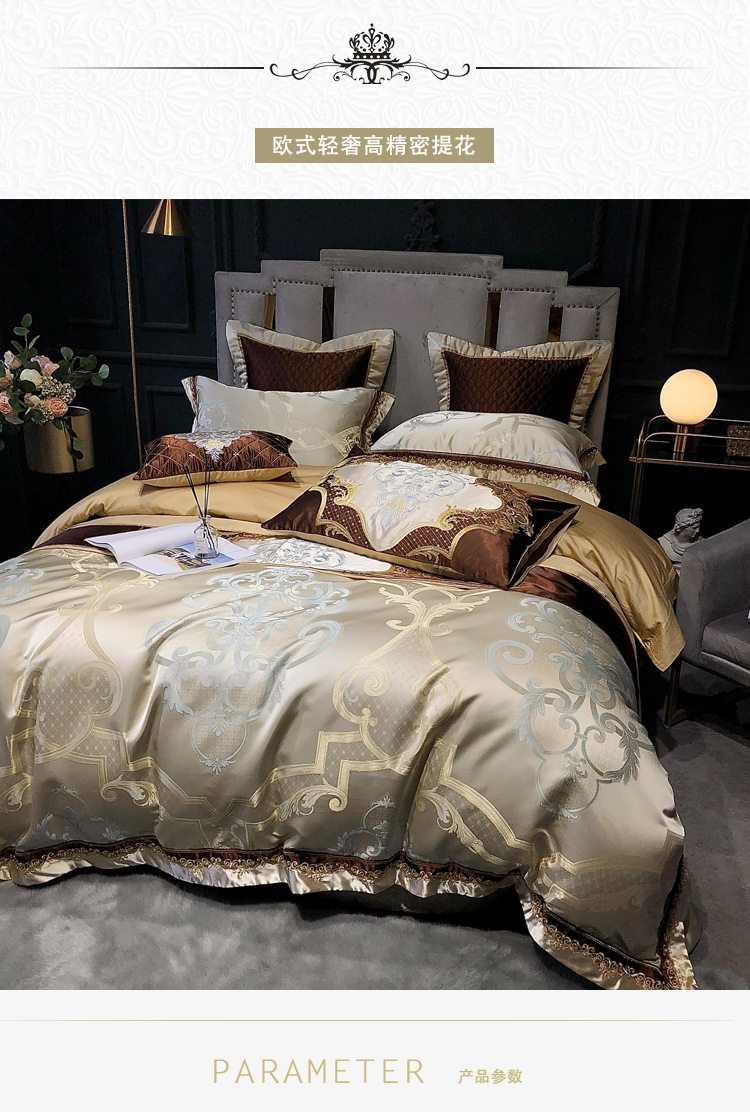 Champagne Satin Jacquard Four-piece Set European-style Bedding Quilt Cover Luxury Model Room Bed Cover Multi-piece Set