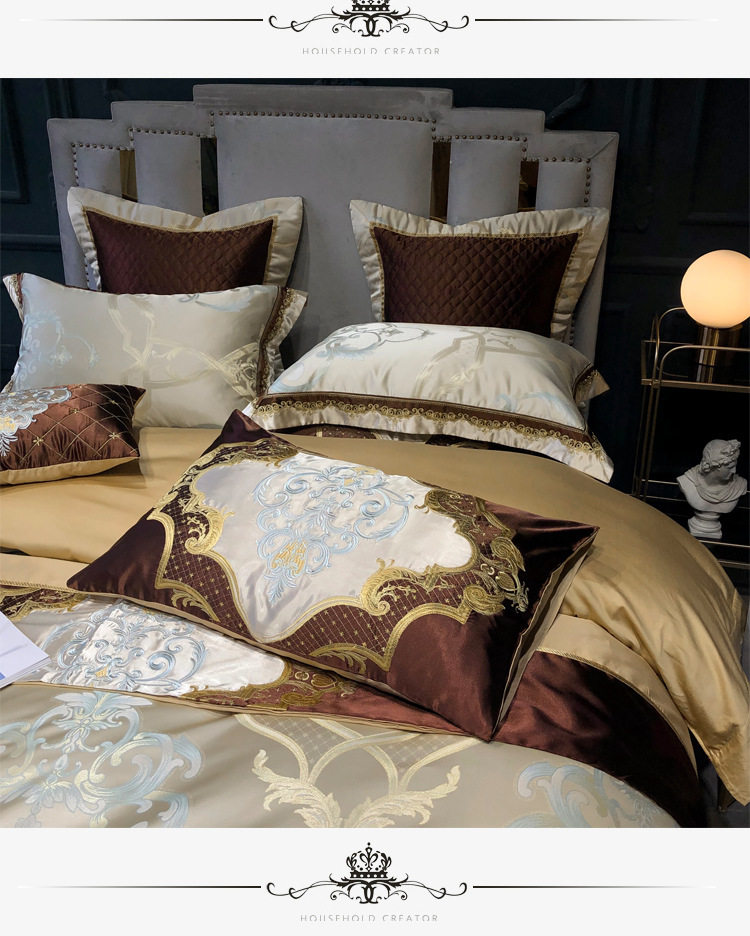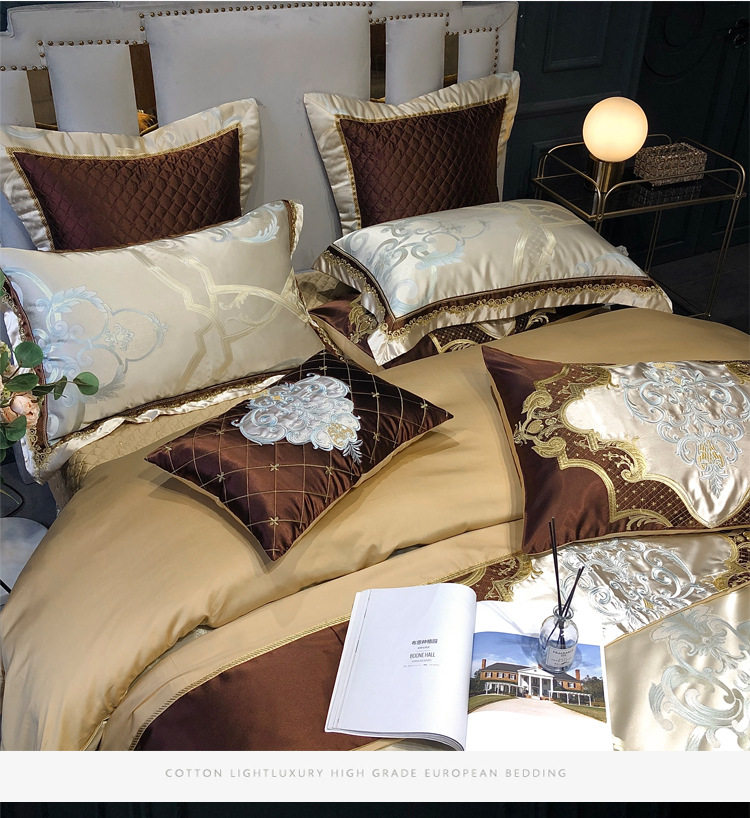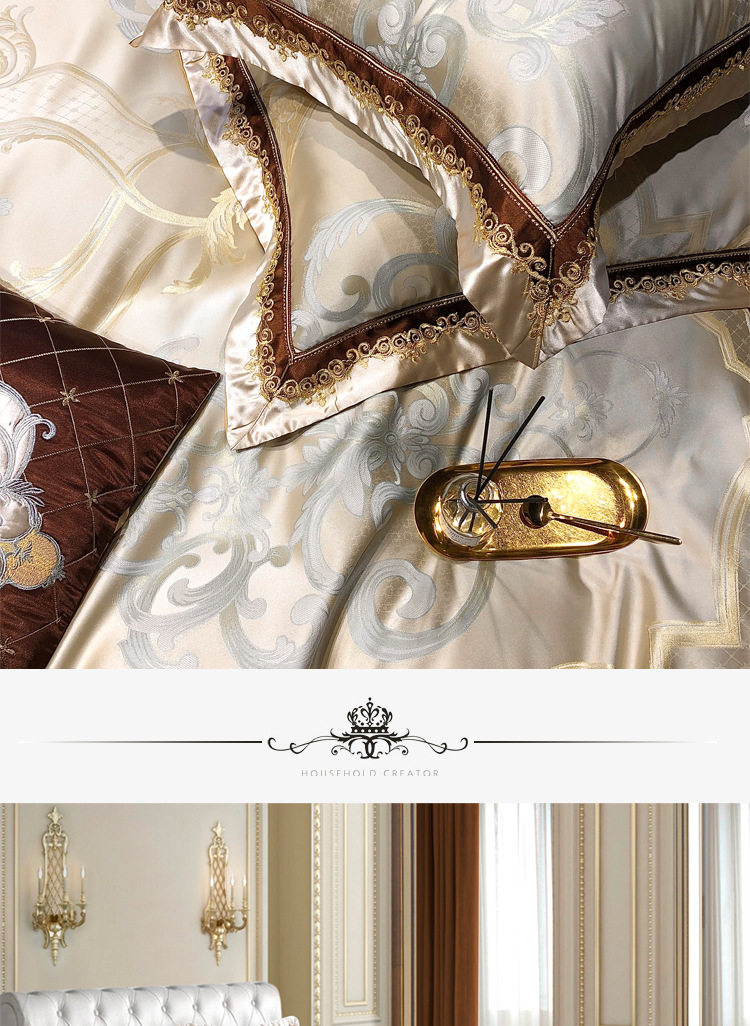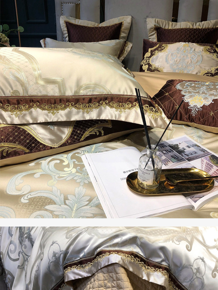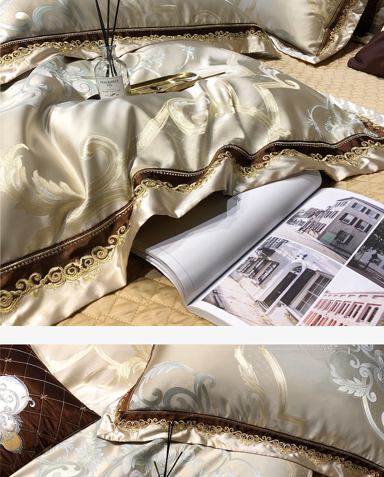 Champagne Satin Jacquard Four-piece Set European-style Bedding Quilt Cover Luxury Model Room Bed Cover Multi-piece Set
