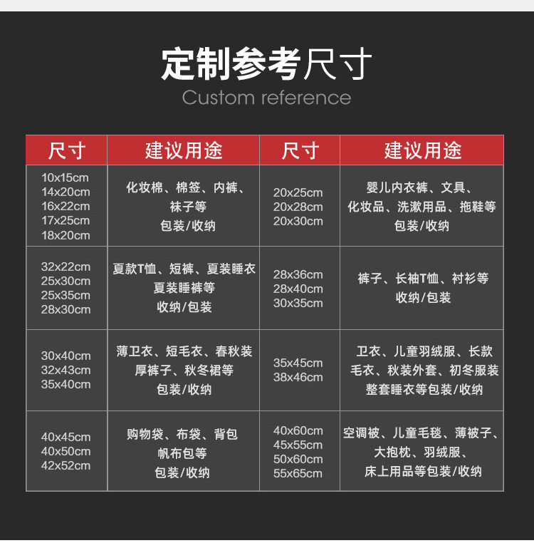 | Use | Bedding bag,Socks,Coin purse,Makeup brush,Daily necessities,Disposable gloves,Vacuum bag,Storage bag,Waterproof bag,Jewelry bag,Red bag,Electronic products,Gift packaging,Clothing storage box,Card storage,General Packaging,Cosmetic bag,Digital product package,Watch bag,Gift packaging bag,Jewelry packaging,Clothing bag,Belt packaging,Toy packaging,Hardware accessories packaging,Product packaging bags,Gift packaging,Glasses packaging,Baking packaging,Transparent plastic bag,Underwear packaging bag,Transparent packaging bag,Clothing accessories,Clothing shoes and hats,Product outer packaging,Universal packaging bag,Watch packaging bag,Daily department store,Clothing packaging bags,Fruit preservation bag,Mobile phone case packaging,Pe express bag,Card reader packaging bag,Transportation packaging,Card bag packaging,Cat food bag,Flower packaging film,Digital product packaging,Cute packaging,Mobile phone case packaging bag,Mask bag,Clothing packaging,Daily necessities packaging bags,Daily necessities packaging,Clothing packaging,Simulated flower packaging bag,Bedding packaging,Consumable packaging,Data cable packaging bag,Mobile phone accessories packaging,Sock packaging,File packaging,Stationery packaging,Electronic product packaging bags,Any package,Wig packaging bag,Facial mask packaging bag,Storage bag,Wire bag,Mobile phone accessories packaging bag,Battery packaging bag,Pet food packaging bag,Industrial packaging,Mask packaging bag,Mobile phone battery packaging,Electronic packaging bag,Auto supplies packaging bags,Underwear and underwear packaging,Electronic accessories packaging,Tag bag,Mask packaging,Scissors packaging,OPPdai,Toilet paper packaging,Cat litter packaging bag,Insole packaging,Tea ziplock bag,Fishhook packaging bag,Hdmi cable packaging bag,Universal ziplock bag,Powder puff packaging bag,Hdmi cable packaging,Jewelry packaging,Refill packaging bag,Daily necessities packaging,Office stationery packaging,Food packaging bags,Leggings packaging bags,Photo packaging,Handkerchief packaging bag,Medical mask bag,Grain bags,Disposable raincoat packaging,Cultural play bag,Blind bag,Universal plastic packaging bag,Commemorative coin bag,Hose packaging bag,Sealed storage,Small pendant packaging,Headscarf packaging bag,Jewelry packaging storage,Adapter packaging bag,Sun protection clothing packaging,Rubber band jewelry packaging,Beauty daily chemical packaging,Digital home appliance packaging,Pathological organizational specimen bag,Universal jewelry packaging bag,Clothing jewelry packaging bags,Watch with packaging bag,Strap packaging bag,Toy card head packaging,Otg packaging bag,Vegetable and fruit storage bag,Jewelry and jewelry storage bag,Book protection bag,Mobile phone and equipment packaging,Office document packaging,Universal bag packaging,Sample storage package,Disposable daily necessities packaging bags,Ornament jewelry storage bag,Gift packaging, daily necessities packaging, beauty daily chemical packaging,Gift bags, food bags, clothing bags, jewelry stores, daily use,Wet wipes and wipes extraction package,Paper outer and outer packaging bags,Clothing packaging bags, towel packaging, mobile phone case packaging, digital product packaging, jewelry,Motherboard hard drive chip packaging bag,All kinds of gift packaging,Hardware parts packaging,Bracelet jewelry bag,All kinds of outer packaging bags,Jewelry 3c accessories ziplock bag,Jewelry jewelry bags,Bidet set packaging bag,Opp/plastic products,Aquatic plant finished packaging bag,Dried wolfberry packaging,Inner pages of bill holder,Adapter cable packaging bag,Store nuts, dry goods, tea leaves,Strap bag,Watch with bag,Baji ziplock bag storage bag,Clothing, accessories, books, packaging and storage,Earrings jewelry necklace packaging bag,Red border packaging bag,Refined ziplock bag,Other |