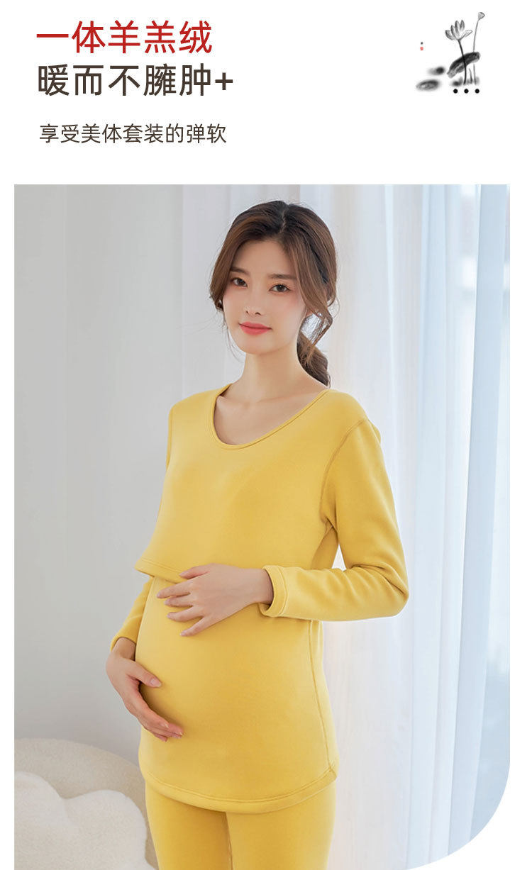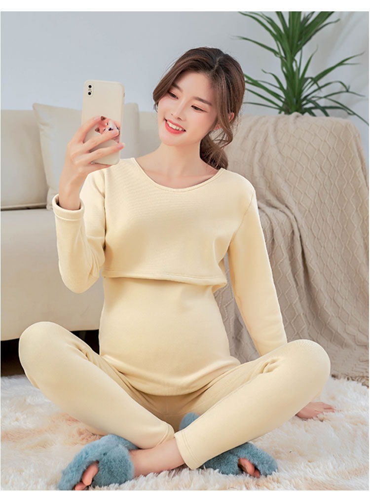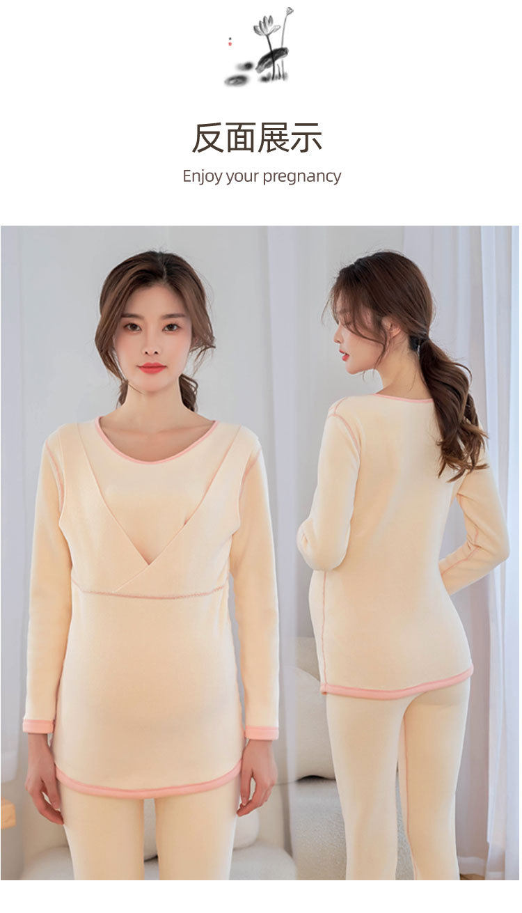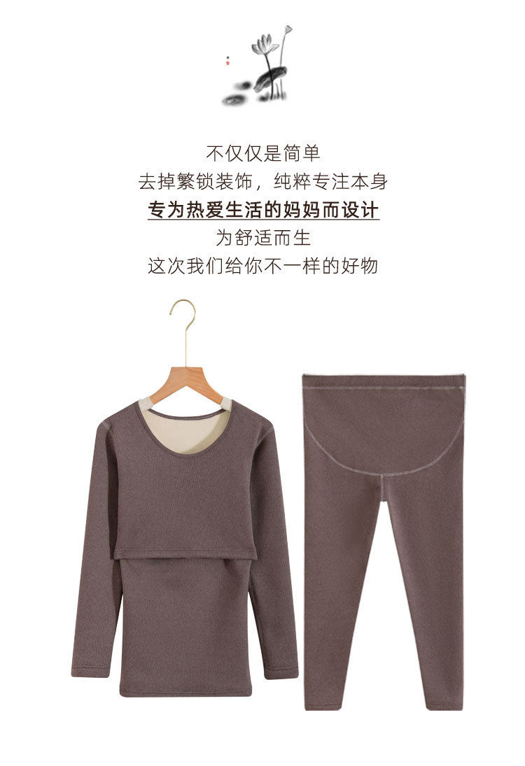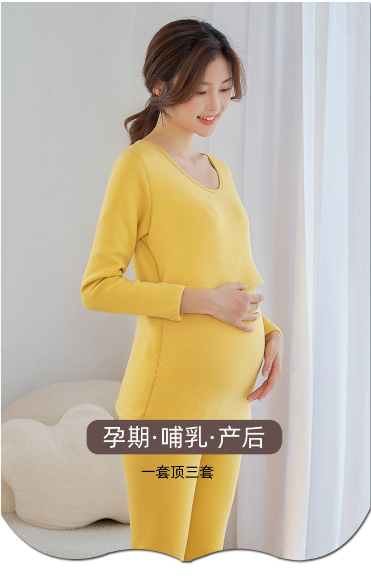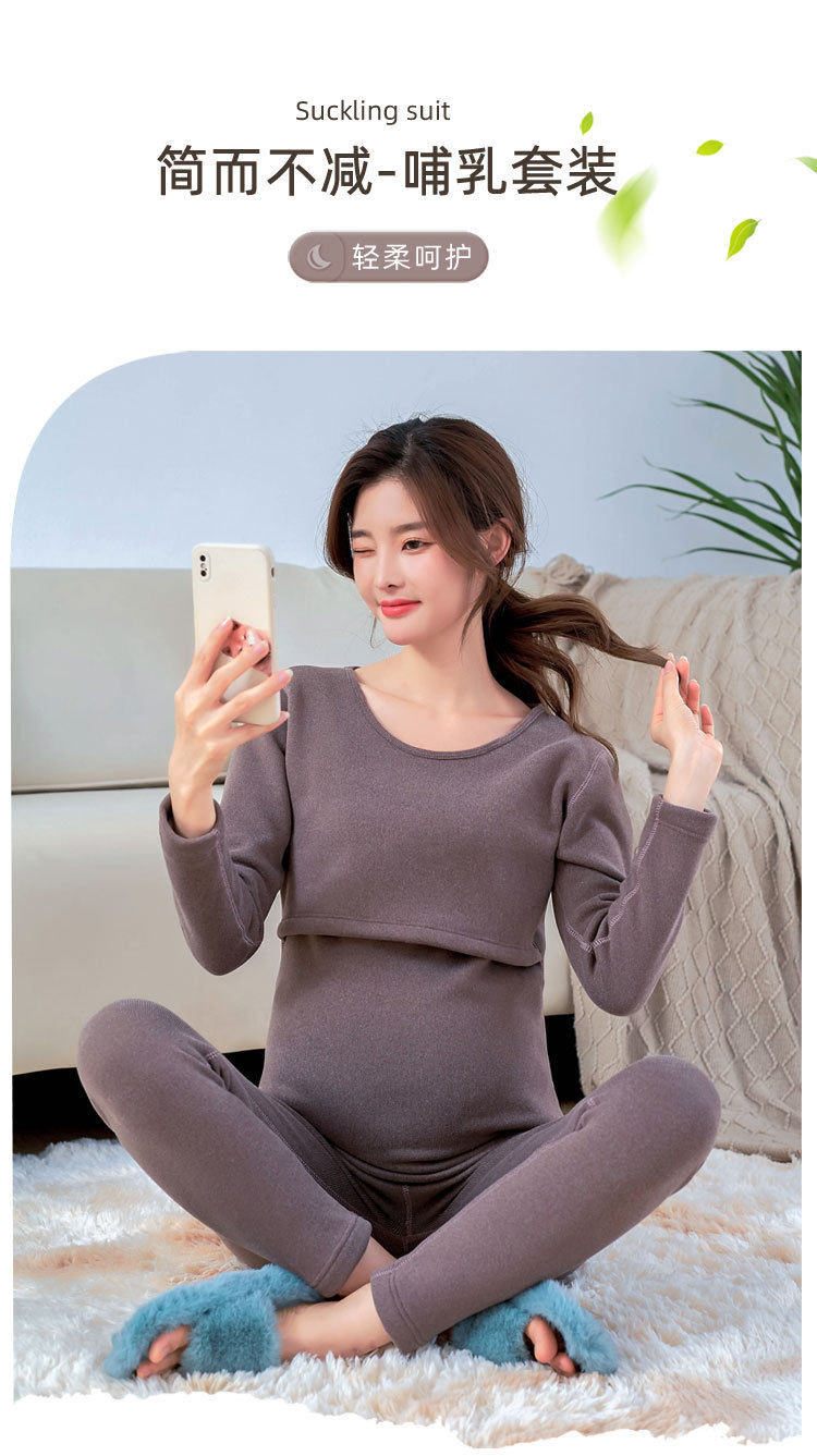 Pregnant Women's Thermal Underwear Set Fleece-lined Thickened Autumn and Winter Autumn Clothes Autumn Trousers Pregnant Period Pajamas Postpartum Breast-feeding Month Clothes
