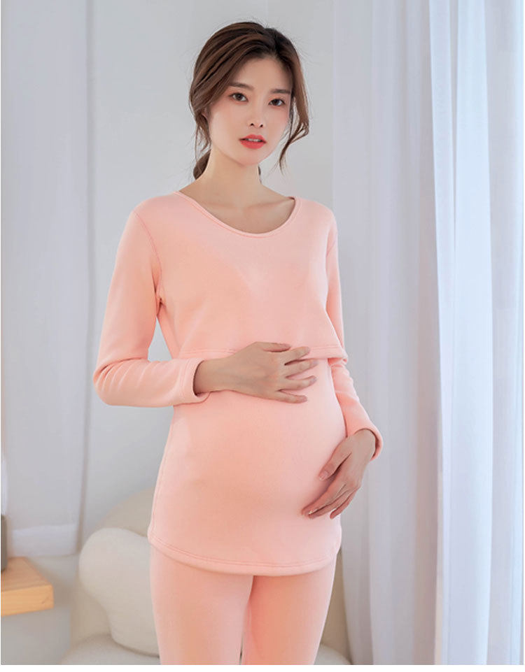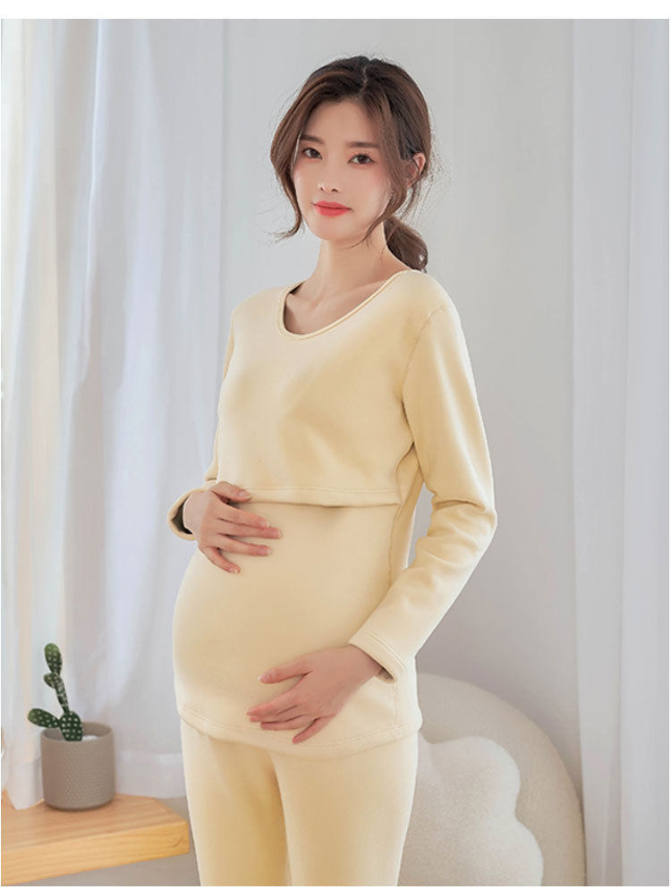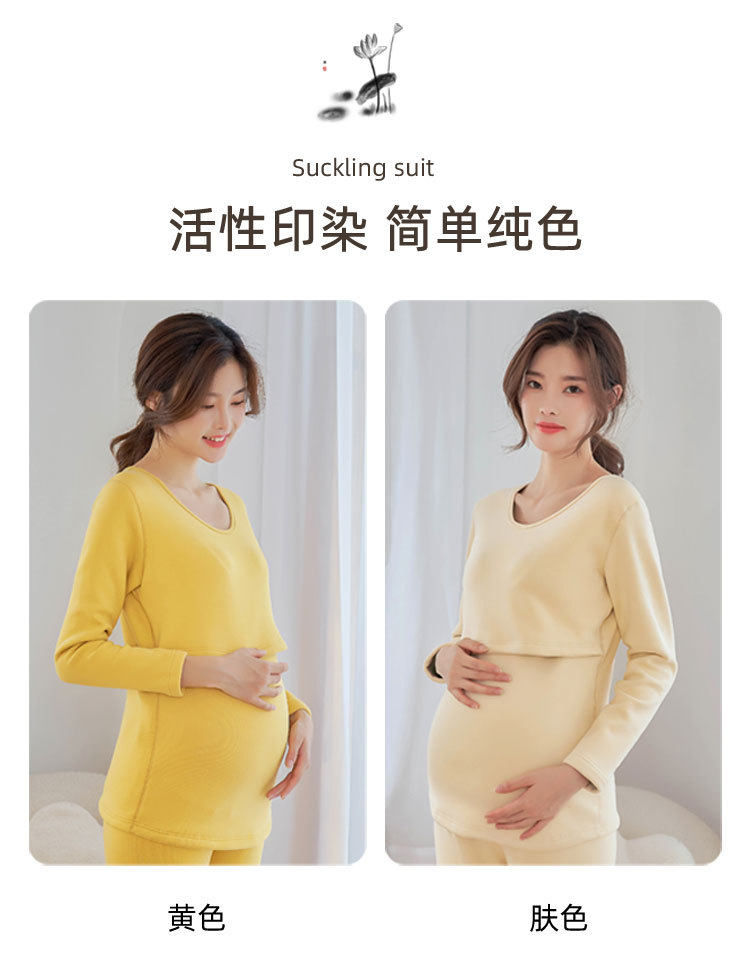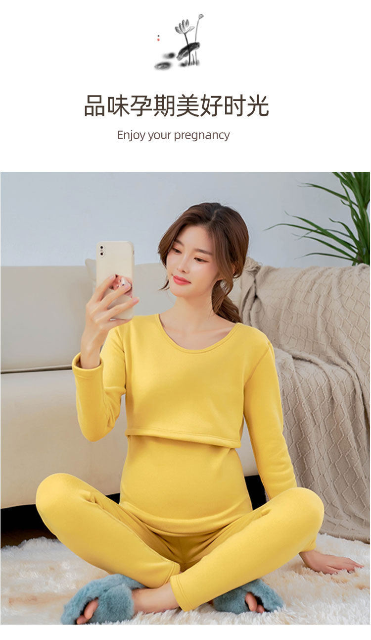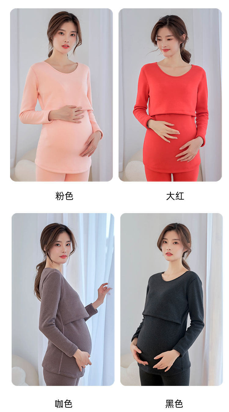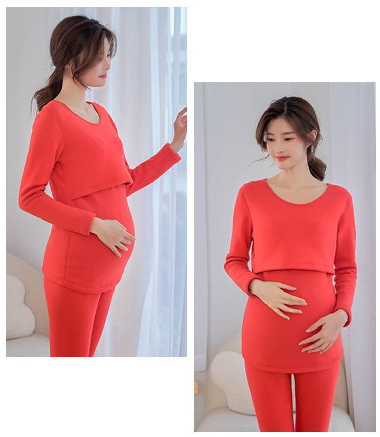 Pregnant Women's Thermal Underwear Set Fleece-lined Thickened Autumn and Winter Autumn Clothes Autumn Trousers Pregnant Period Pajamas Postpartum Breast-feeding Month Clothes