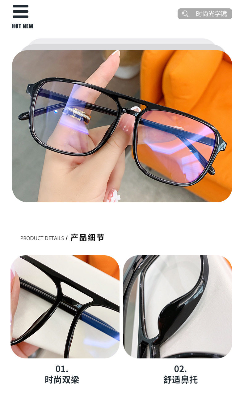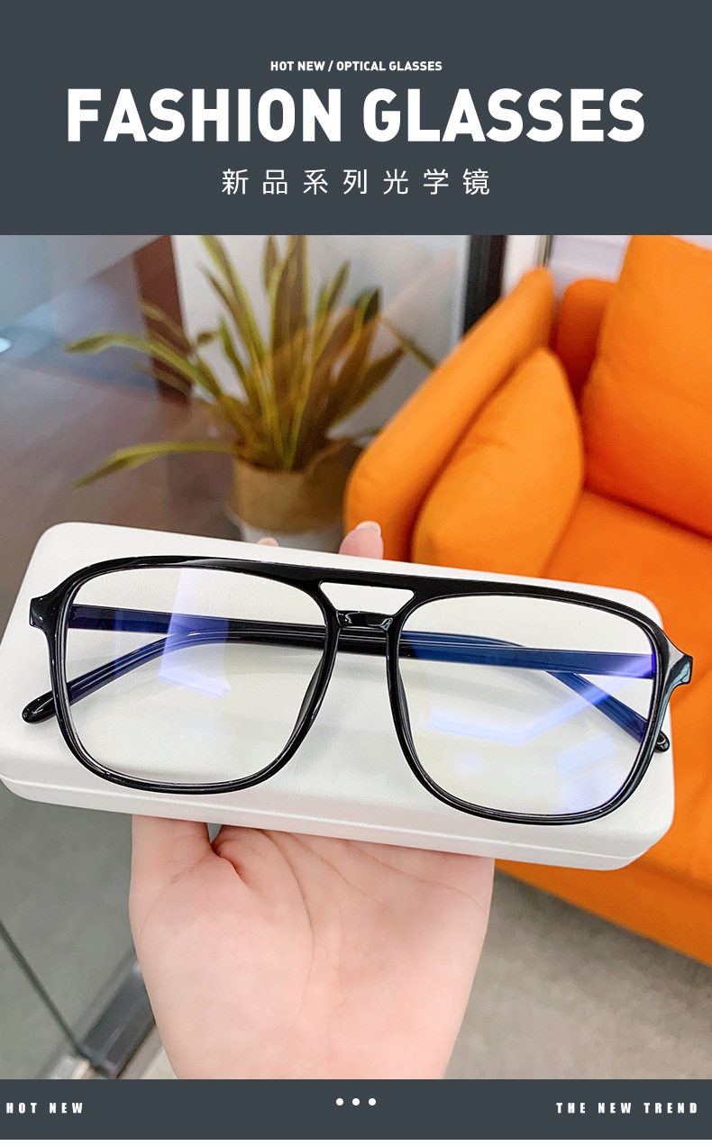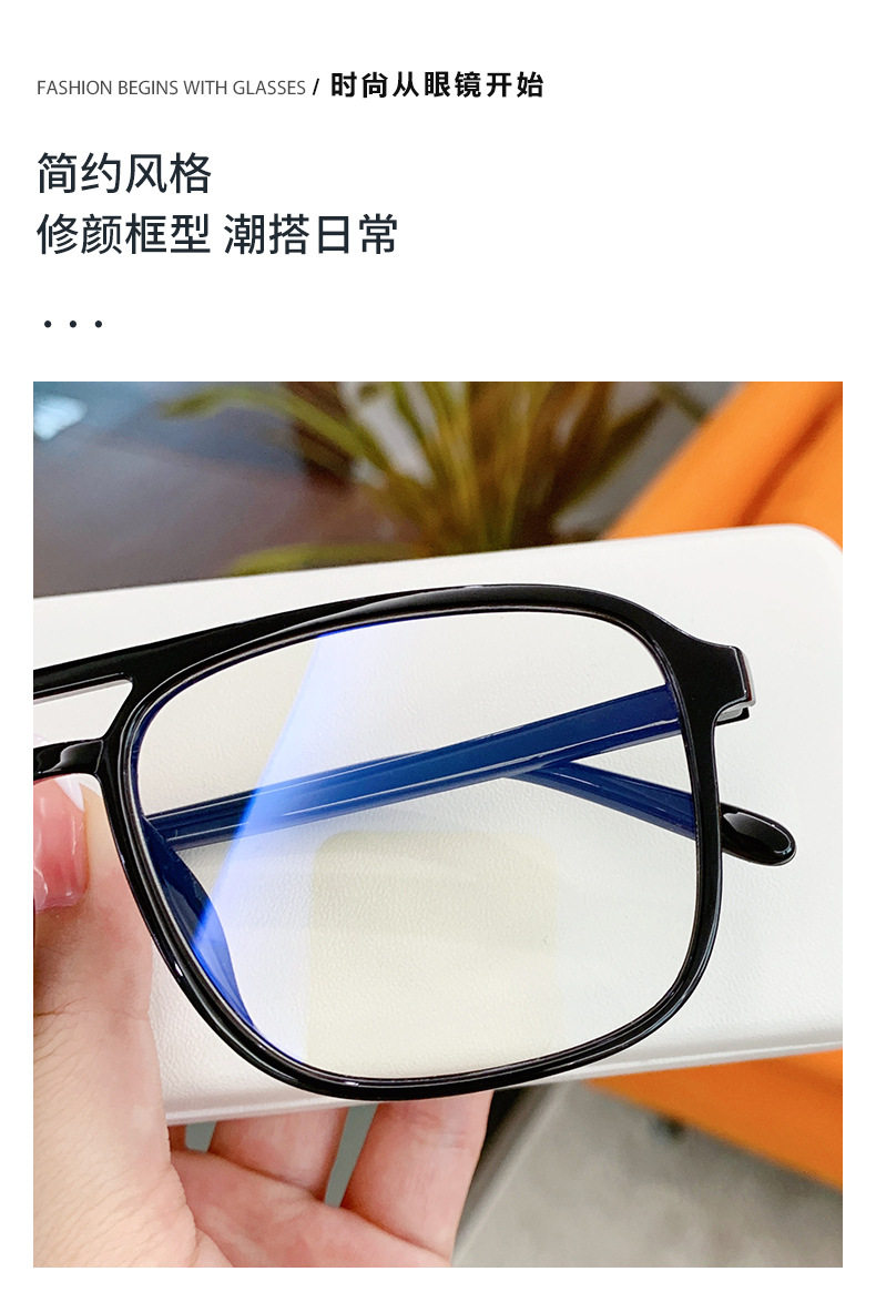 New Anti-Blue Light Glasses Internet Celebrity Men's and Women's Flat Glasses Square Frame Fashionable Glasses Frame Plain Street Photography Myopia Glasses