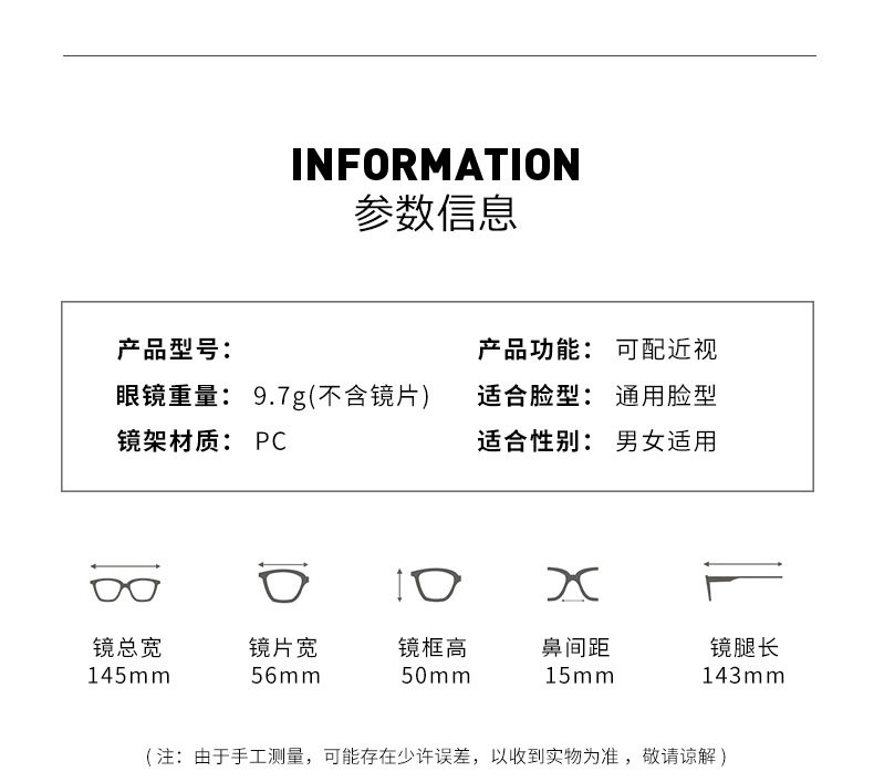 | Frame Color | Sand Black,Transparent powder,Bright Black Frame,Transparent frame,Transparent blue frame |