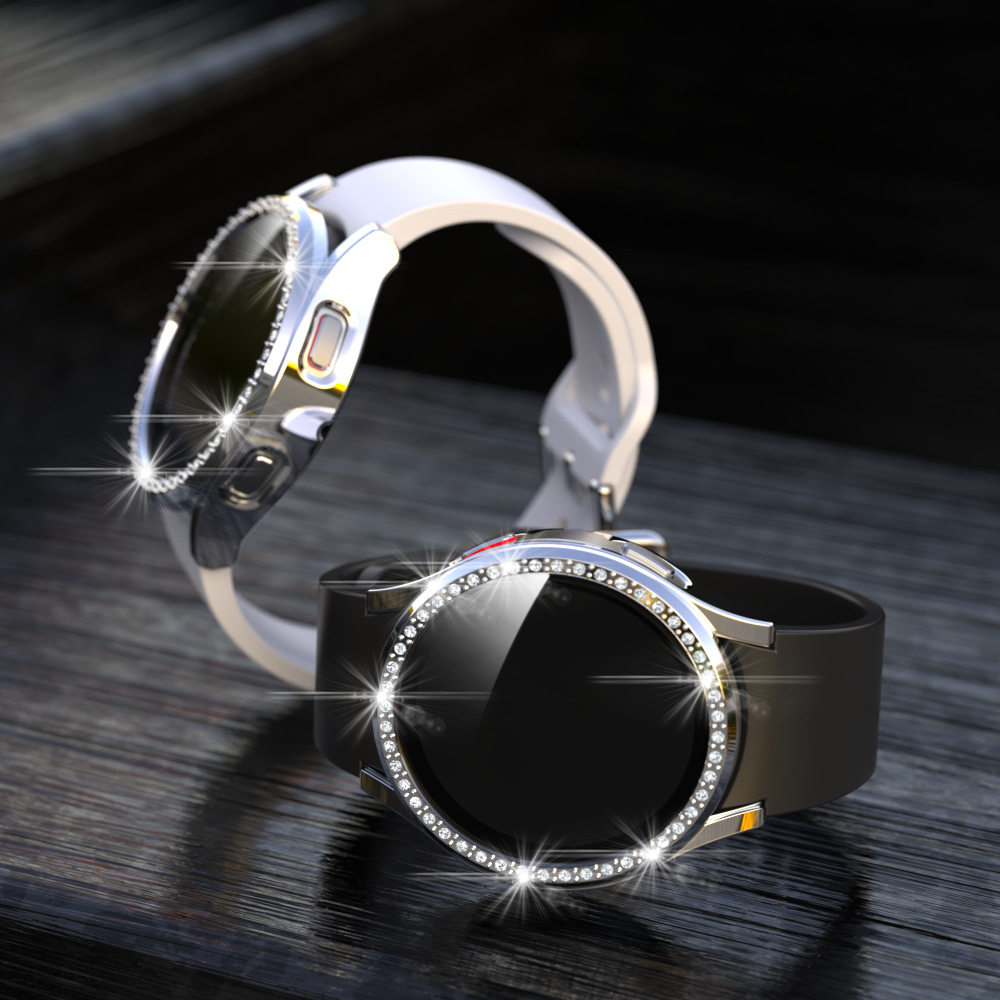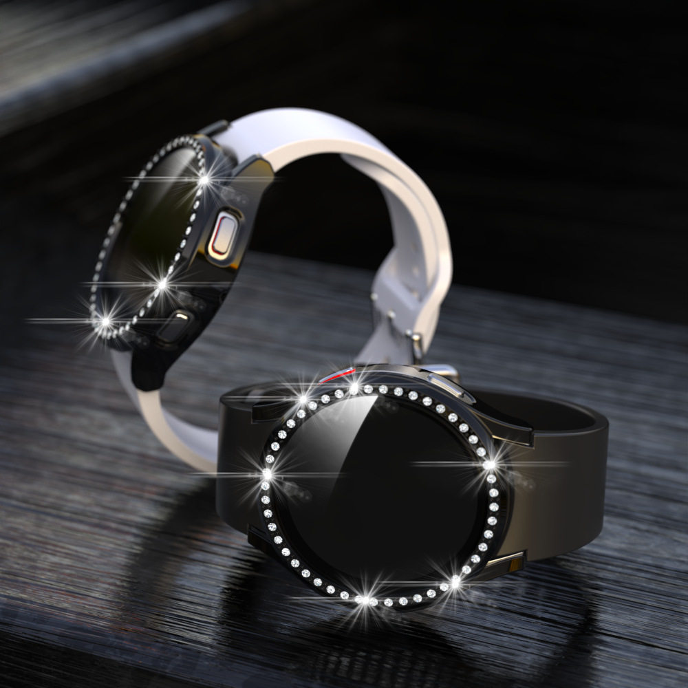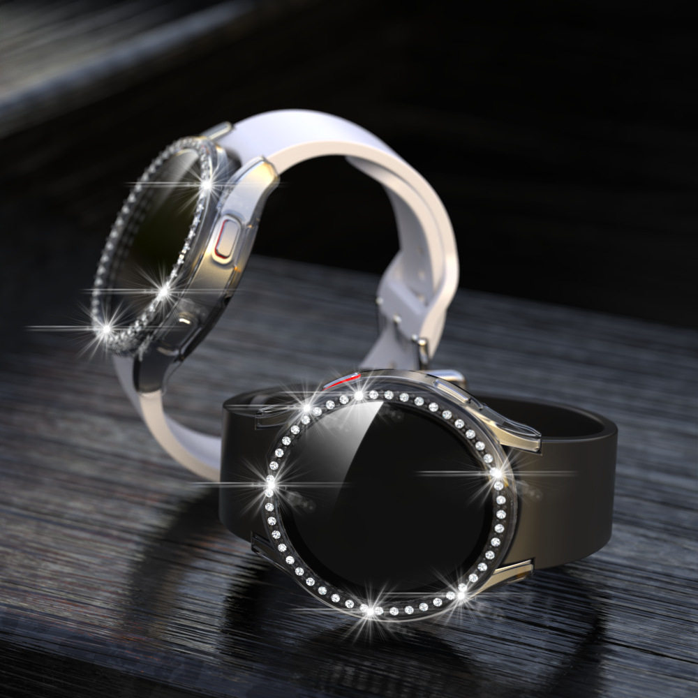 For Samsung Watch Diamond-encrusted One-piece Case Galaxy Watch7/FE/6/5/4 Protective Cover Full-cover Tempered Film
