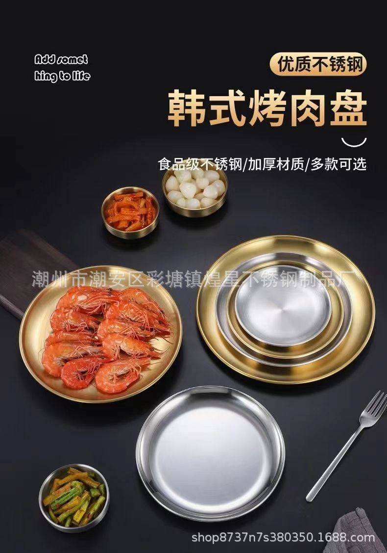 Stainless Steel Barbecue Plate Household Plate Barbecue Tray Dish Baking Plate Thickened Dish Bone Plate Spitting Bone Plate