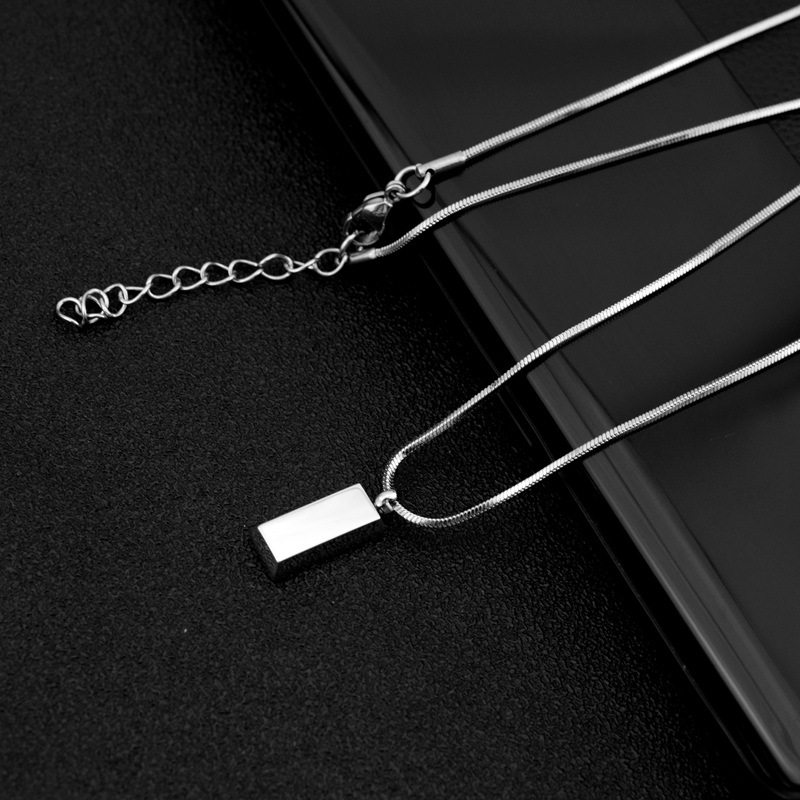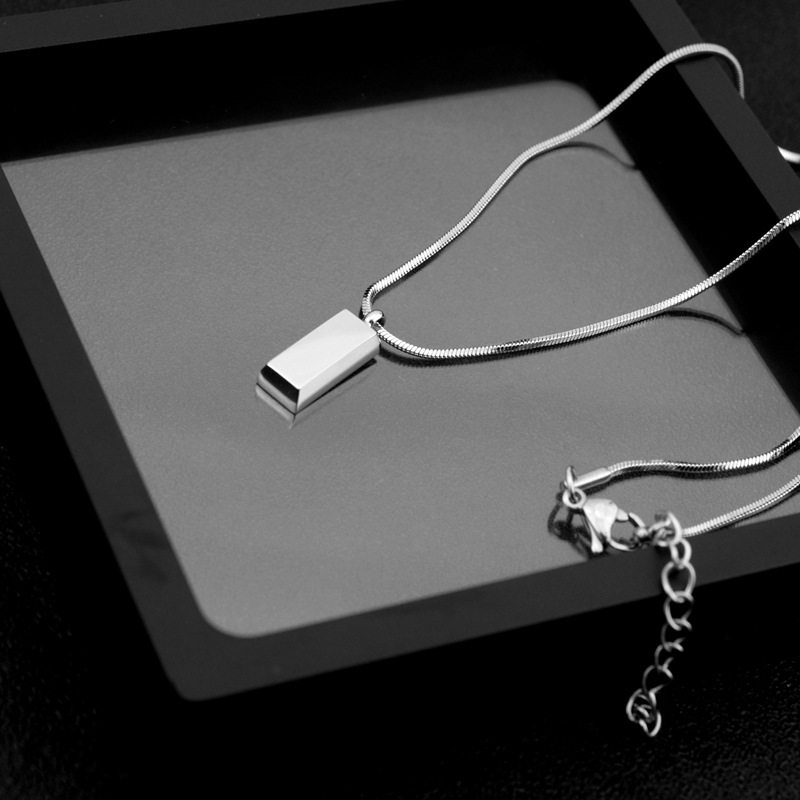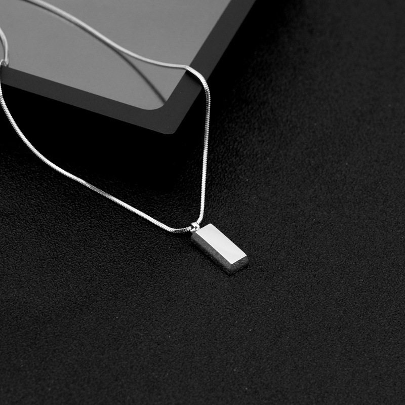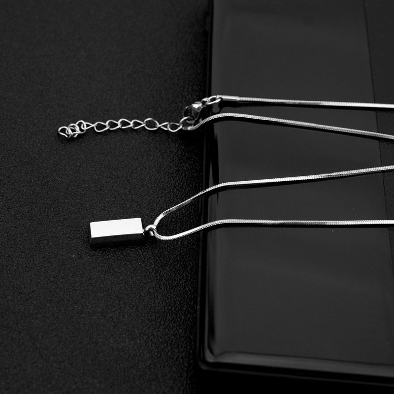 Small wholesale explosive titanium steel necklace small silver brick pendant necklace neutral style exquisite snake chain clavicle necklace
