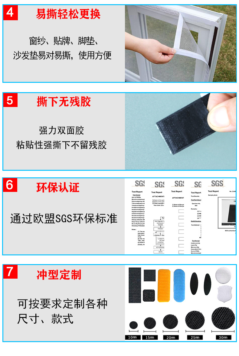 Factory custom adhesive hook and loop 3 meters 5 meters nylon hook surface wool surface sub-mother patch screen window with adhesive hook and loop custom