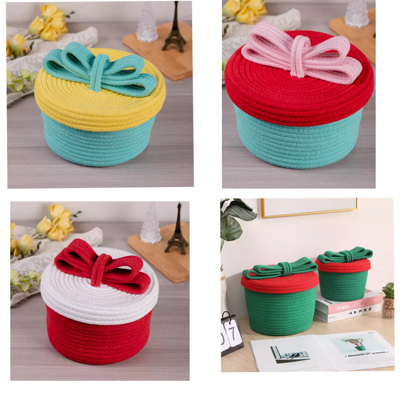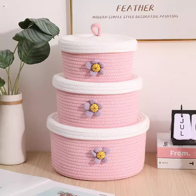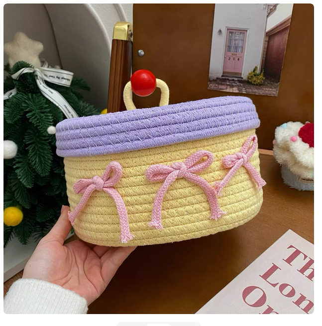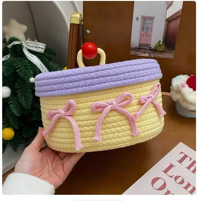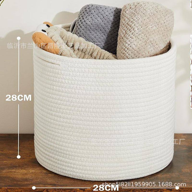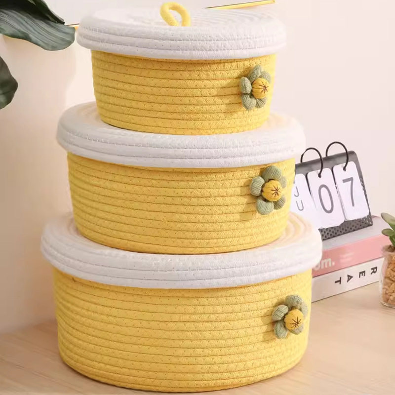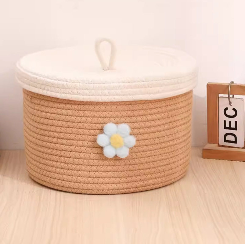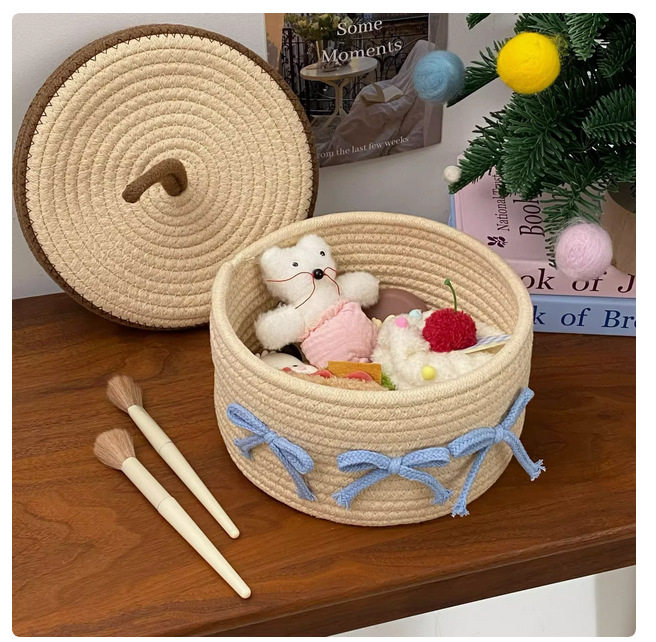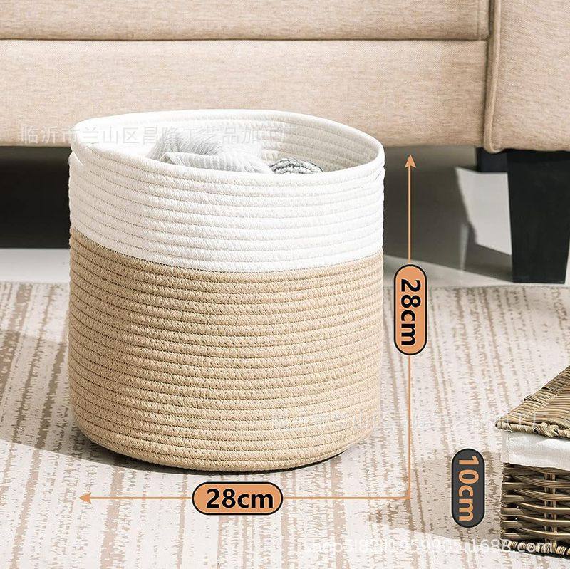 Woven Cotton Rope Storage Basket Cross-Border Cotton Thread Woven Basket Household Storage Basket with Lid Desktop Sundry Basket