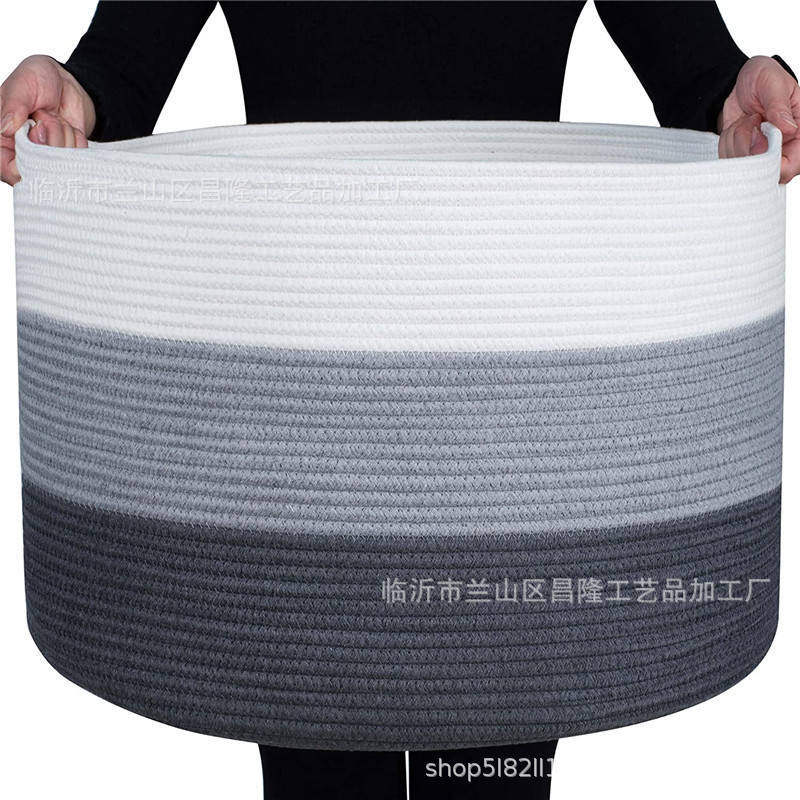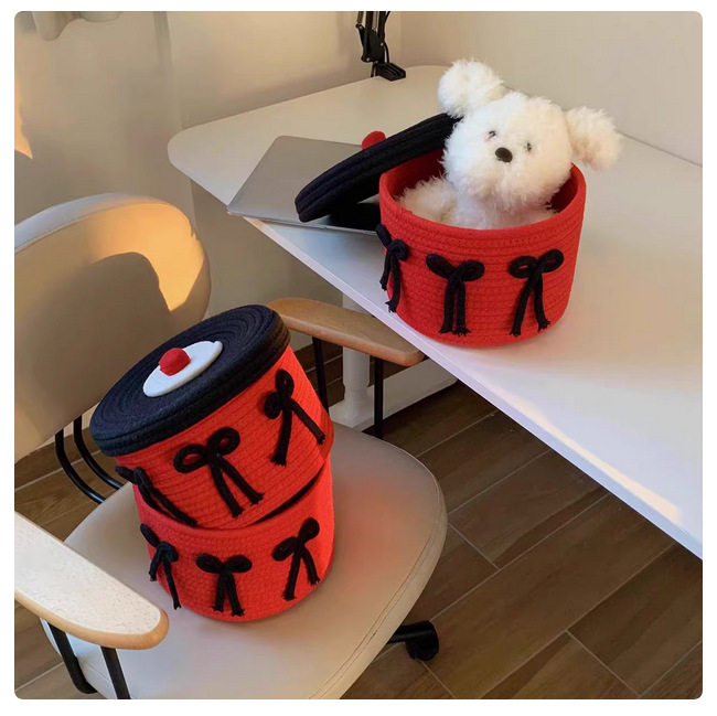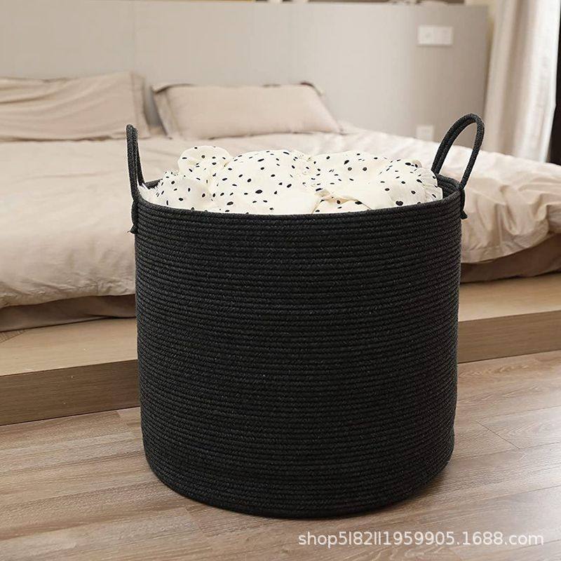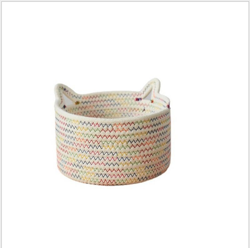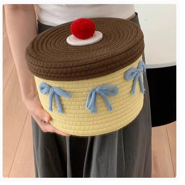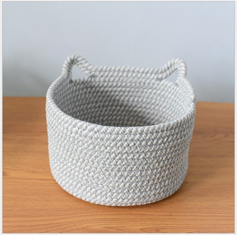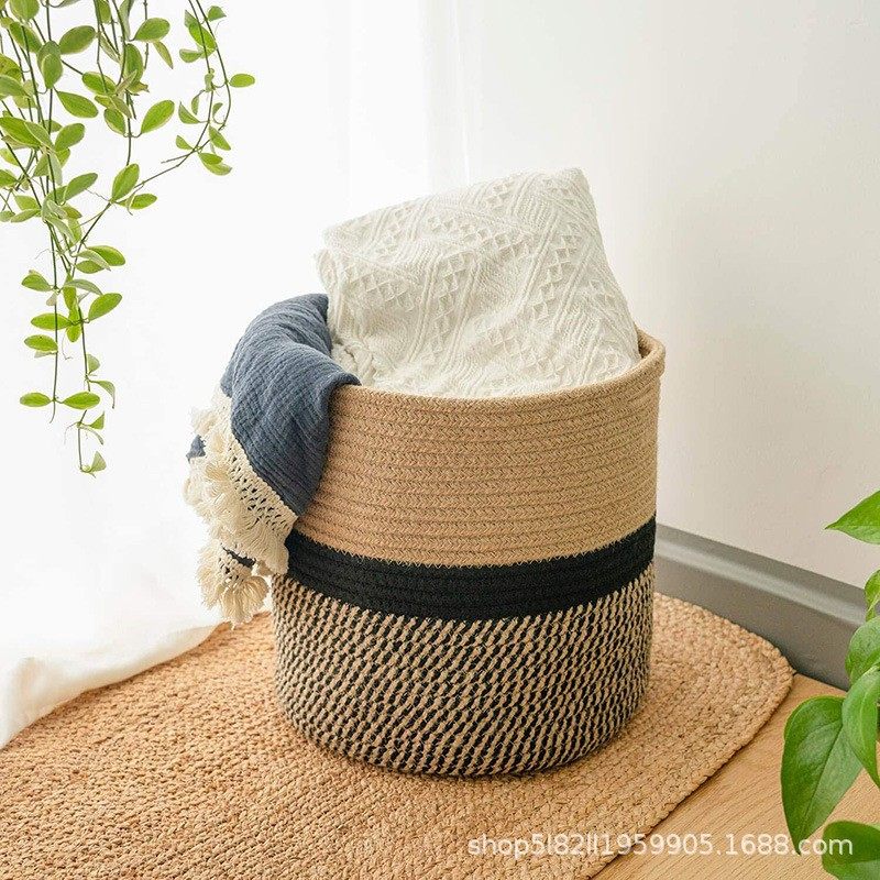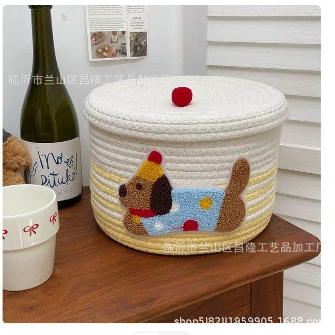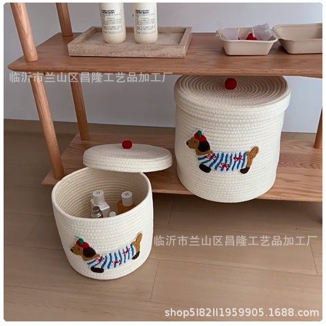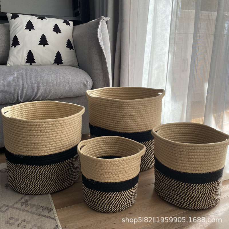 Woven Cotton Rope Storage Basket Cross-Border Cotton Thread Woven Basket Household Storage Basket with Lid Desktop Sundry Basket