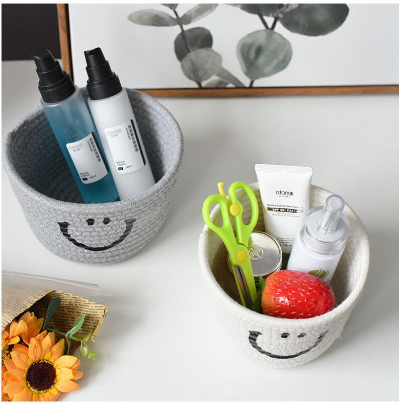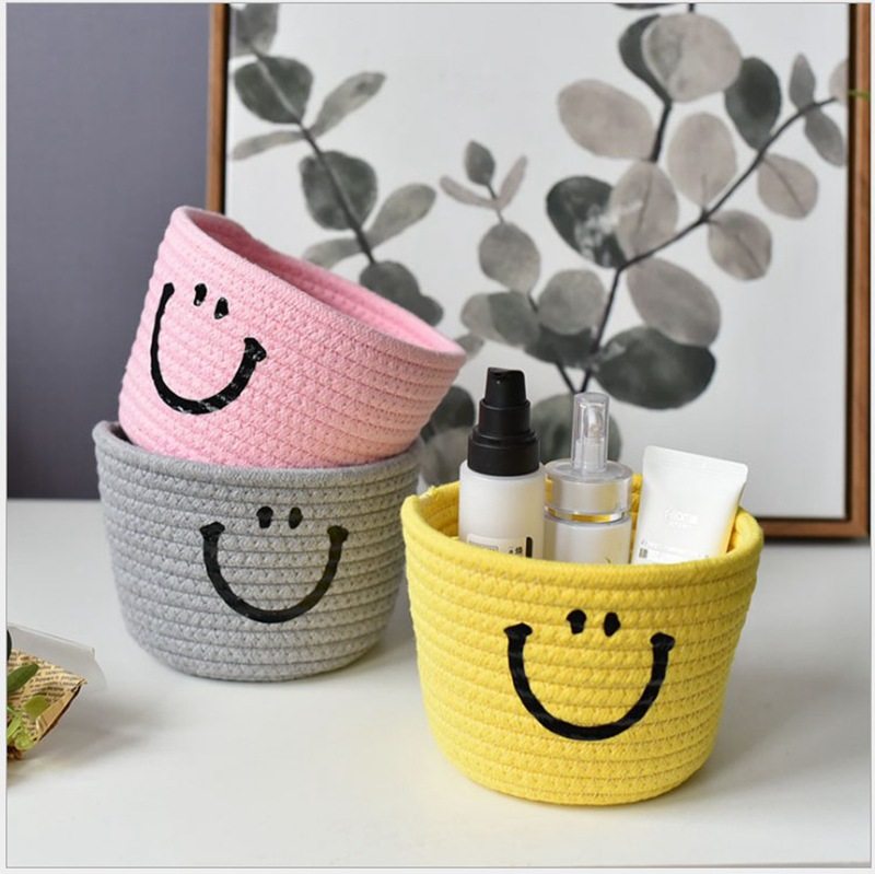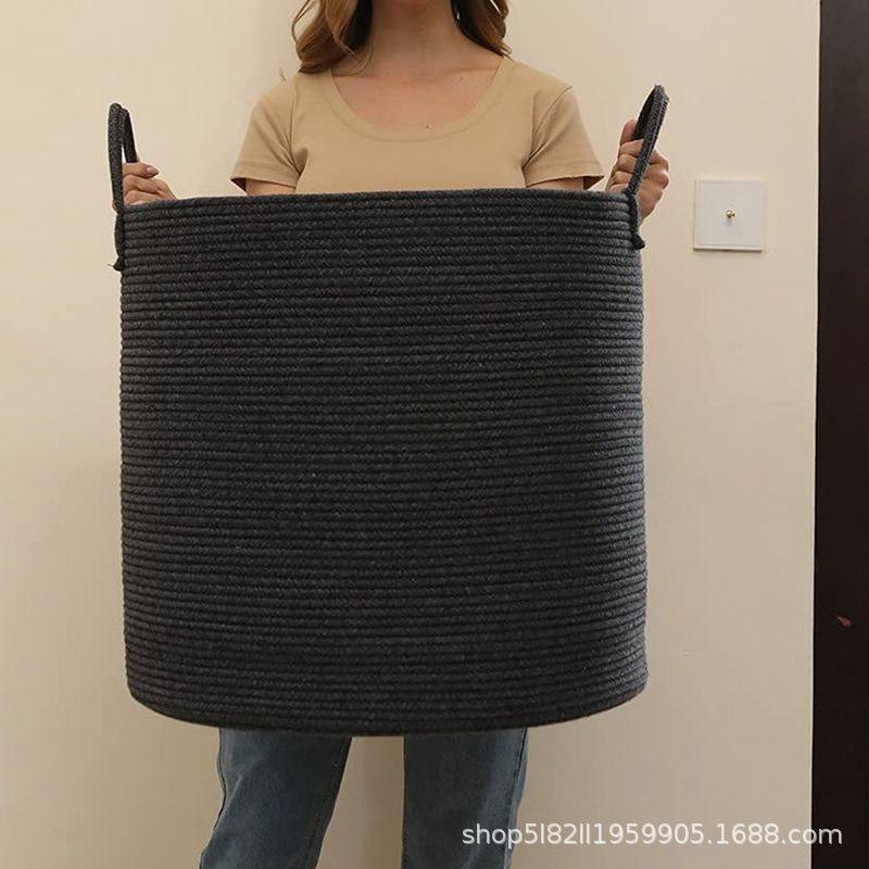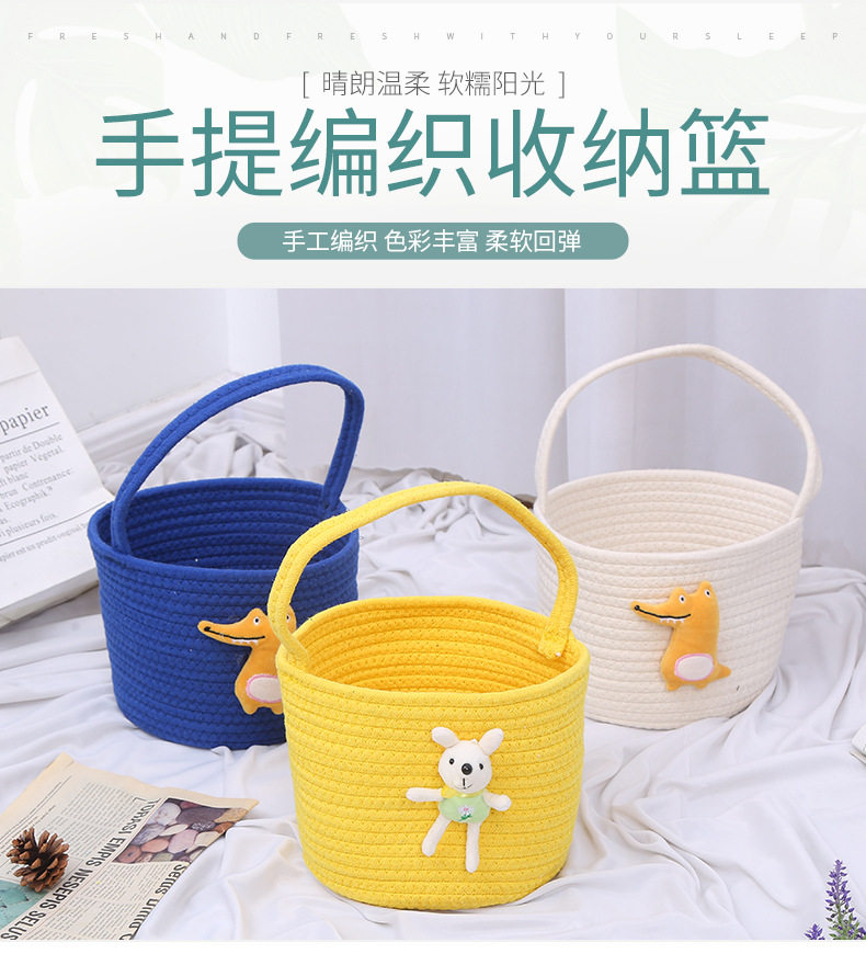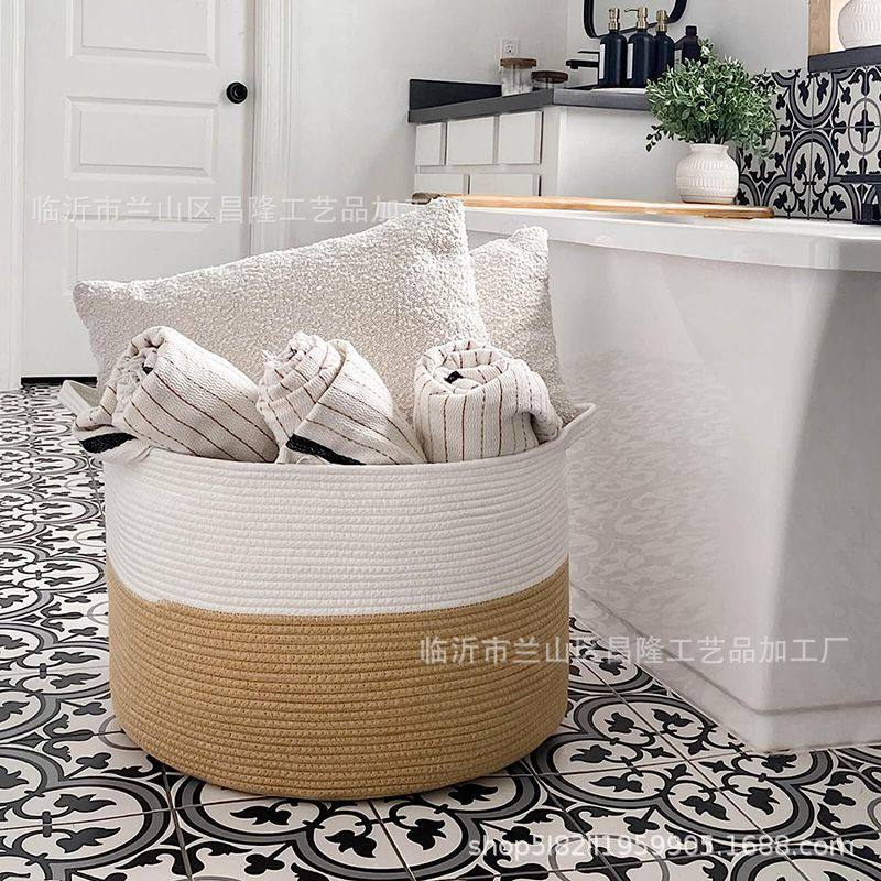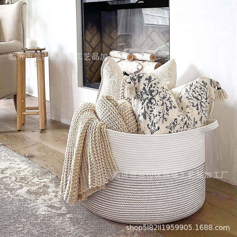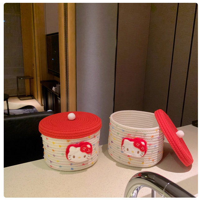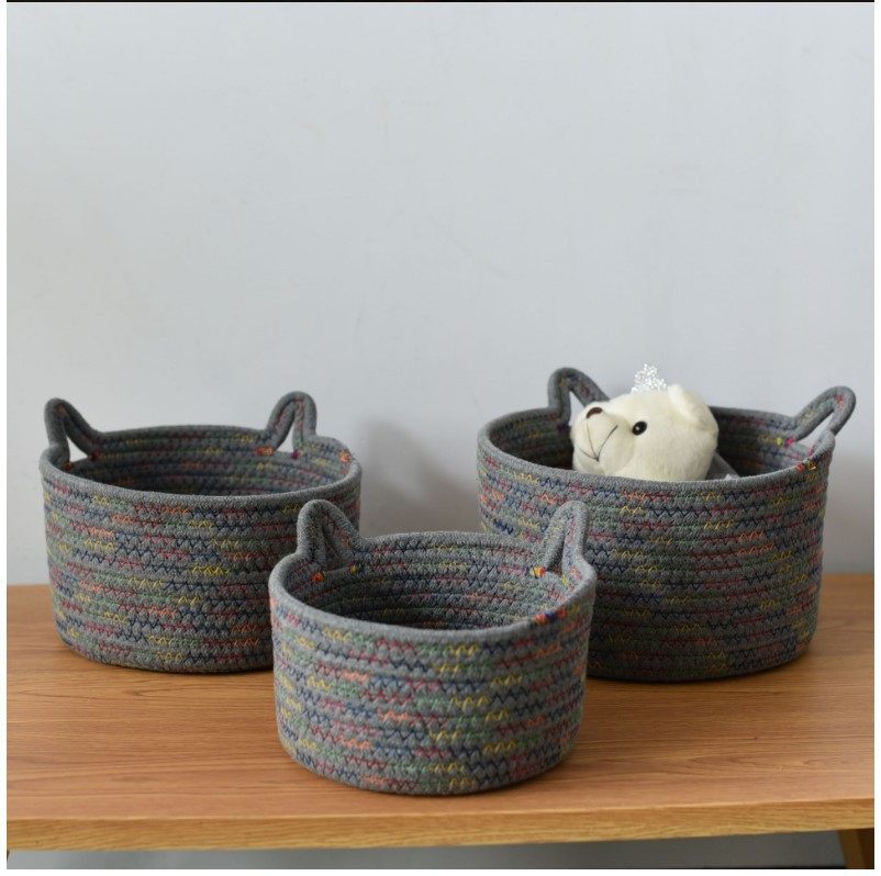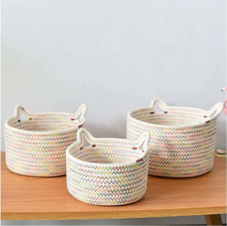 Woven Cotton Rope Storage Basket Cross-Border Cotton Thread Woven Basket Household Storage Basket with Lid Desktop Sundry Basket