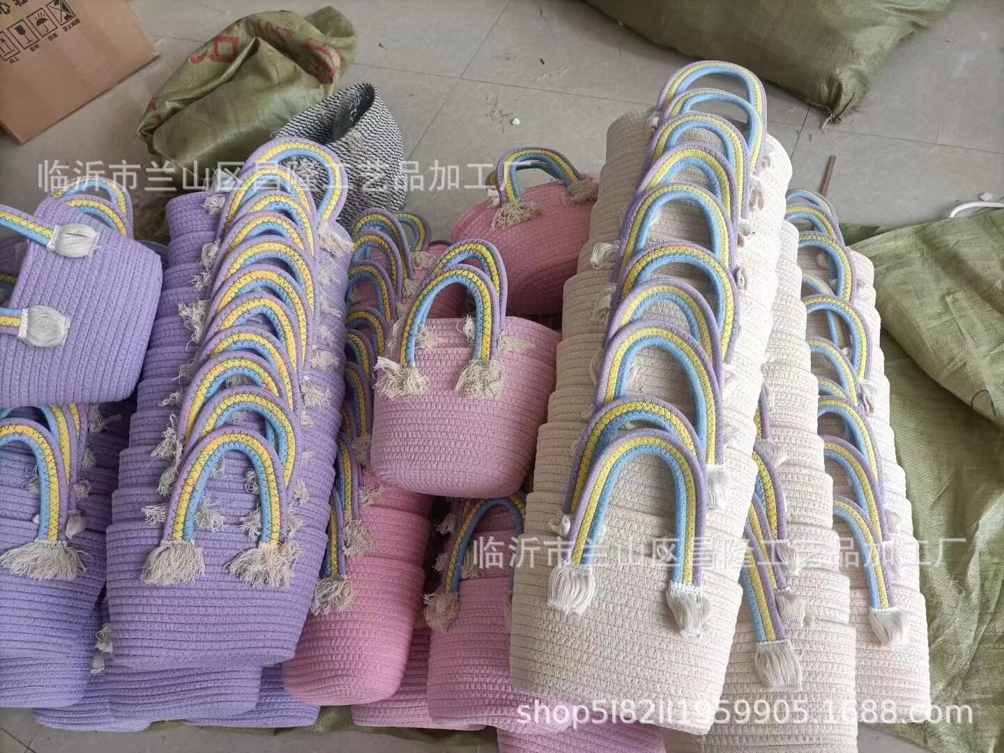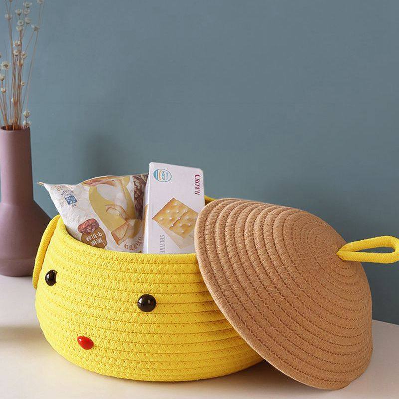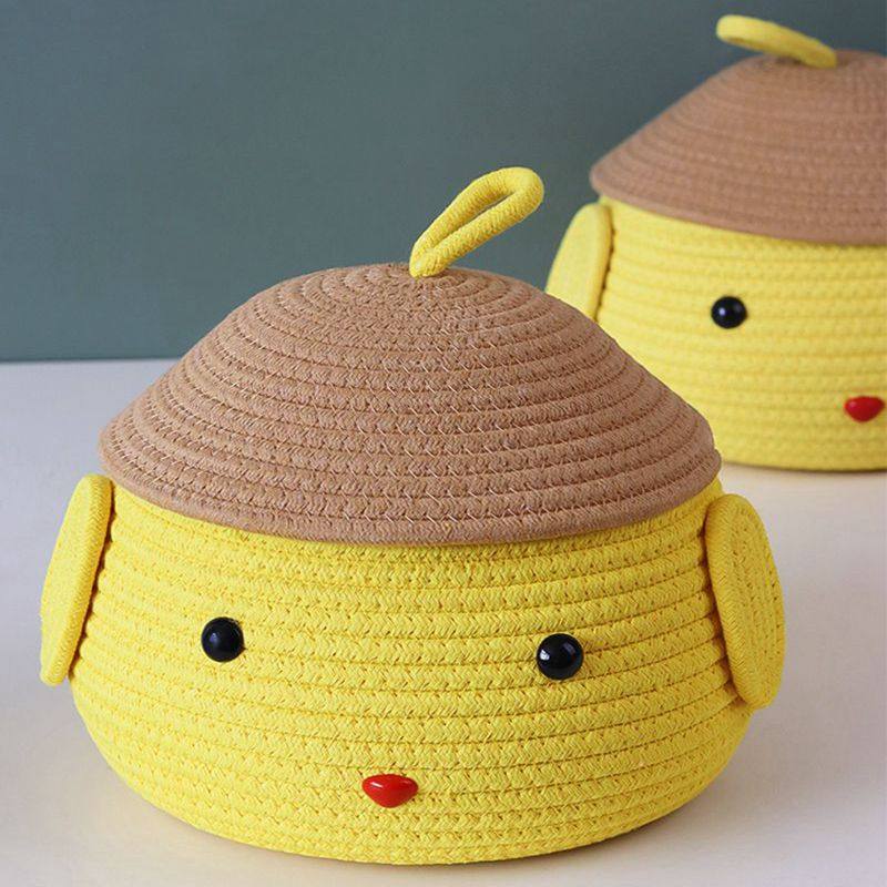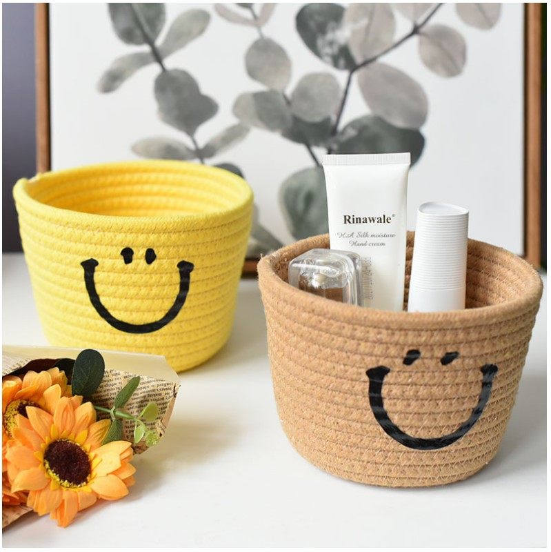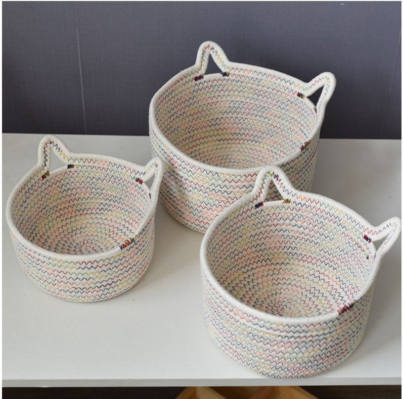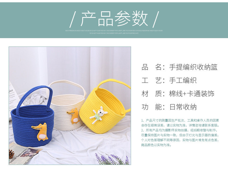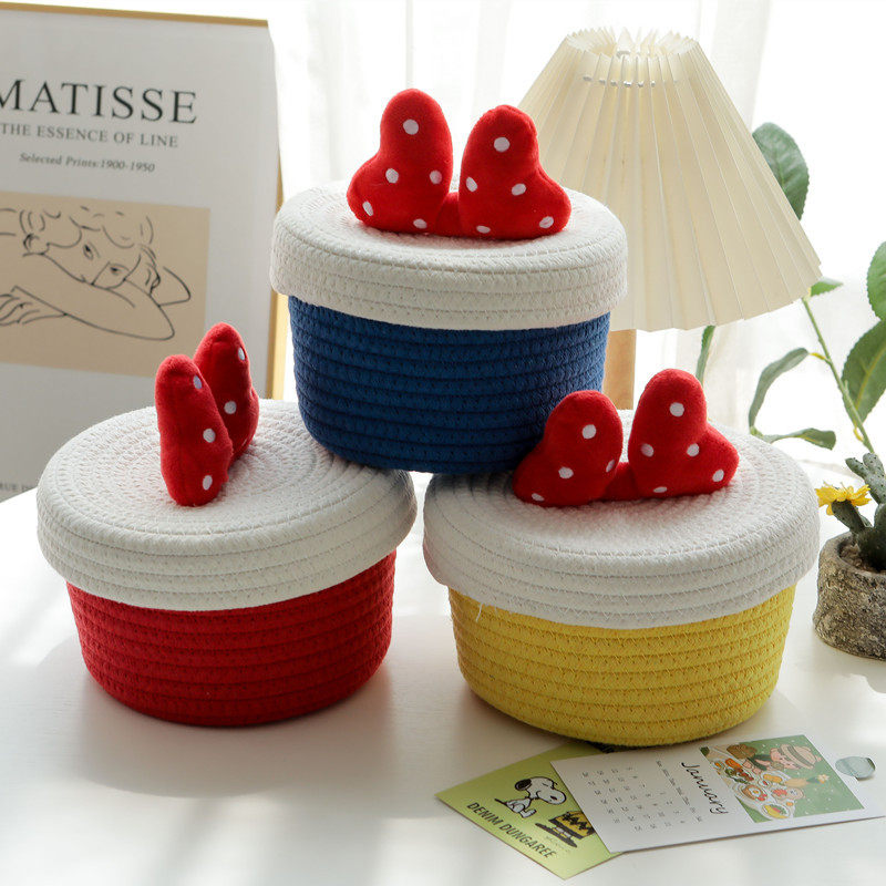 Woven Cotton Rope Storage Basket Cross-Border Cotton Thread Woven Basket Household Storage Basket with Lid Desktop Sundry Basket