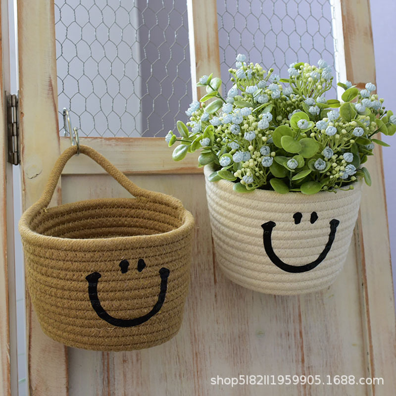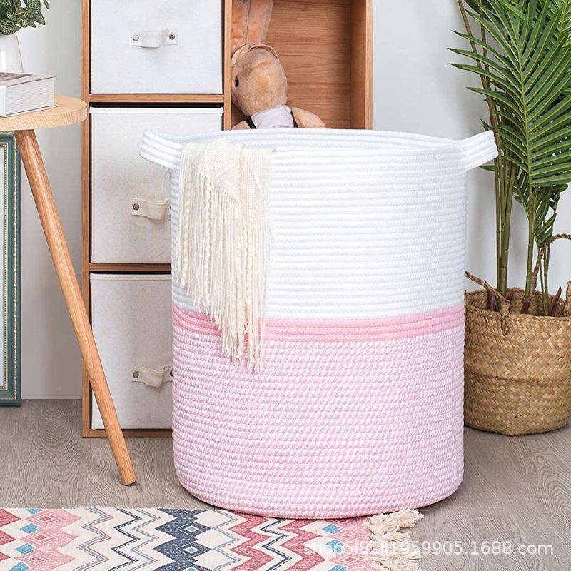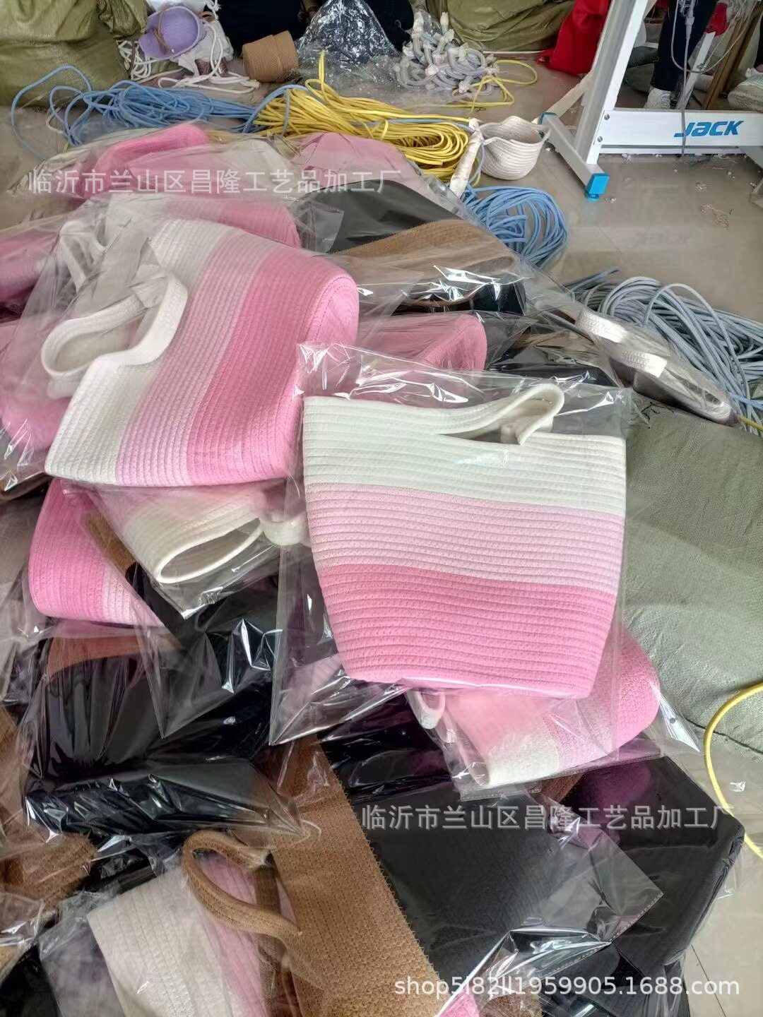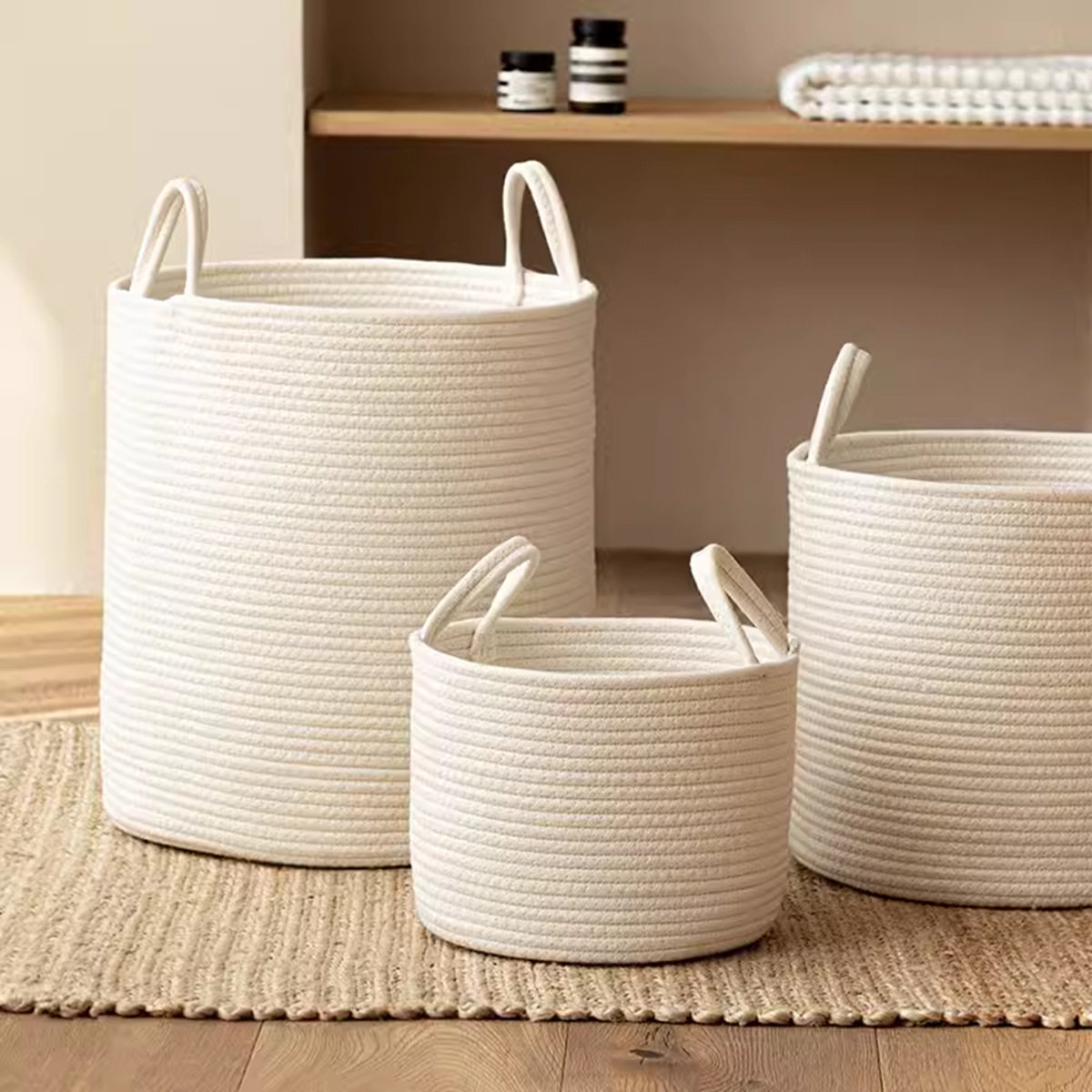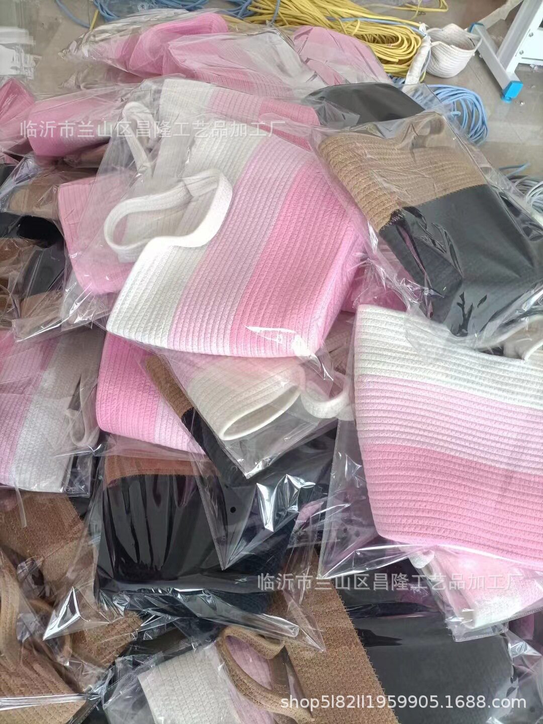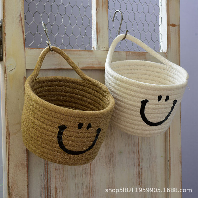 Woven Cotton Rope Storage Basket Cross-Border Cotton Thread Woven Basket Household Storage Basket with Lid Desktop Sundry Basket