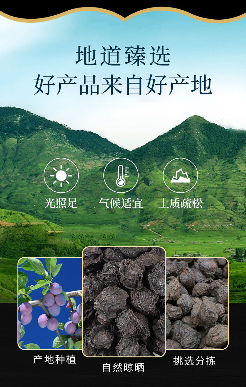 | Packaging specifications | Optional 500g,500g in total,500g black plum meat,Small package 500g,500g black plum powder,Smoked tobacco 500g,Smoked optional 500g,500g smoked plum meat,500g ebony strips |