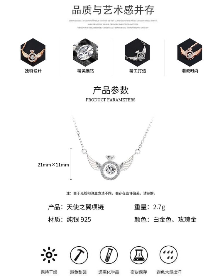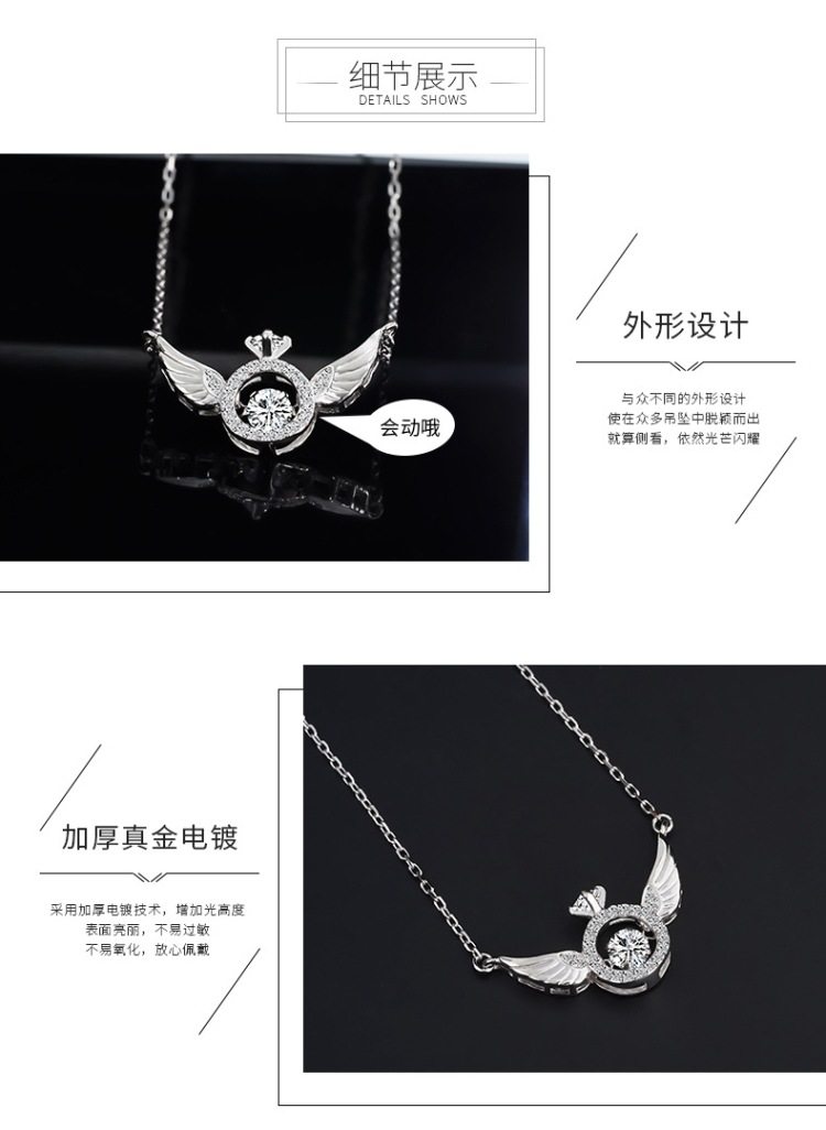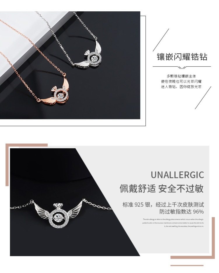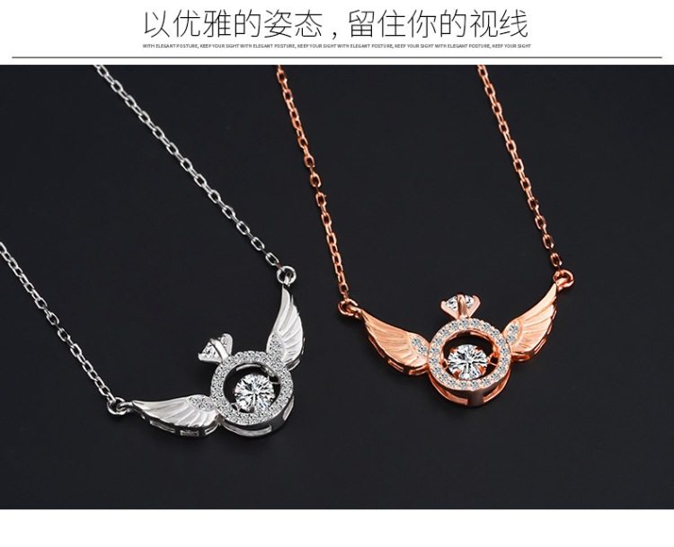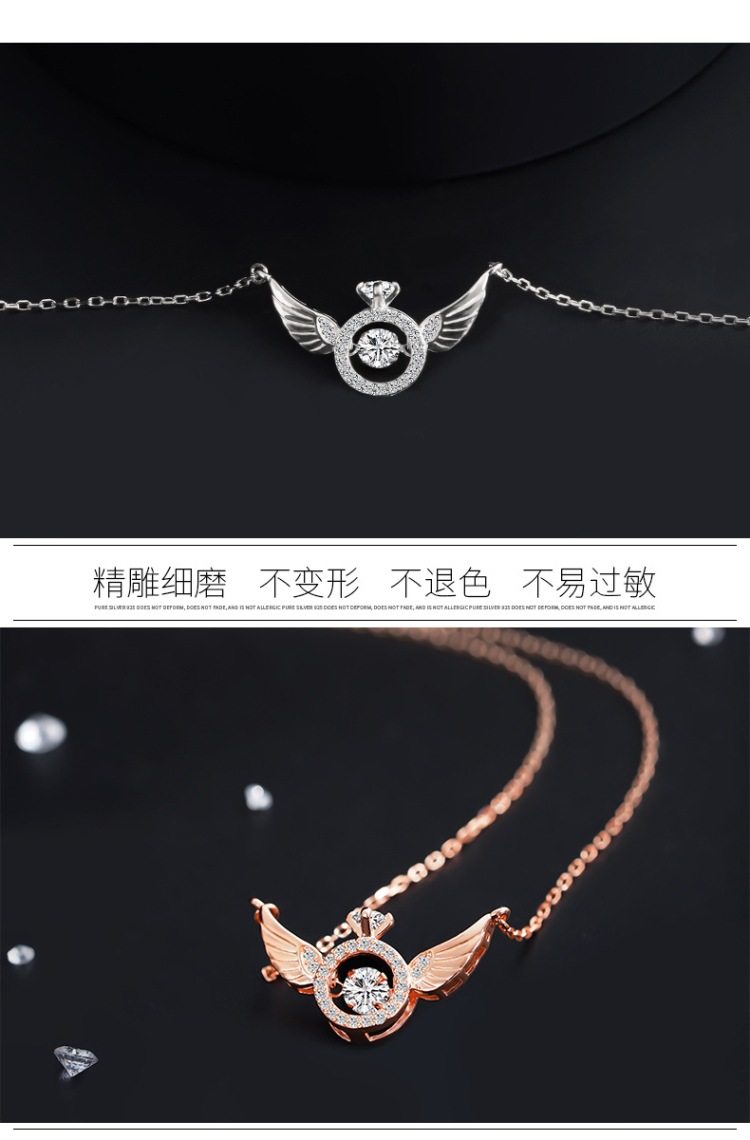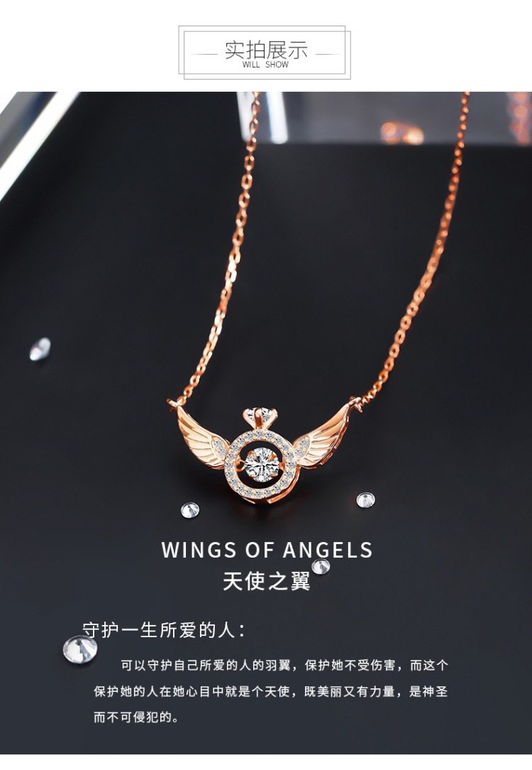 Angel Smart Necklace Clavicle Chain Beating Heart Wings Female Niche Design Simple Flying Wings Inlaid with Gold Plating