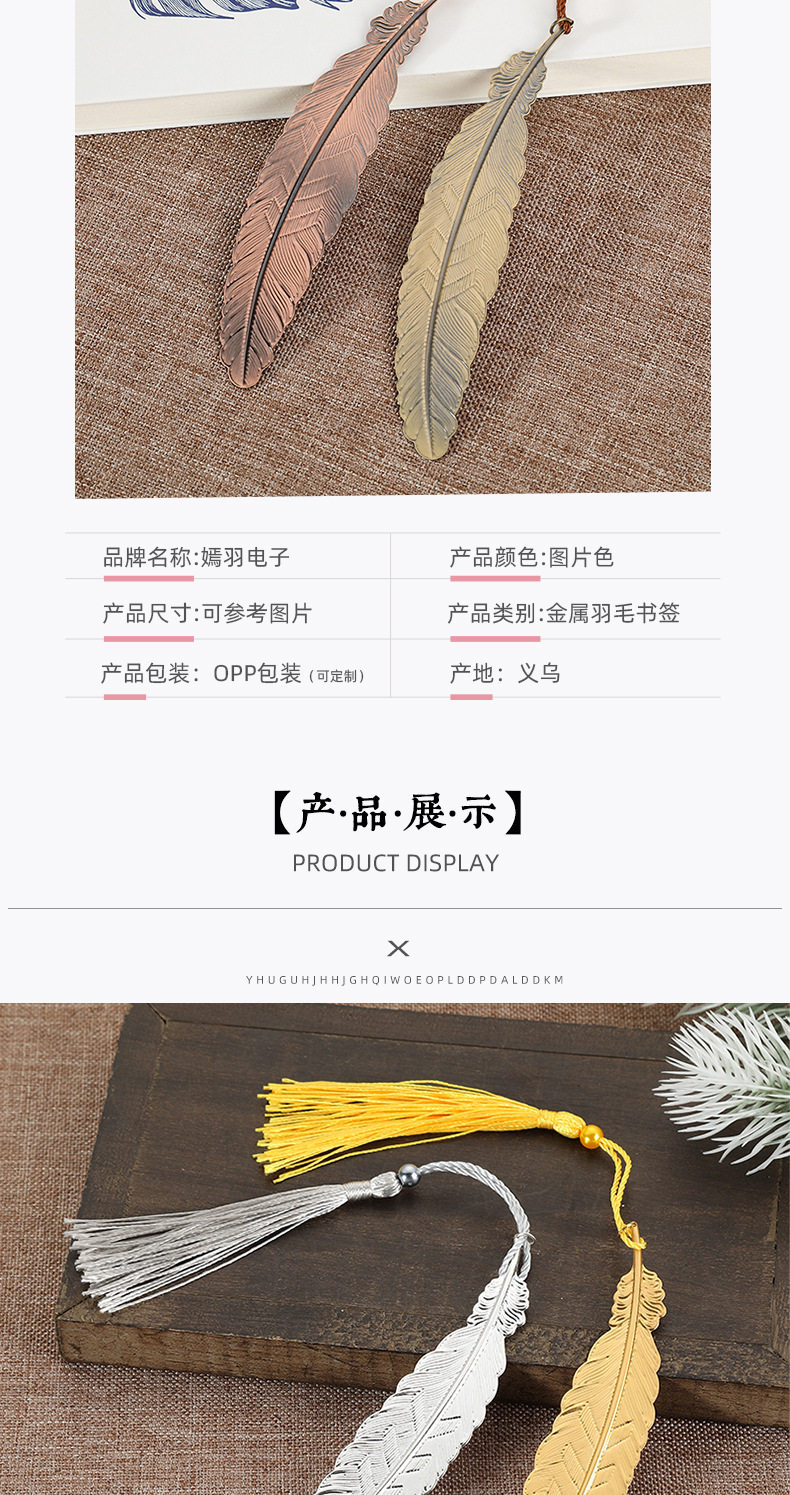 | Specifications | Feather bookmark |