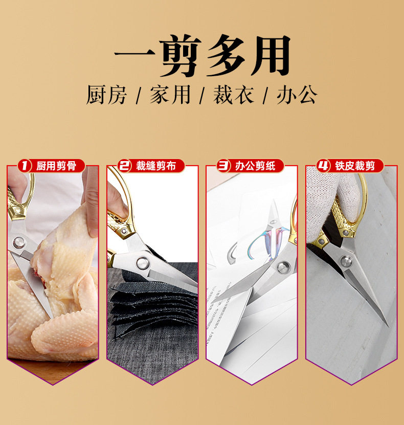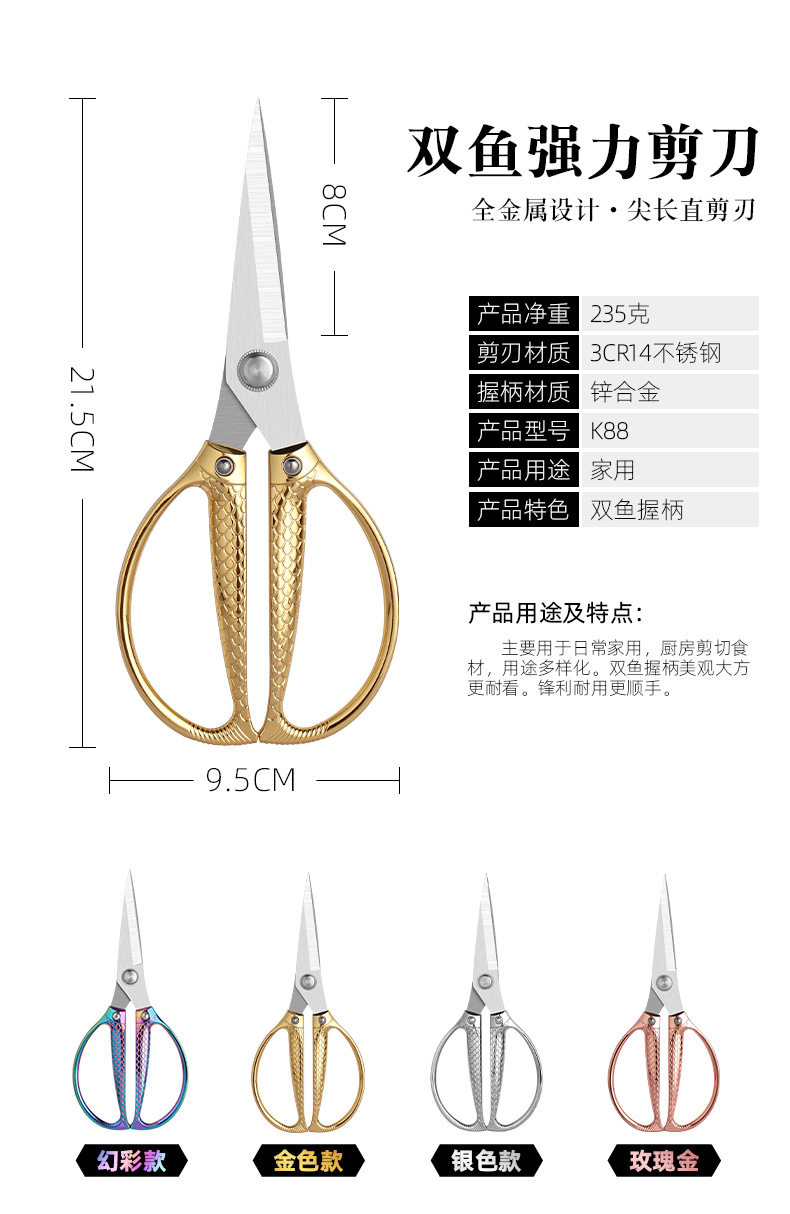 Yingcai multi-use food stainless steel scissors K88 double fish scissors household alloy kitchen scissors chicken bone strong scissors