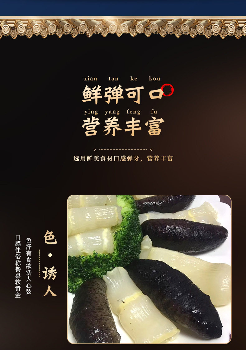 | Packaging specifications | 500g turkish ginseng,400g pork tendon,500g deep sea ginseng,500g fresh frozen fish maw |