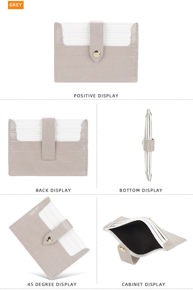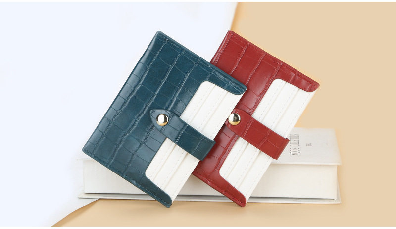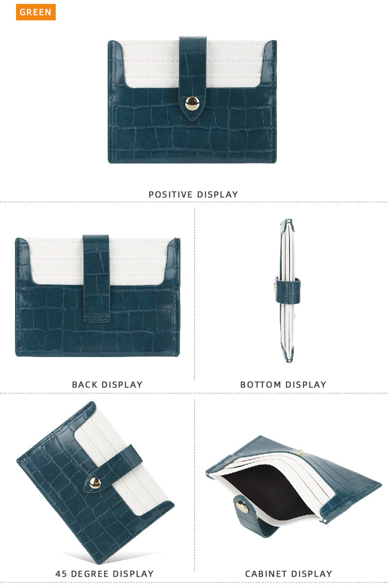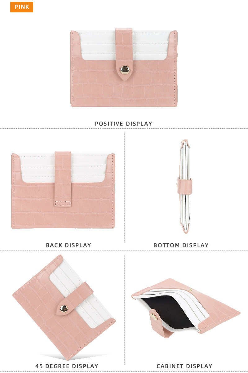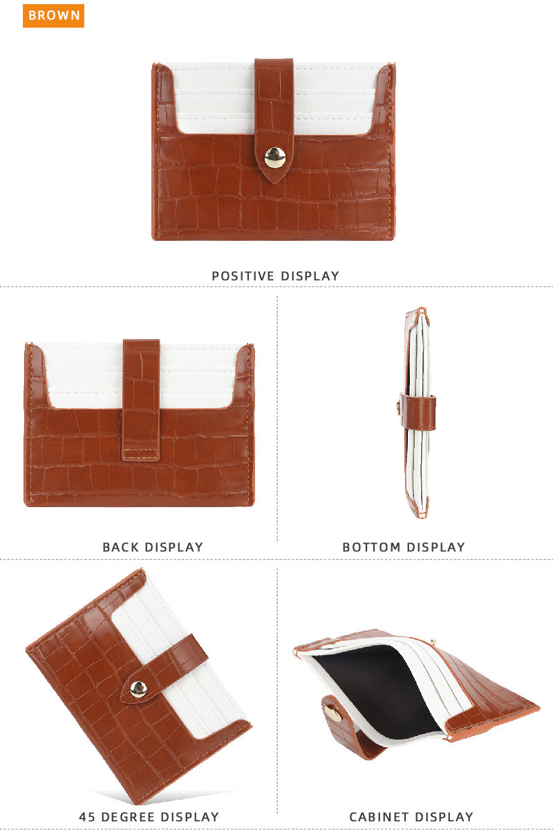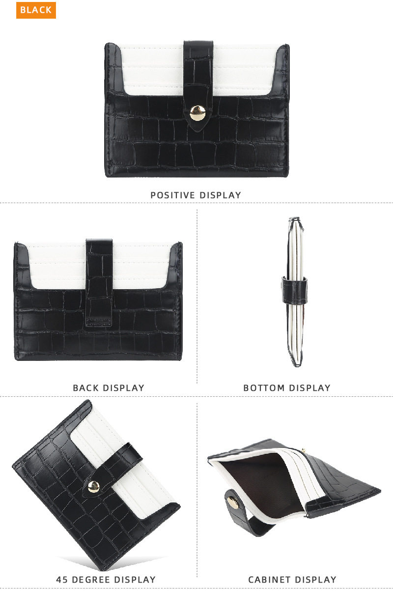 Women's BAELLERRY Color-block Small Card Bag European and American Crocodile Bag Thin Credit Card Case Fashionable Buckle Card Holder Trendy