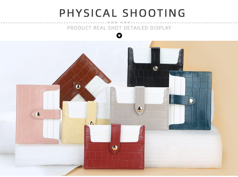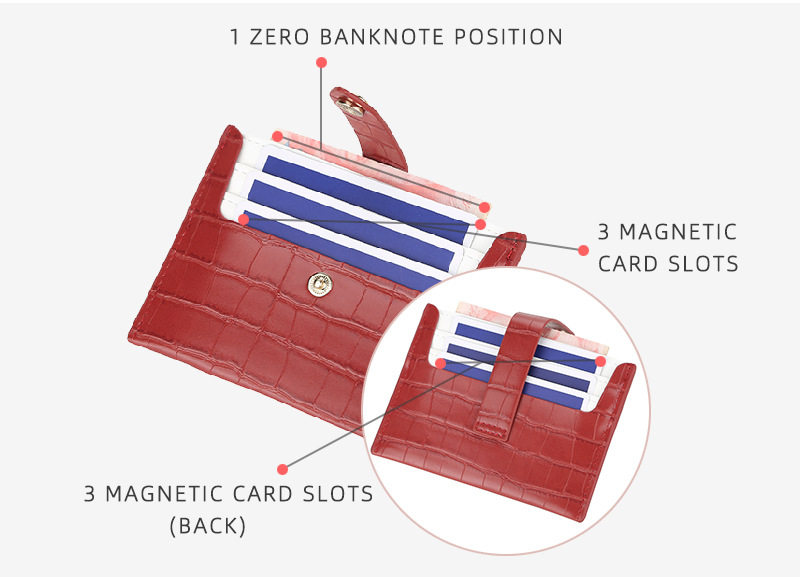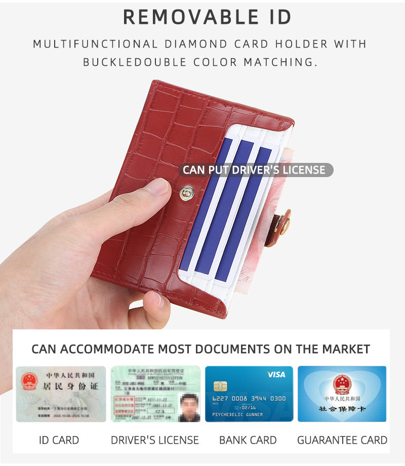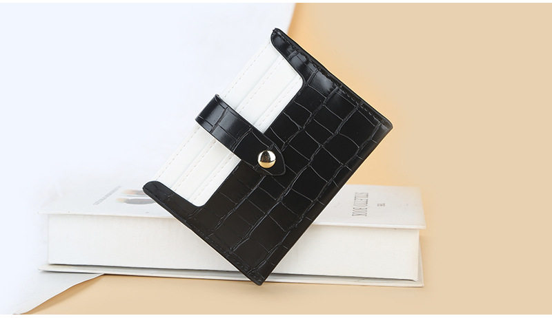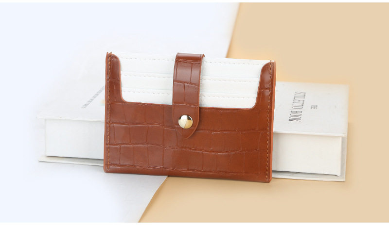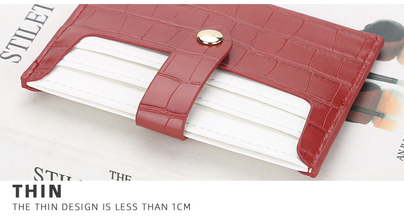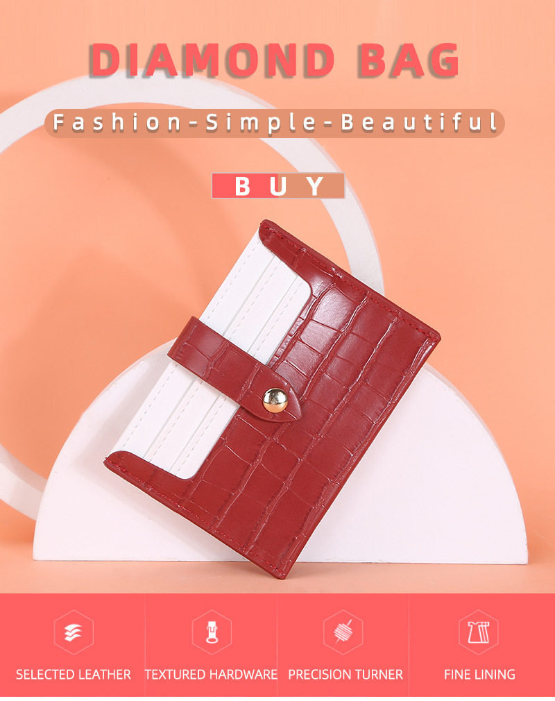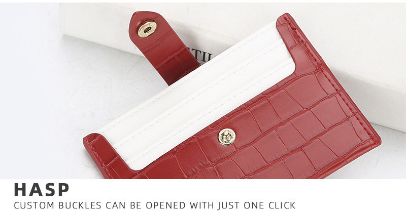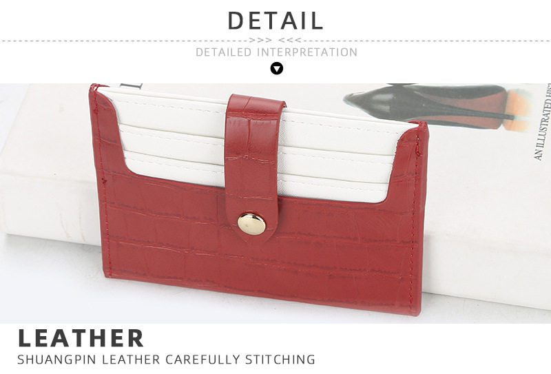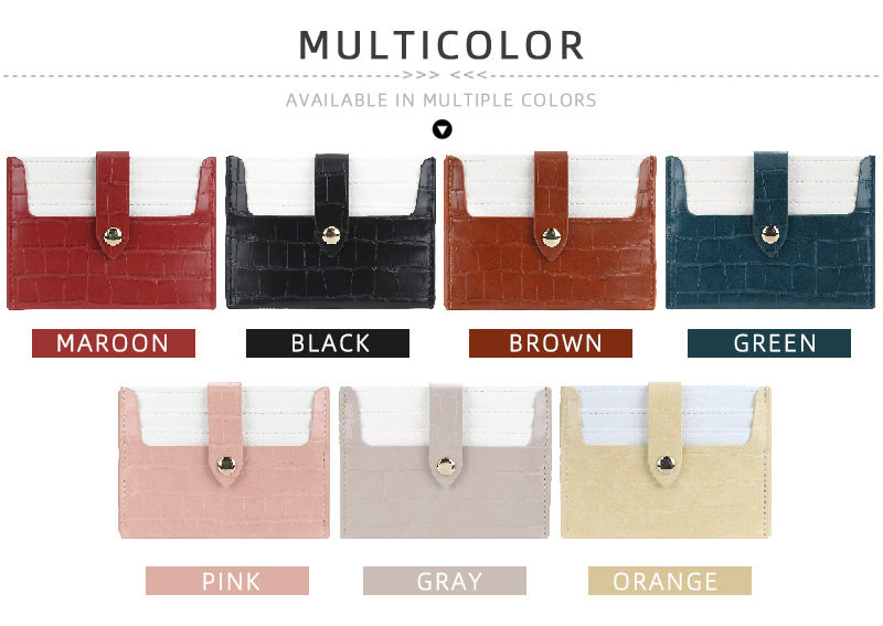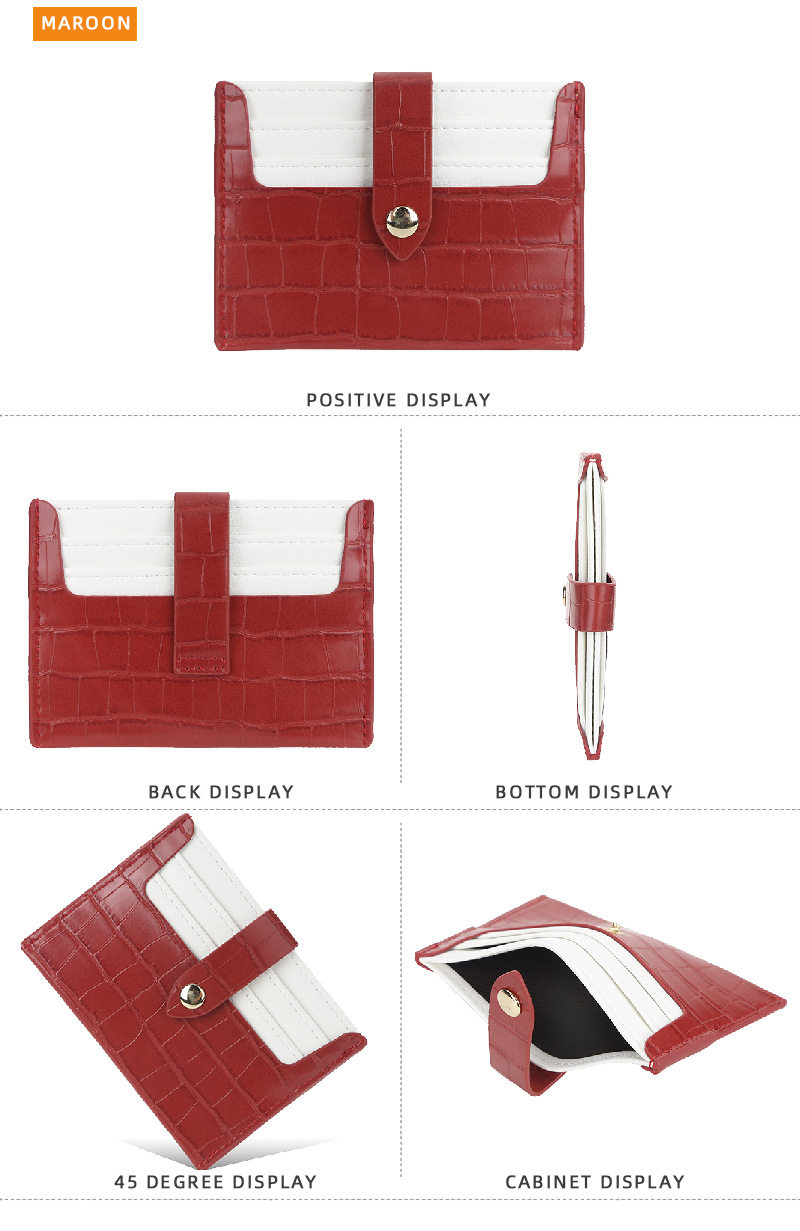 Women's BAELLERRY Color-block Small Card Bag European and American Crocodile Bag Thin Credit Card Case Fashionable Buckle Card Holder Trendy