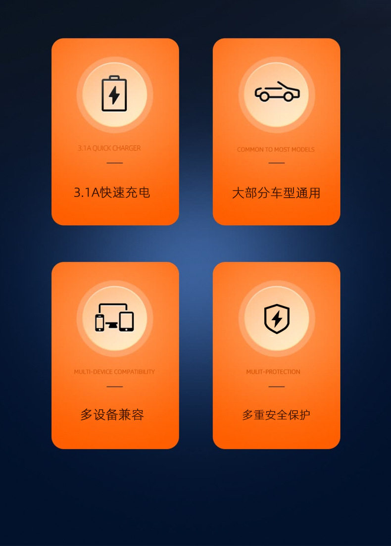 | Feature 2 | Car cigarette lighter one-to-two conversion head double-port usb car charger |