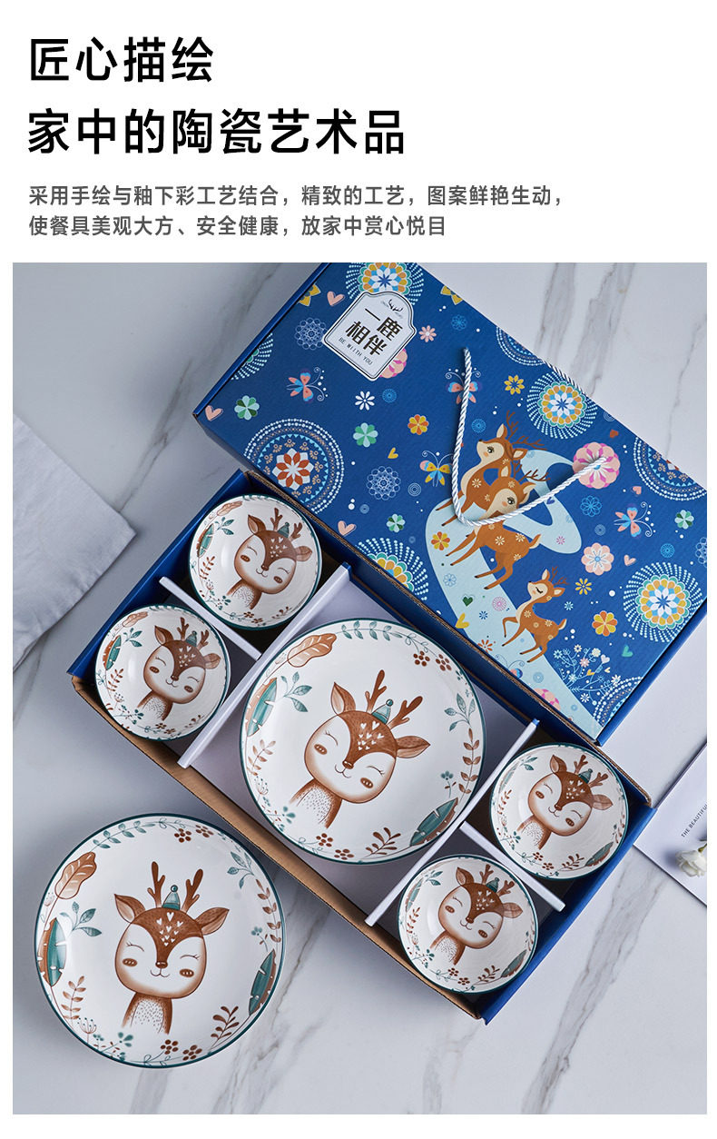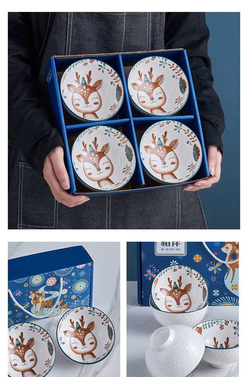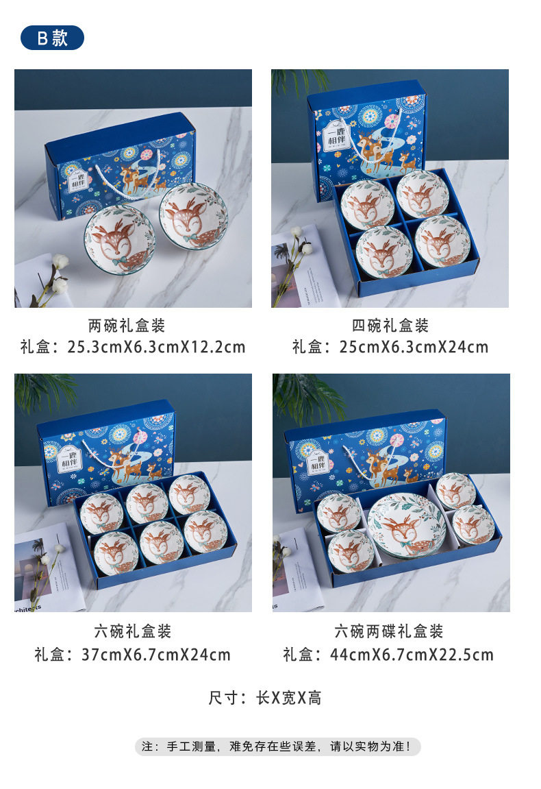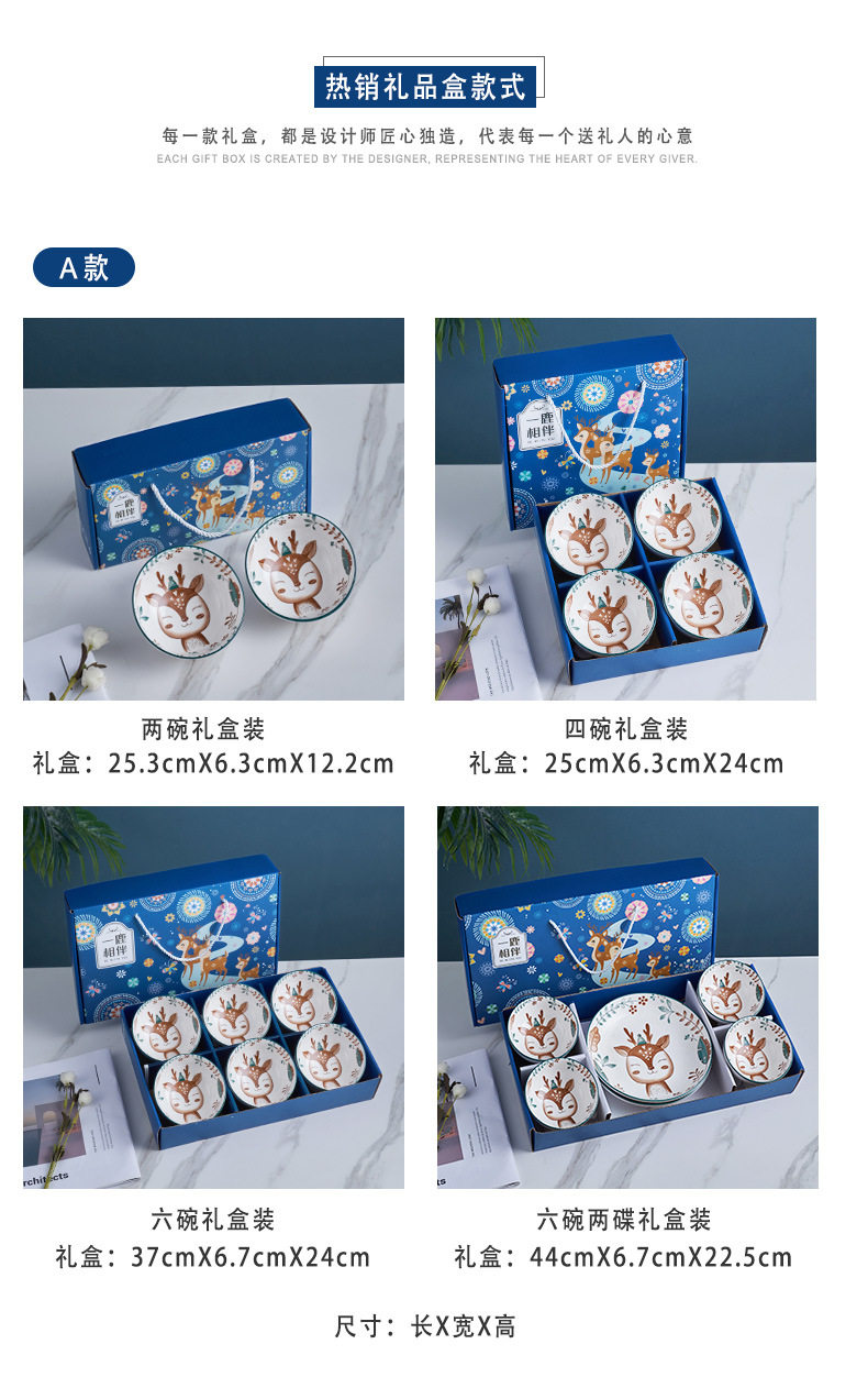 | Color | Accompanied by a deer 2 bowls gift box,Accompanied by a deer 4 bowls gift box,Accompanied by a deer 6 bowls gift box,Accompanied by a deer, 4 bowls and 1 plate, gift box,Accompanied by a deer, 4 bowls and 2 plates, gift box,A single bowl with a deer in ordinary packaging,A single plate with a deer, ordinary packaging |