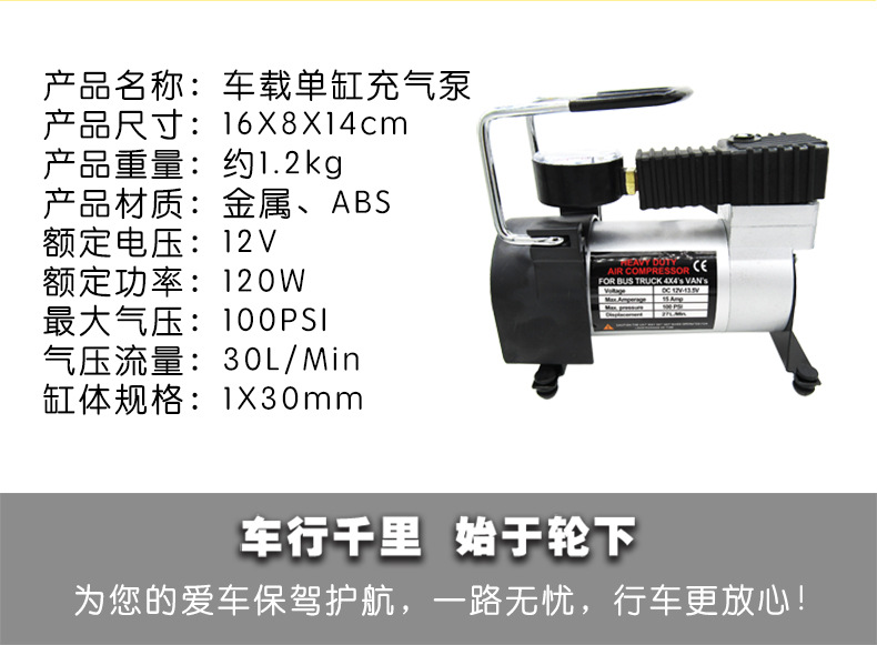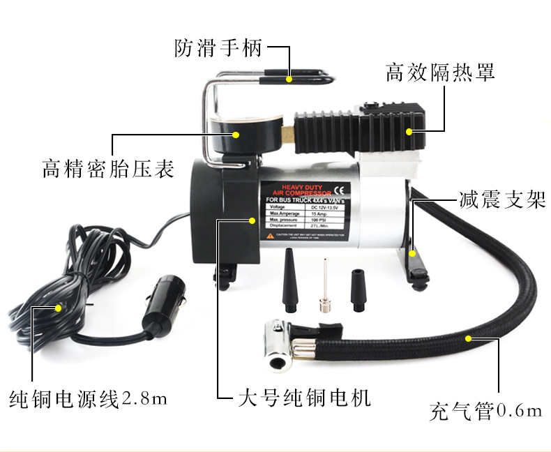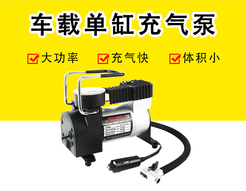 Car horizontal bar air pump single cylinder car tire air pump 12V portable metal electric emergency tool