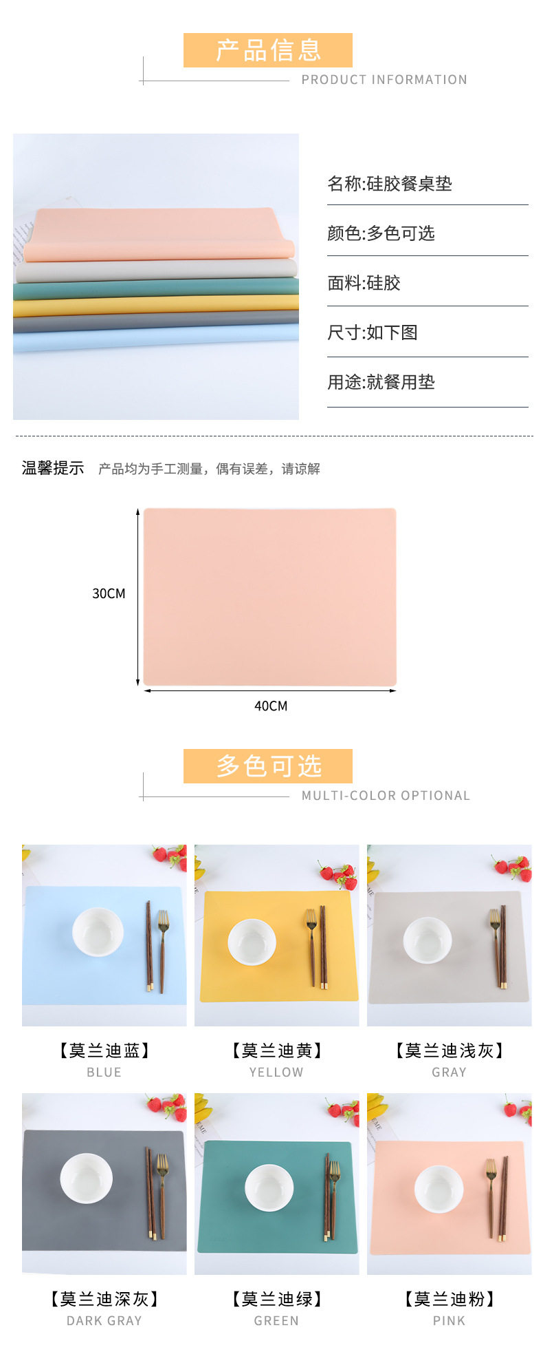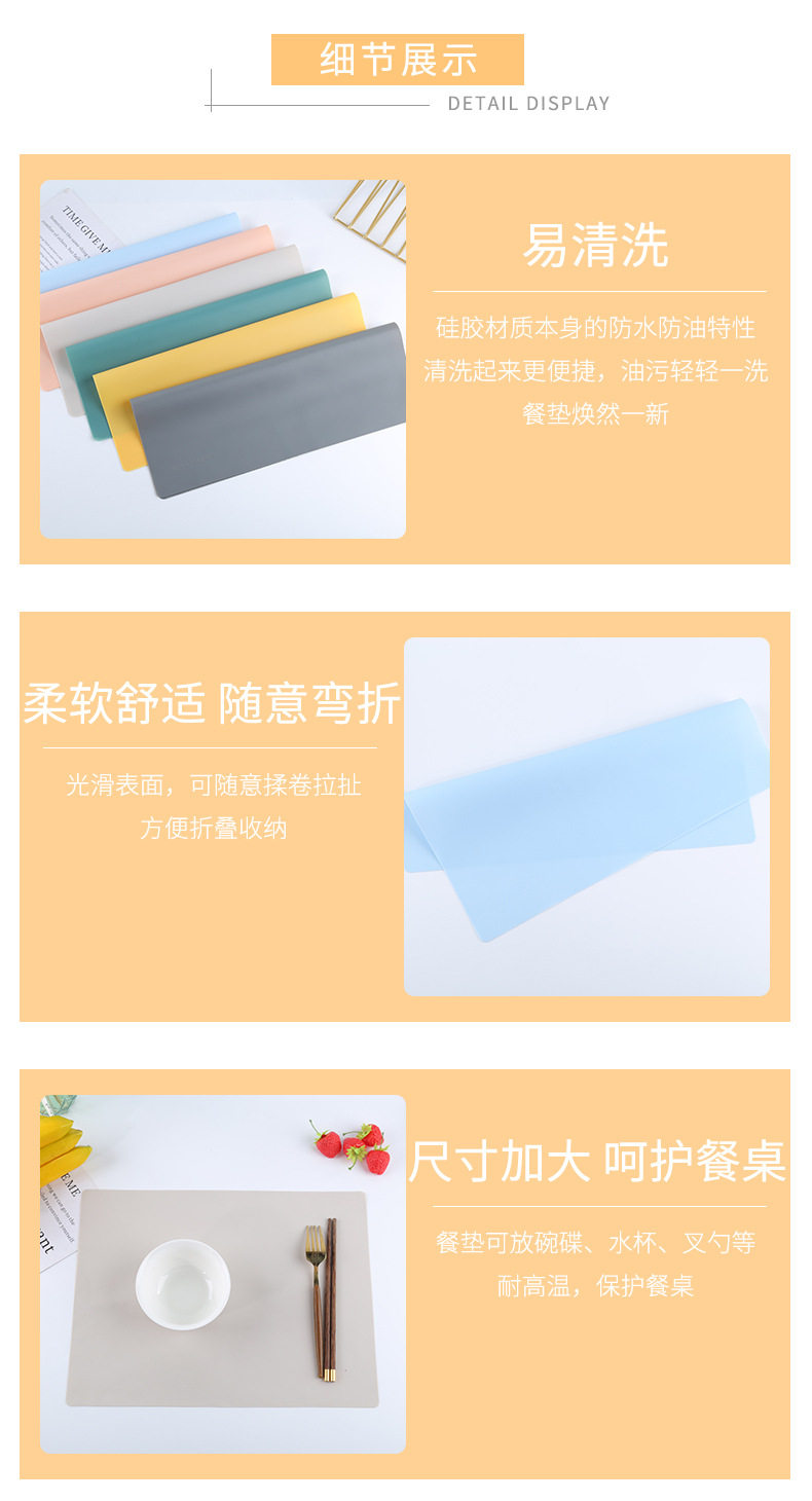 40*30 food grade temperature resistant children's Silicone Placemat baking heat insulation mat Western placemat student computer table mat