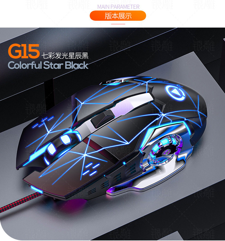 Silver carving G15 mechanical game usb wired mouse mute luminous mouse computer accessories Amazon cross-border wholesale