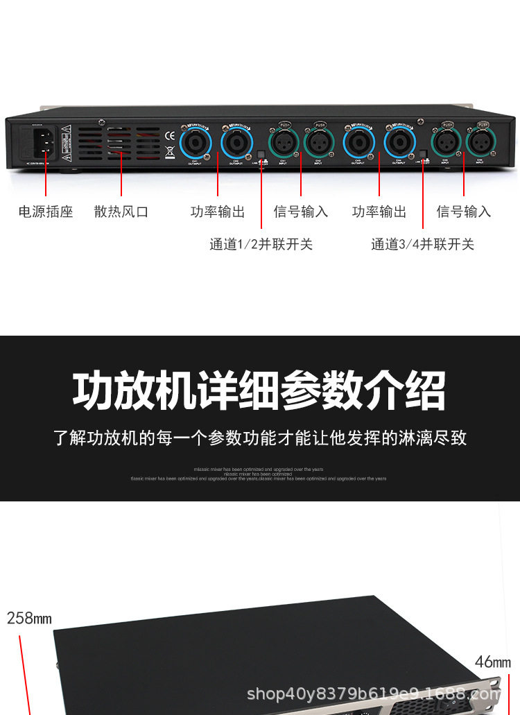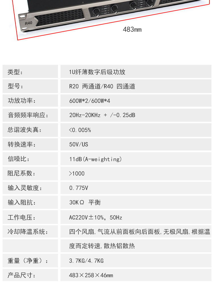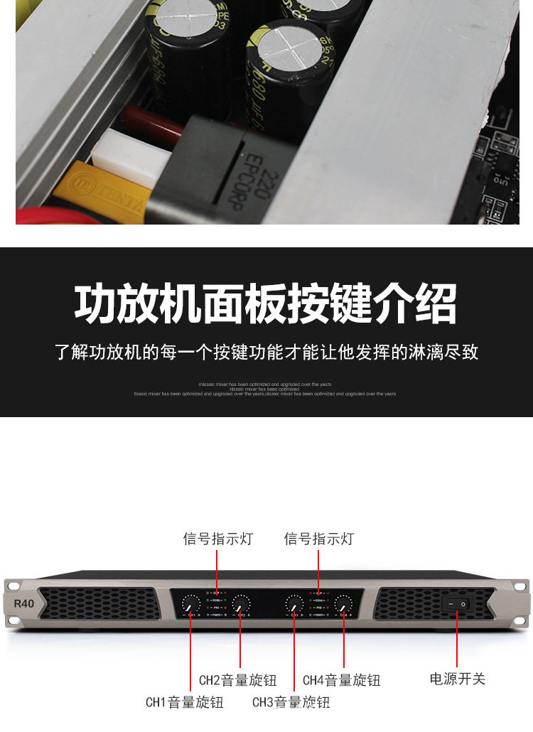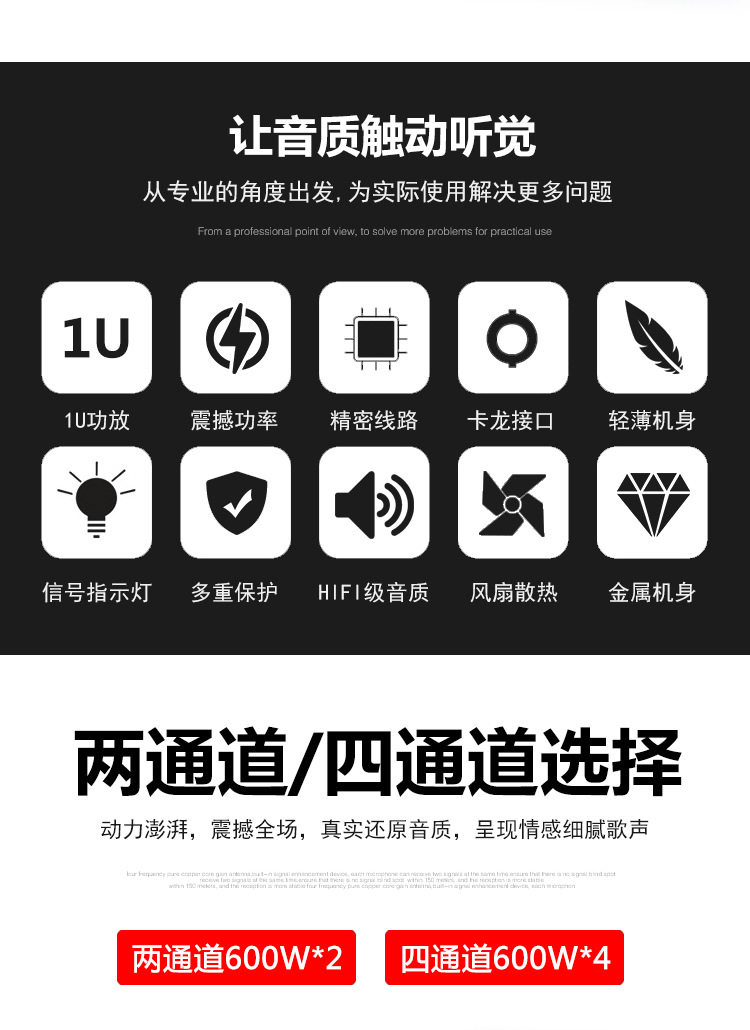 Professional pure rear-level power amplifier digital hifi-level sound quality high-power stage performance four-channel 1U power amplifier