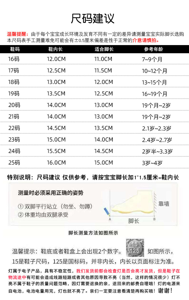 | Size | Size 16 [shoe inner length 12cm],Size 17 [inner length of shoe 12.5cm],Size 18 [shoe inner length 13cm],Size 19 [inner length of shoe 13.5cm],Size 20 [inner length of shoe 14cm],Size 21 [inner length of shoe 14cm],Size 22 [inner length of shoe 14.5cm],Size 23 [inner length of shoe 15cm],Size 24 [inner length of shoe 15.5cm],Size 25 [shoe inner length 16cm],Size 26 [inner length of shoe 16.5cm],Size 27 [inner length of shoe 17.2cm],Size 28 [inner length of shoe 17.8cm],Size 16-20 [please take 5 pairs in one hand],Size 21-25 [please take 5 pairs in one hand],Size 26-28 [3 pairs in one hand] |
