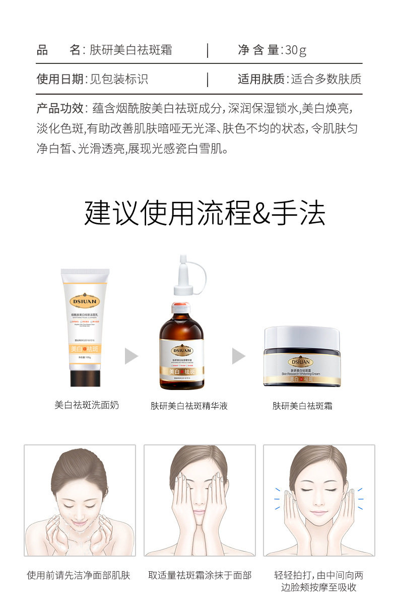 | Product Specifications | Tie Shiyan Spot Fading Cream/30ml,Tishyan freckle essence/100ml |