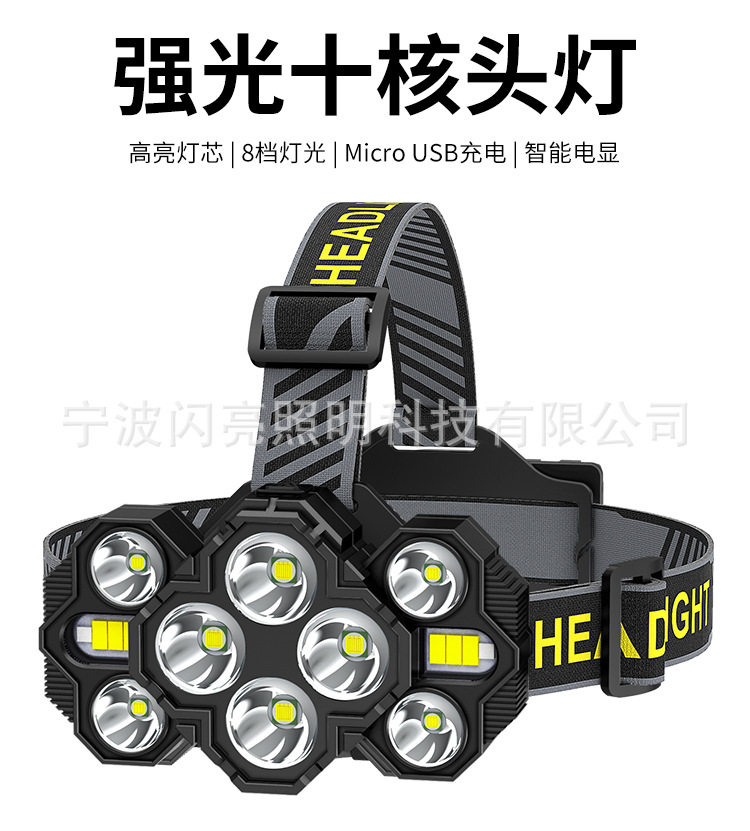 Cross-border new 10 core LED super bright headlight usb rechargeable COB bright headlight outdoor headlamp wholesale