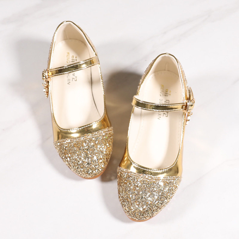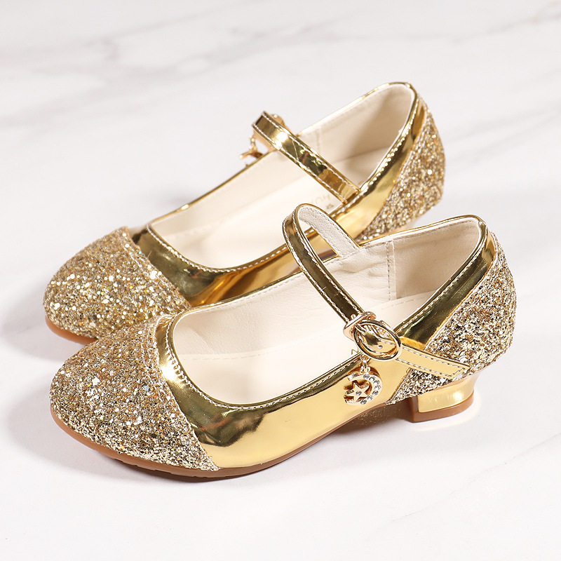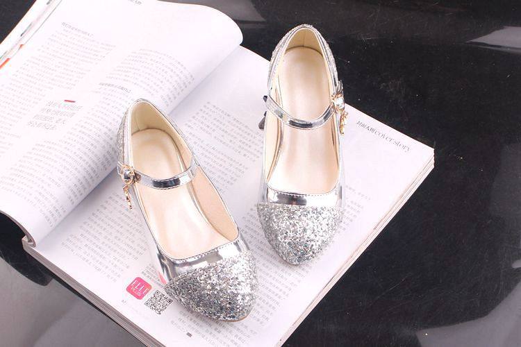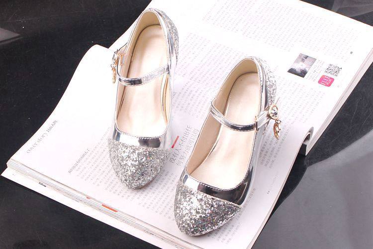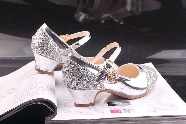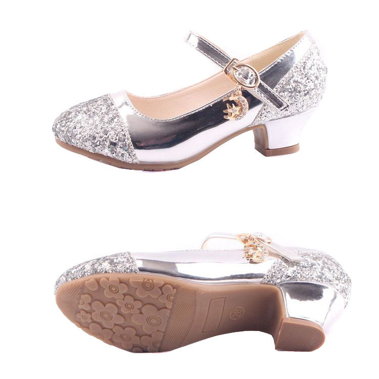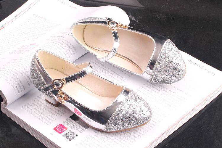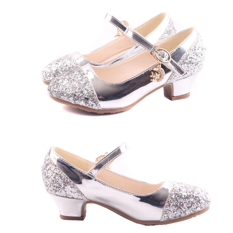 Children's Shoes Girls' Leather Shoes Korean Style High Heeled Princess Shoes Frozen Silver Children's Dance Shoes Aisha Shoes Summer