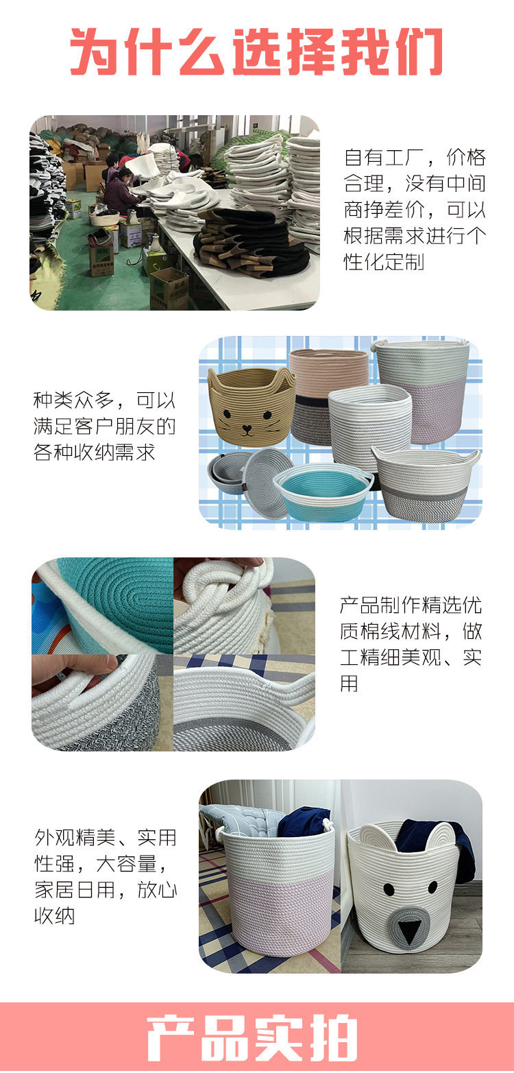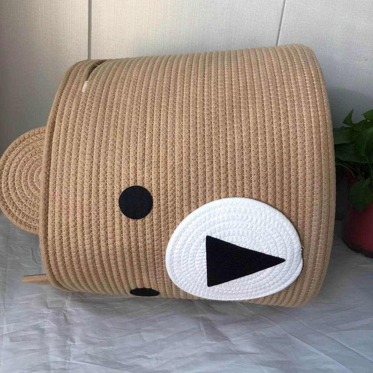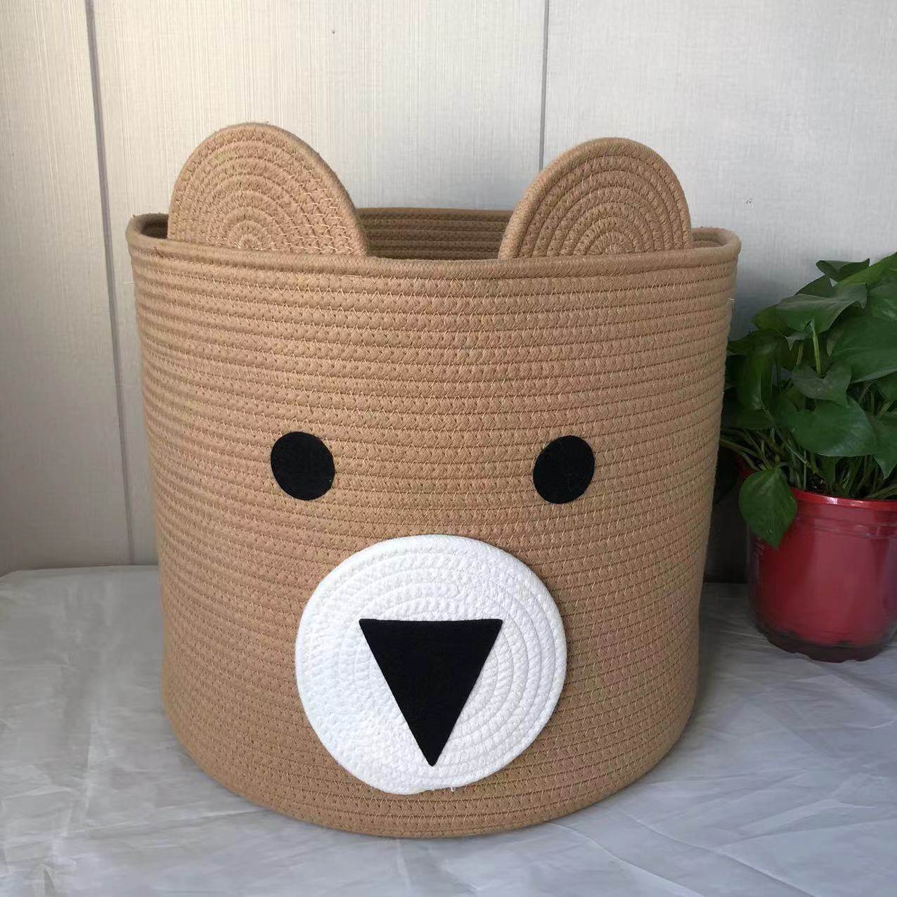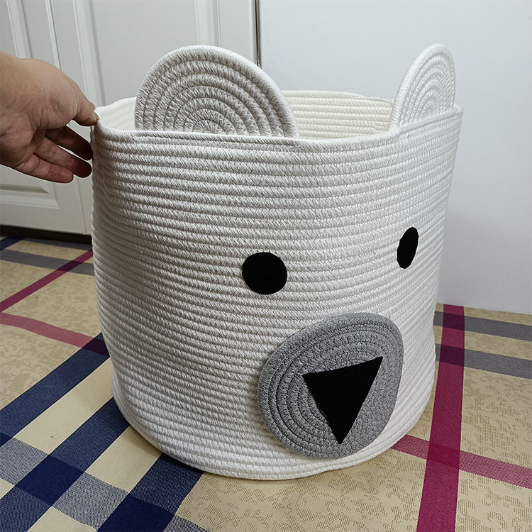 Cotton Storage Basket Rope Basket Toy Sundries Storage Basket Folding Dirty Clothes Basket Finishing Basket Bear Cartoon Laundry Basket