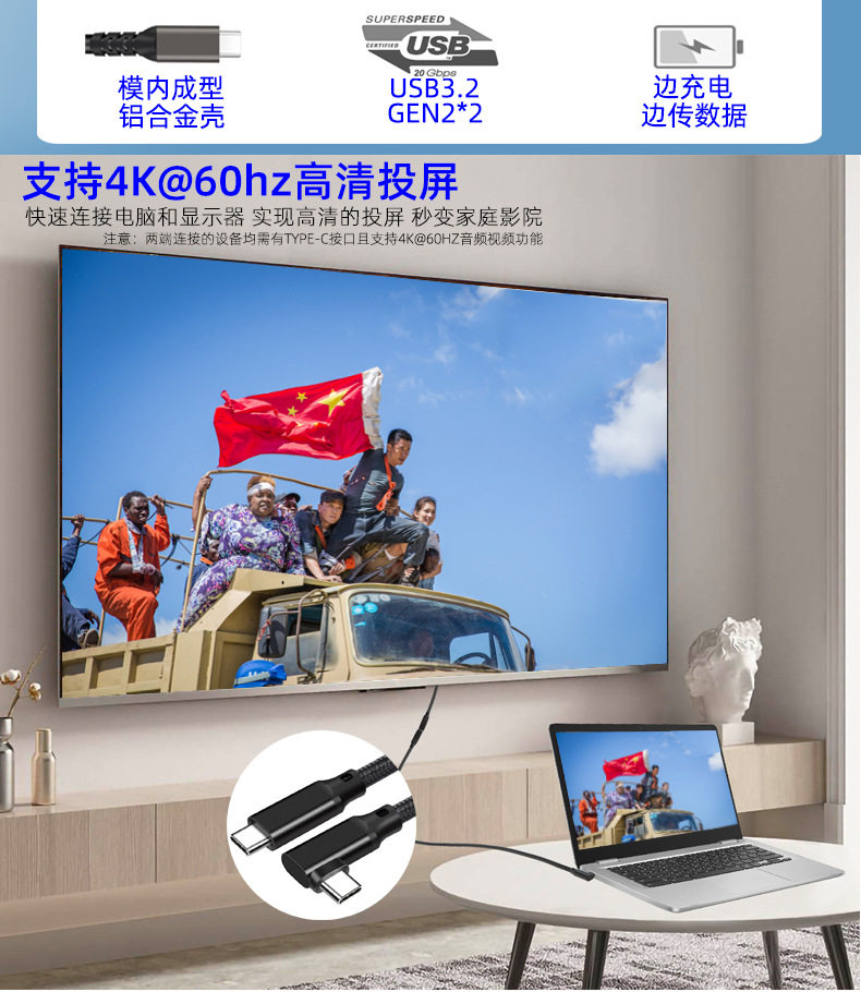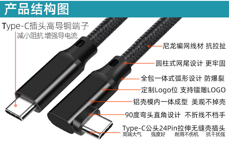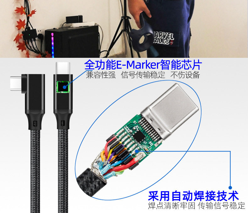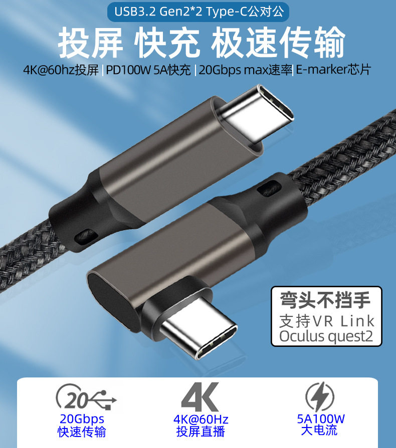 Elbow VR line TYPE-C data line male to male 4K throw screen line USB3.20Goculusquest2 game line